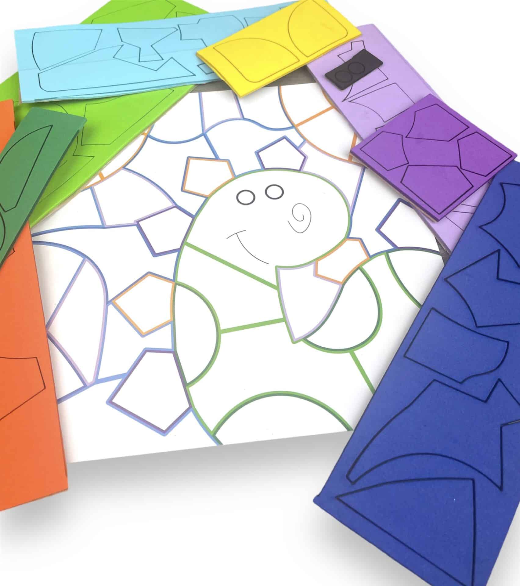 - Design: Contains all the pieces needed to create a colorful and attractive dinosaur mosaic.