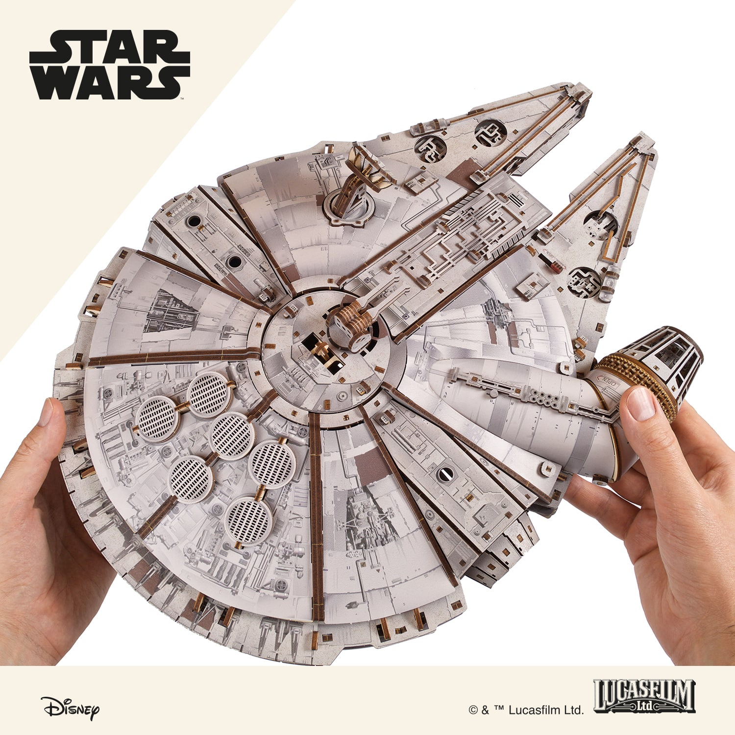 Complete the Kessel Run in less than twelve parsecs by building the Millennium Falcon™Star Wars™ spaceship from the licensed Star Wars Ugears collection. At 1:75 scale, this incredible model of the ship piloted by the lovable smugglers Han Solo and Chewbacca is the largest and most detailed ever released by Ugears. A key fighter in the most decisive battles against the Galactic Empire, the Millennium Falcon passed through the hands of a series of criminals before finally being stolen and piloted by Rey Skywalker in The Force Awakens (2015), then recovered by Han and Chewie.