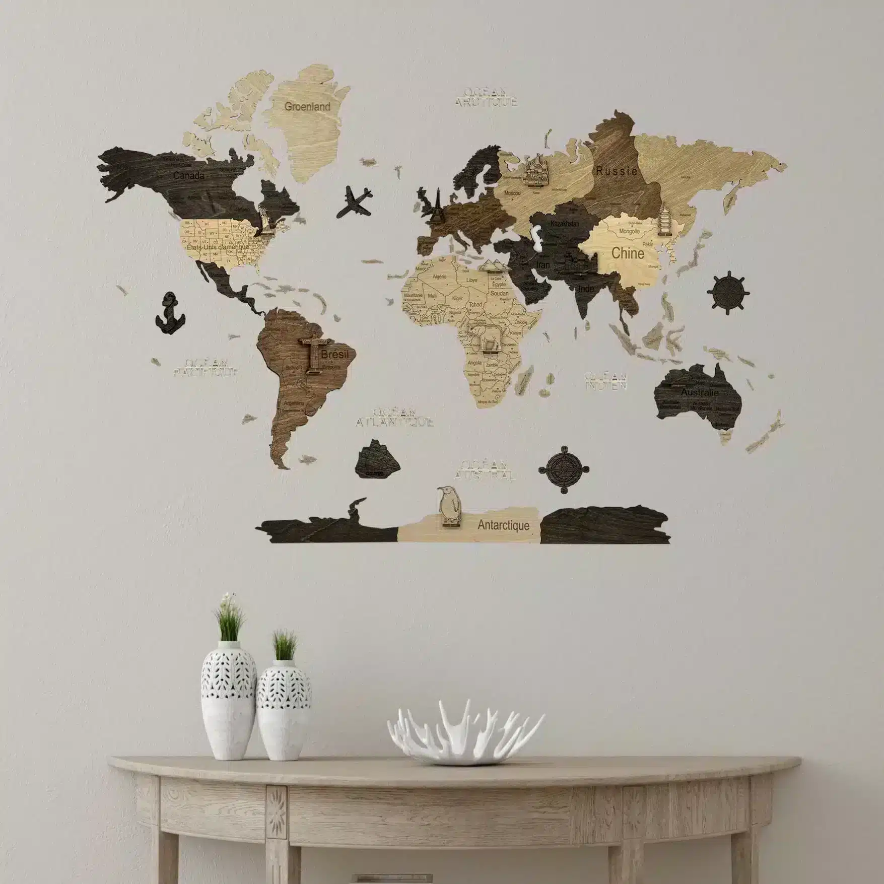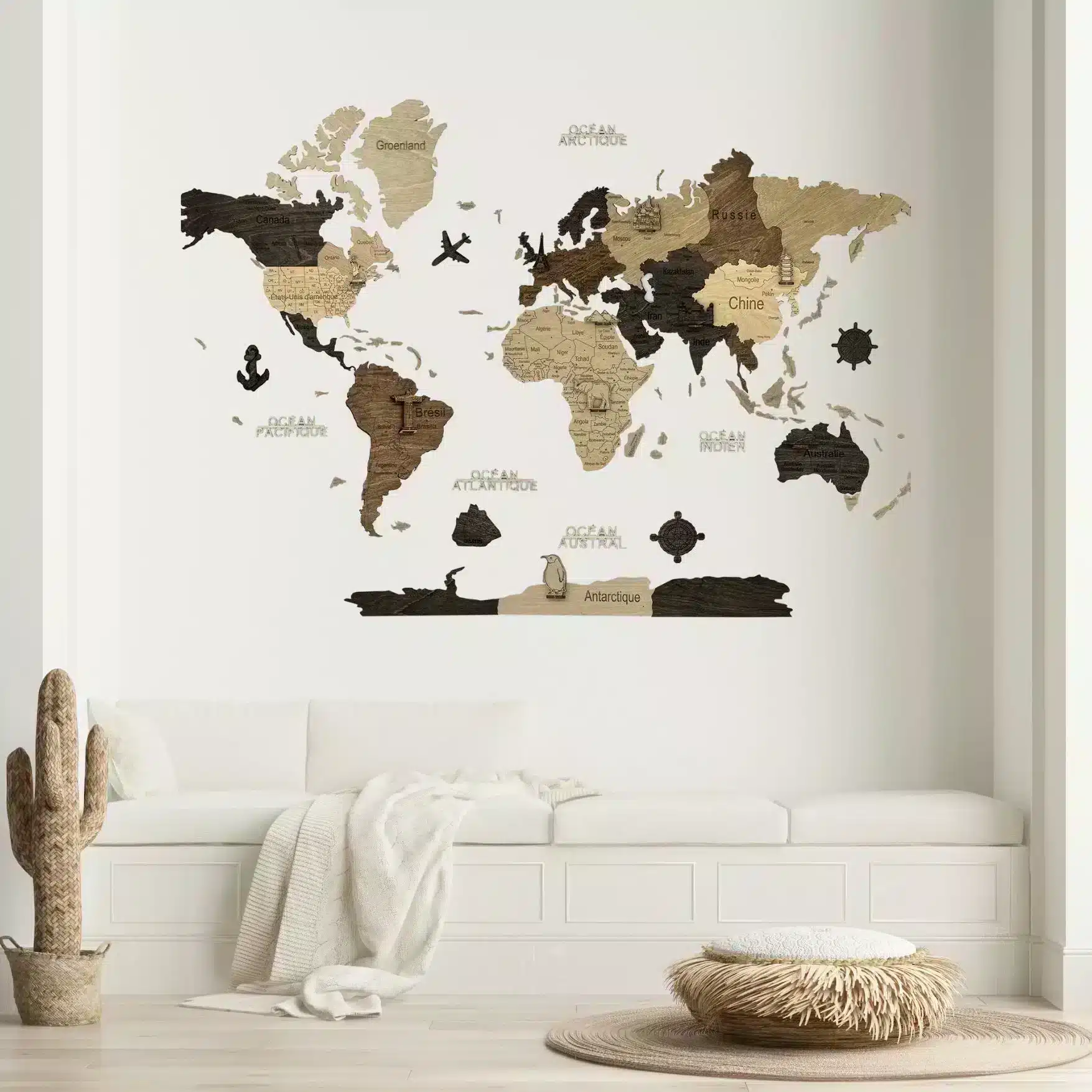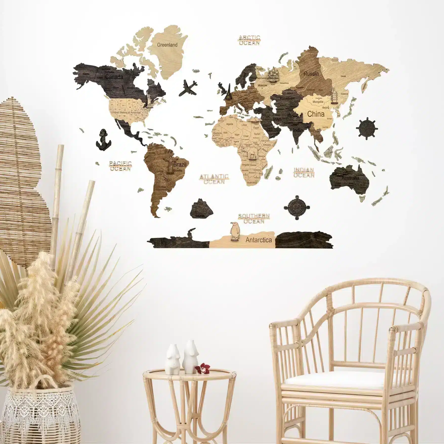 Qualunque sia la stanza in cui desideri integrare una mappa del mondo in legno, assicurati di scegliere un design e una dimensione che si armonizzino con il resto dell’arredamento. Questo creerà un’atmosfera coerente e armoniosa nella tua casa.