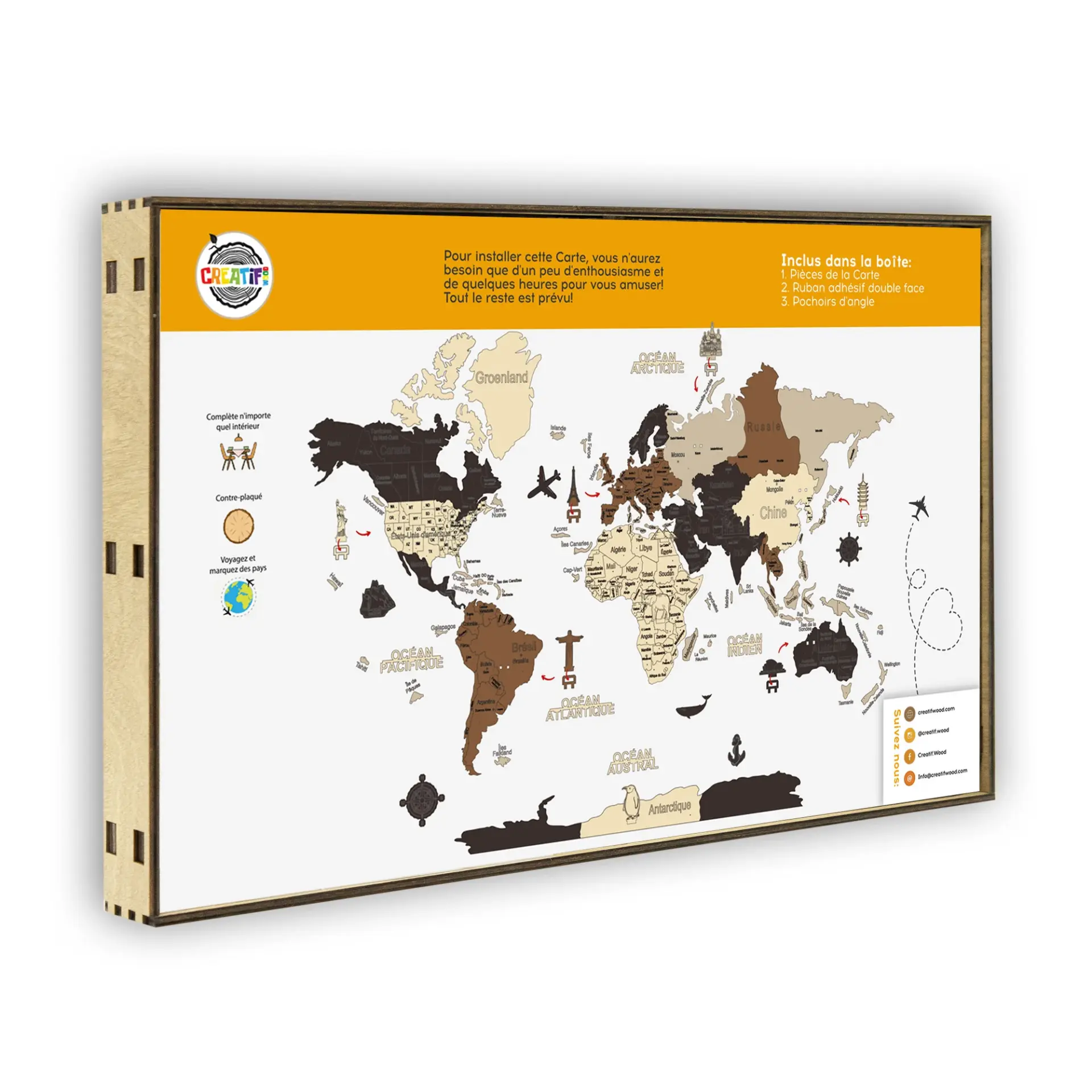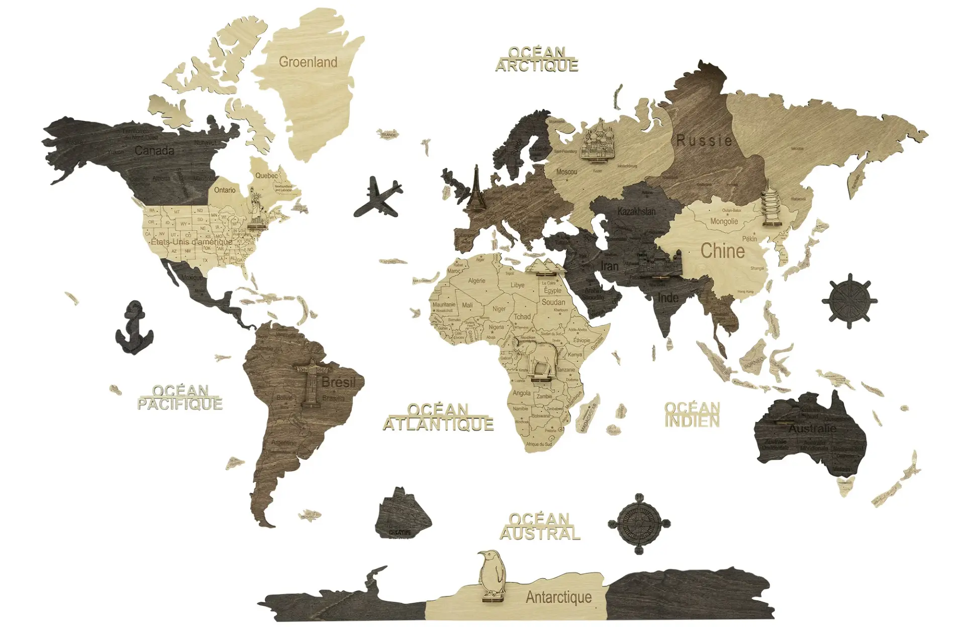 La mappa del mondo in legno è una rappresentazione artistica della Terra e dei suoi continenti, realizzata in legno