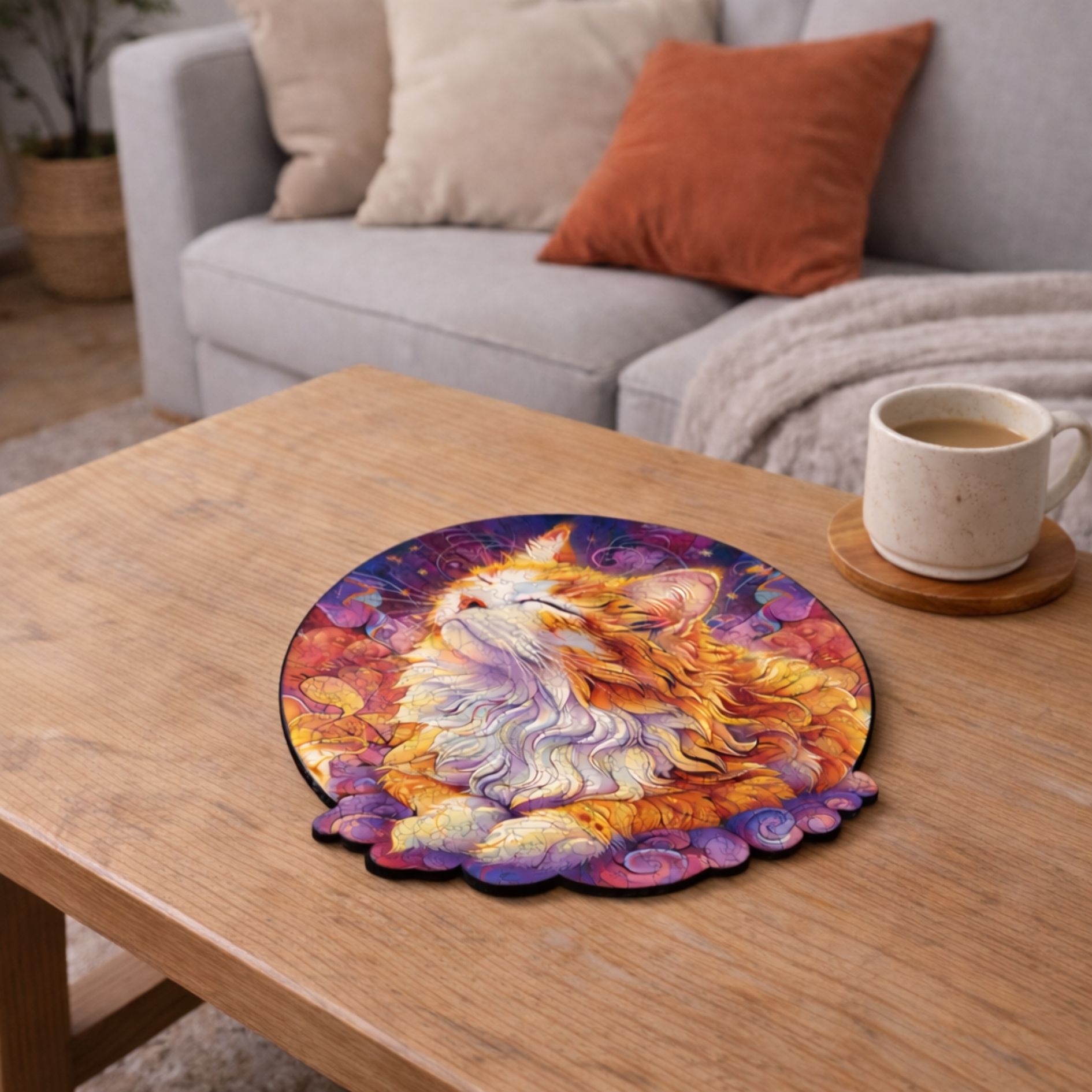 Il Gatto Zen è un invito alla serenità. Seduto con calma in una postura meditativa, incarna tranquillità ed equilibrio. Le sue forme arrotondate, i motivi armoniosi e i colori delicati evocano la pace interiore e la calma dello spirito.