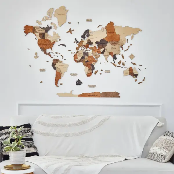 Carte du monde en bois 3D Multicolor