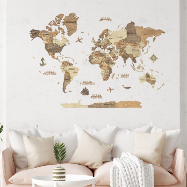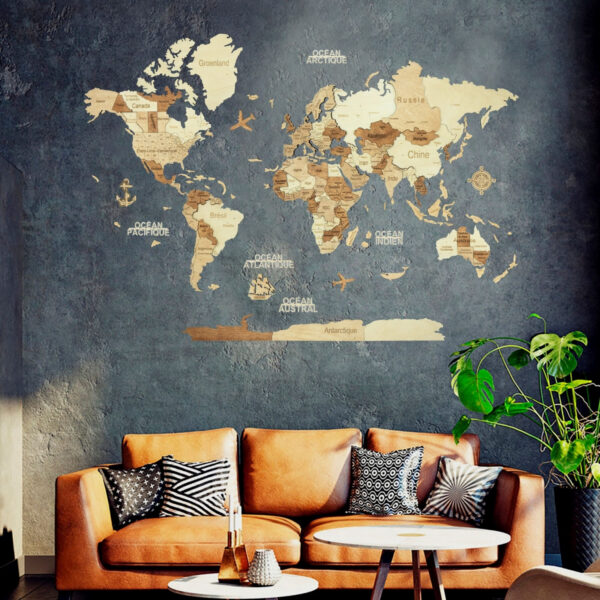 Carte du monde en bois 2D Сlaire