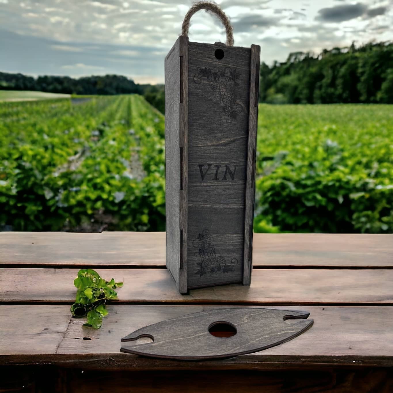 Boîte à vin en bois avec corde « Grappes »