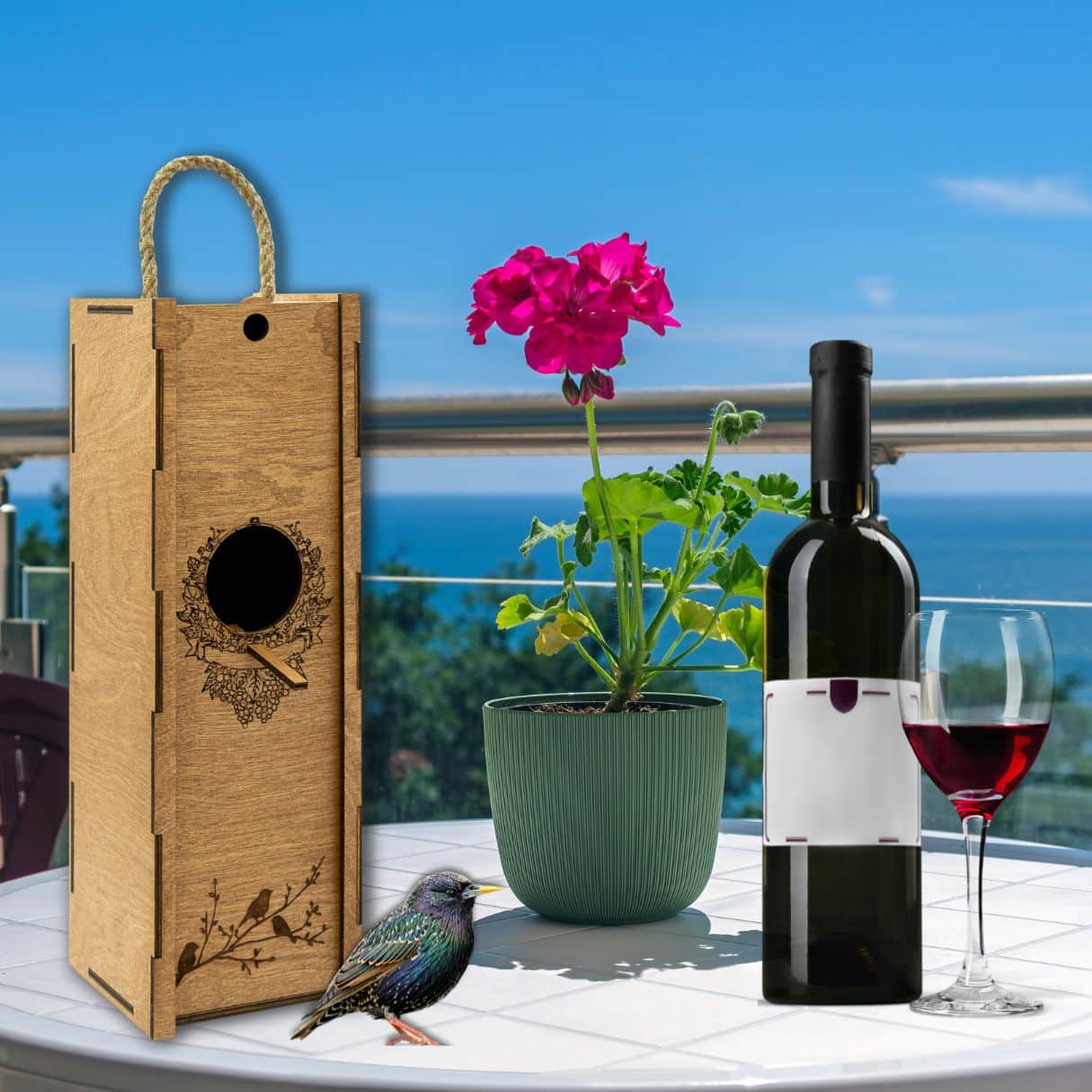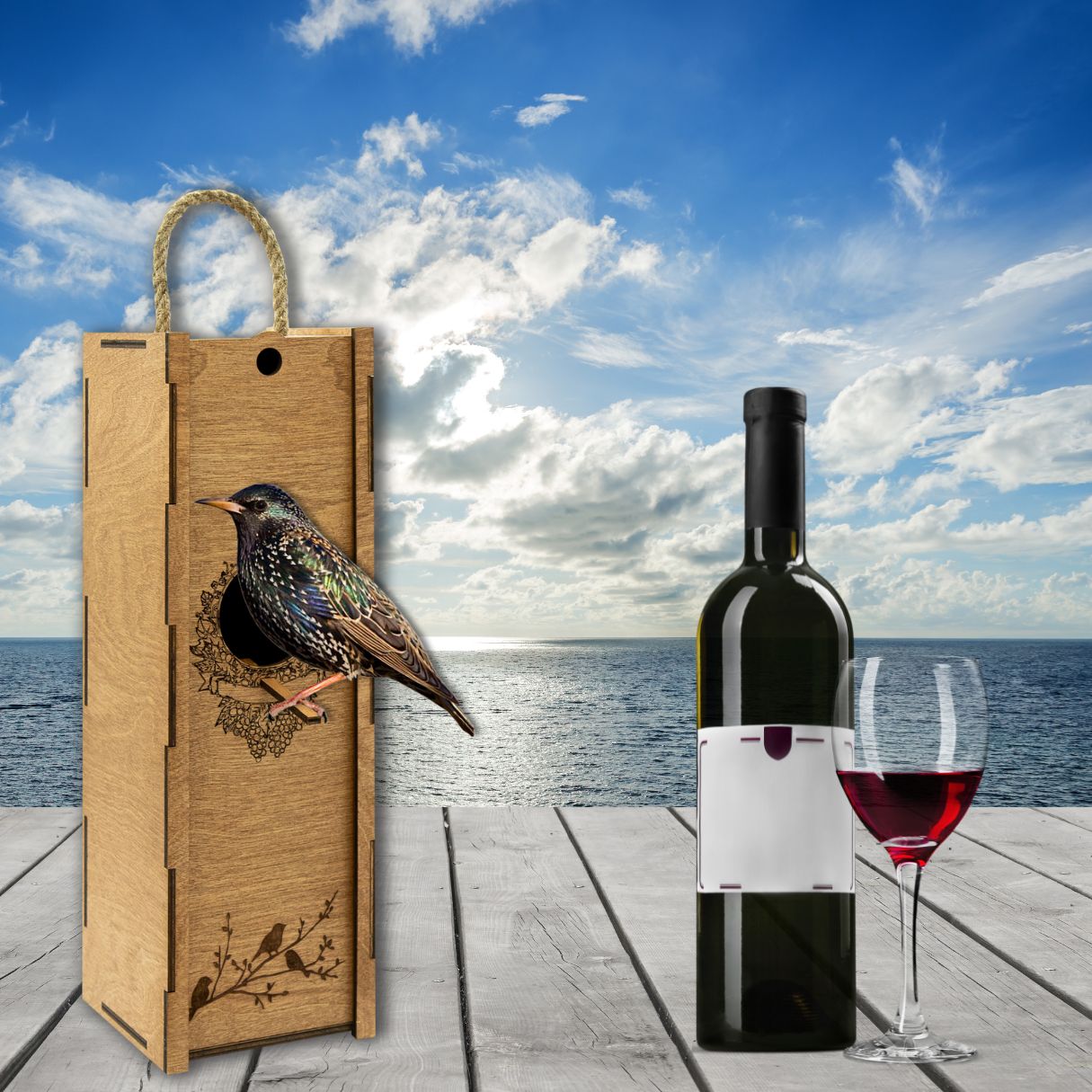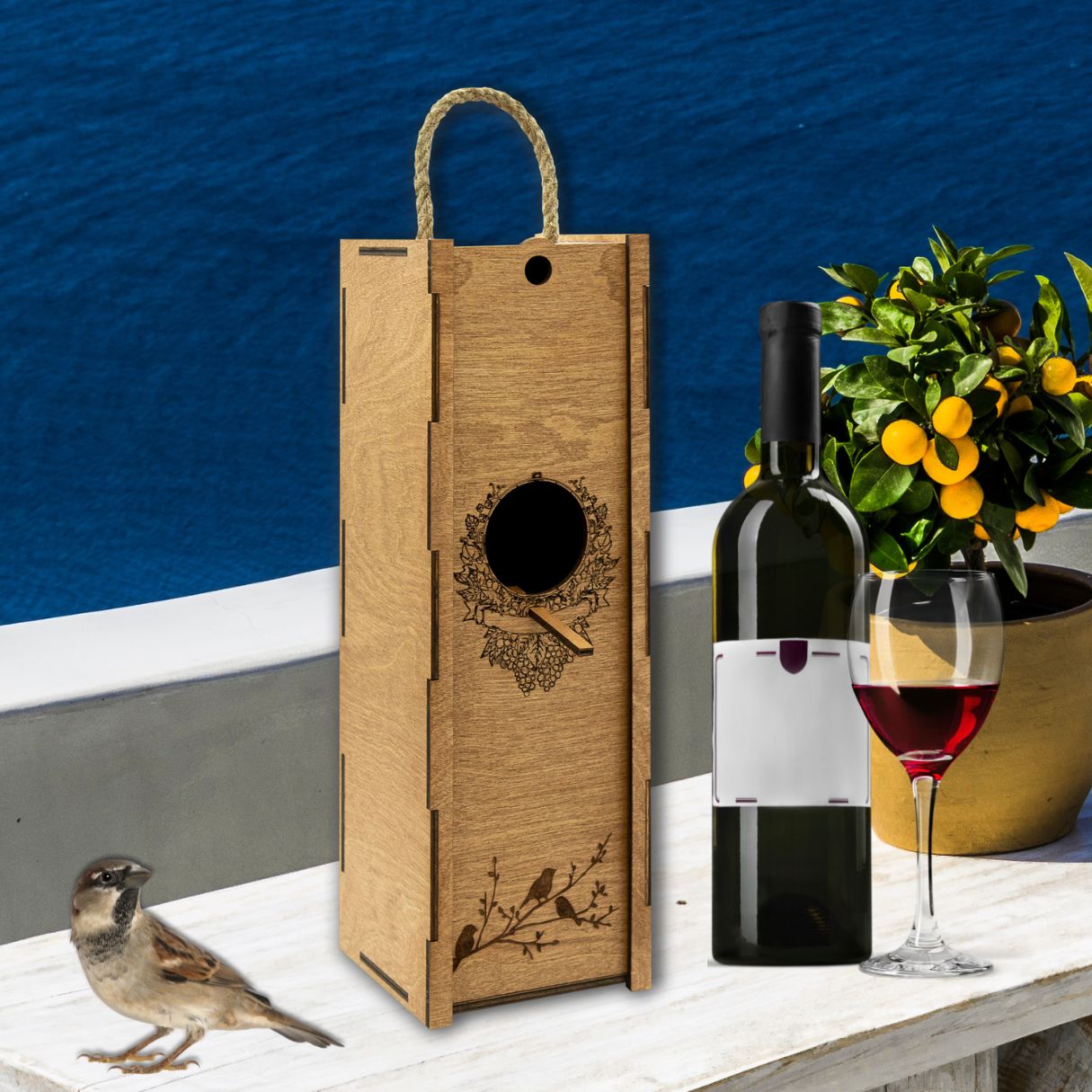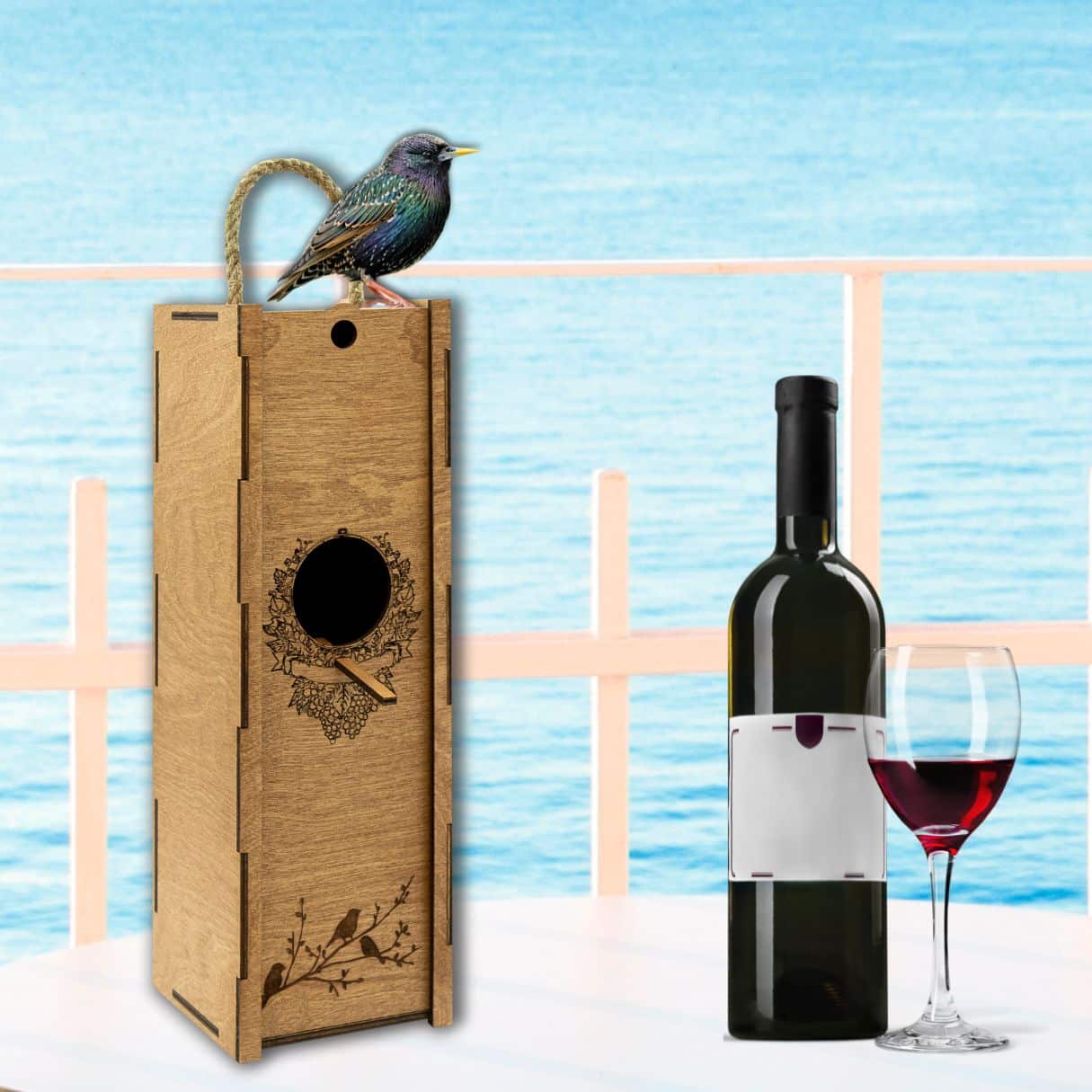 Boîte à vin avec corde «Nichoir»