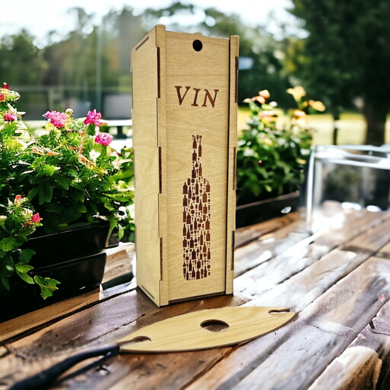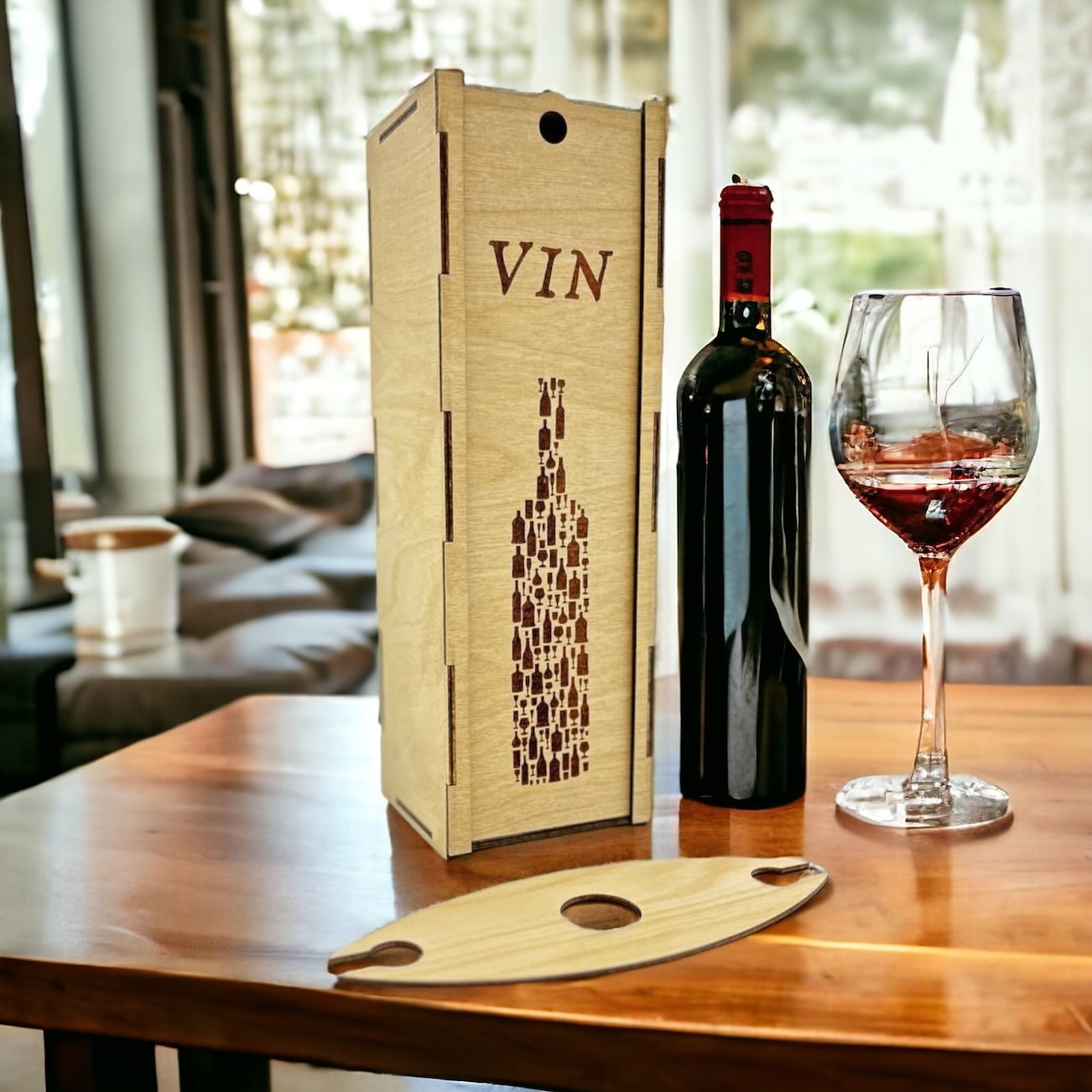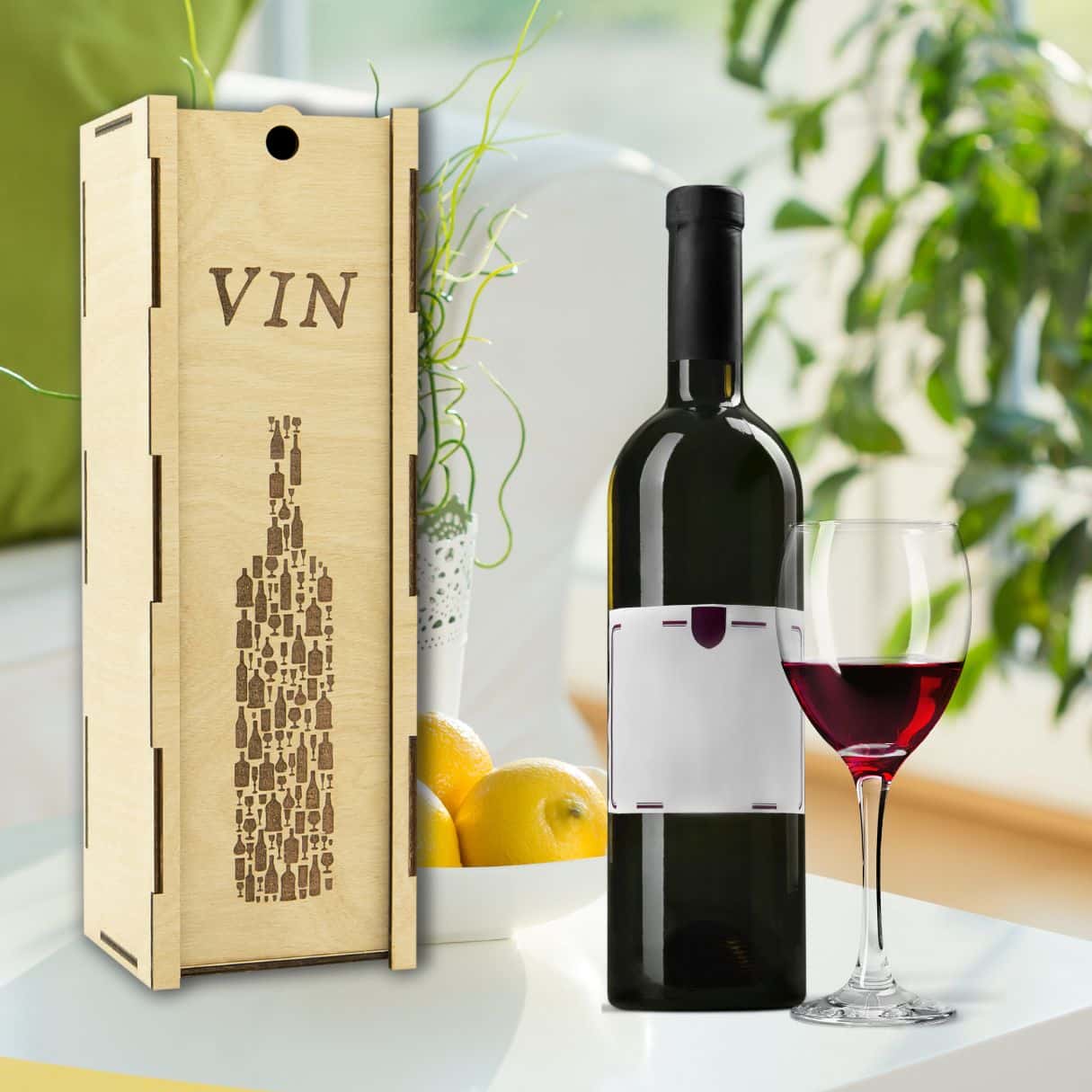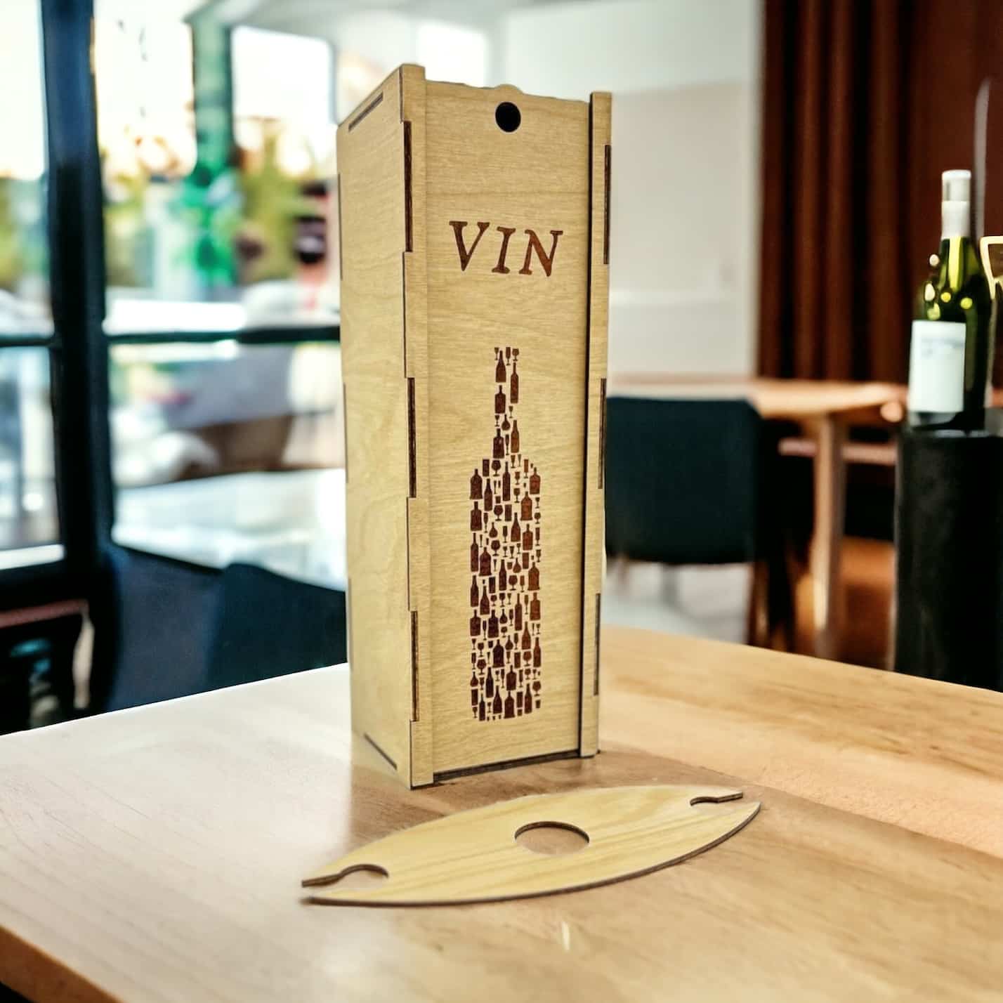 Offrez vos bouteilles de vin avec style et sophistication grâce à notre boîte à vin « Bouteille » en bois. Commandez dès maintenant et ajoutez une touche de raffinement à vos cadeaux et à votre décoration.