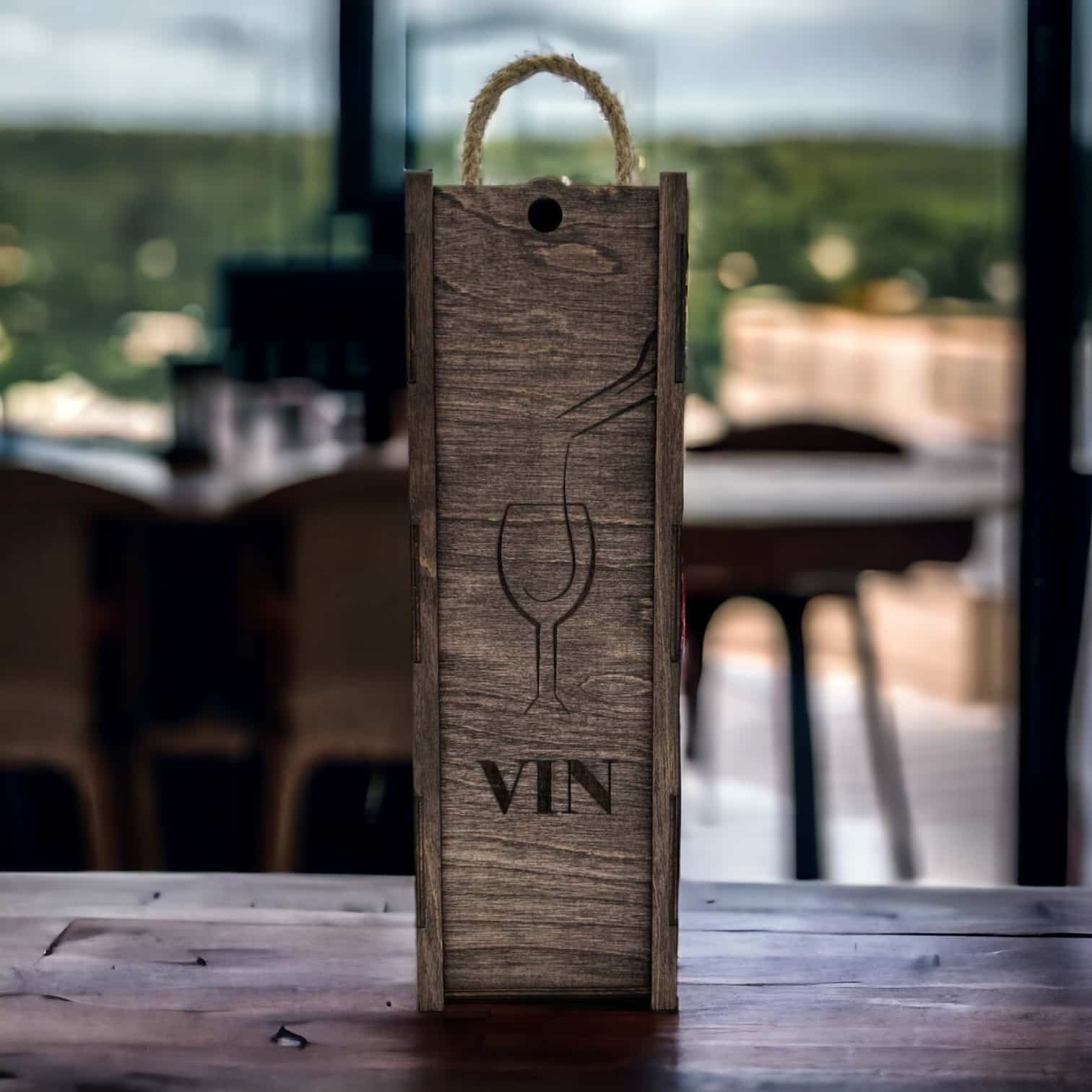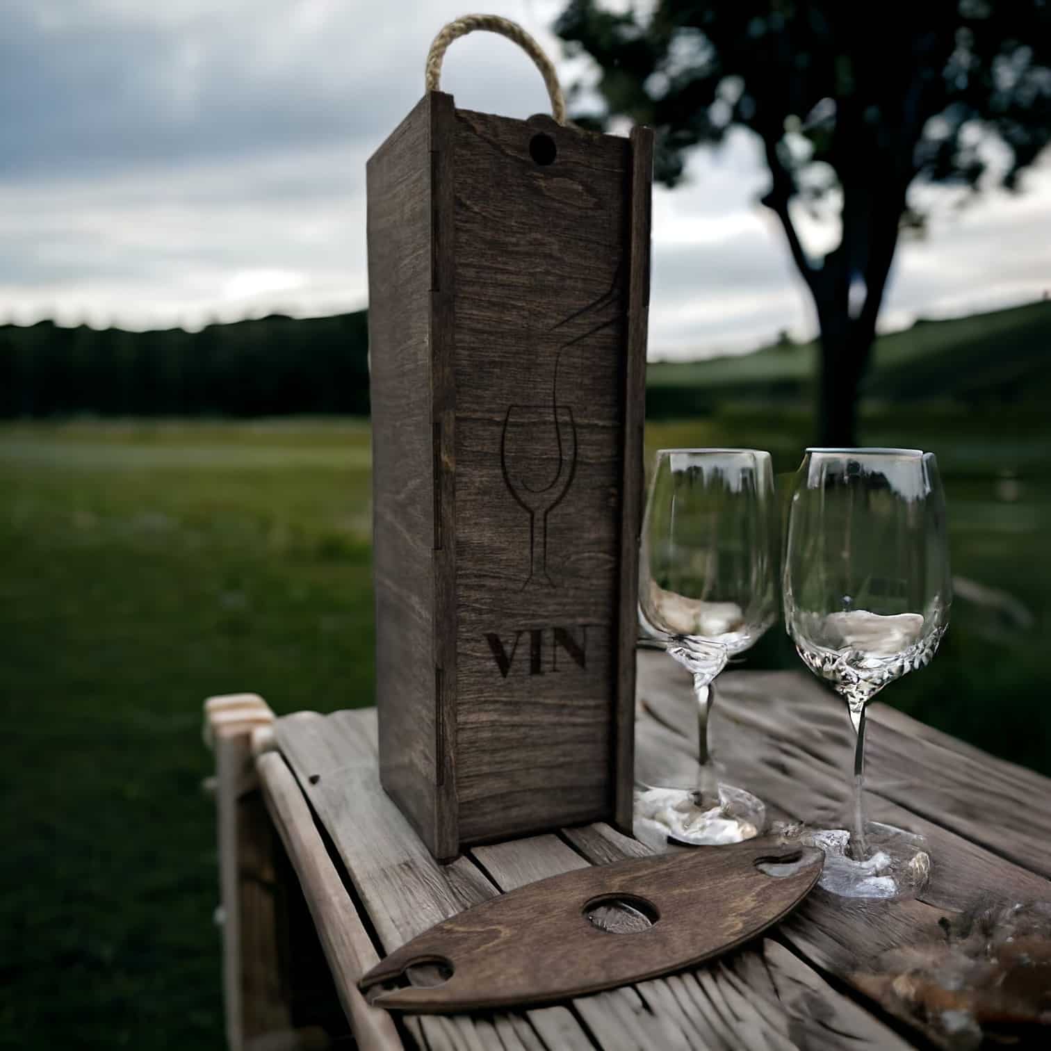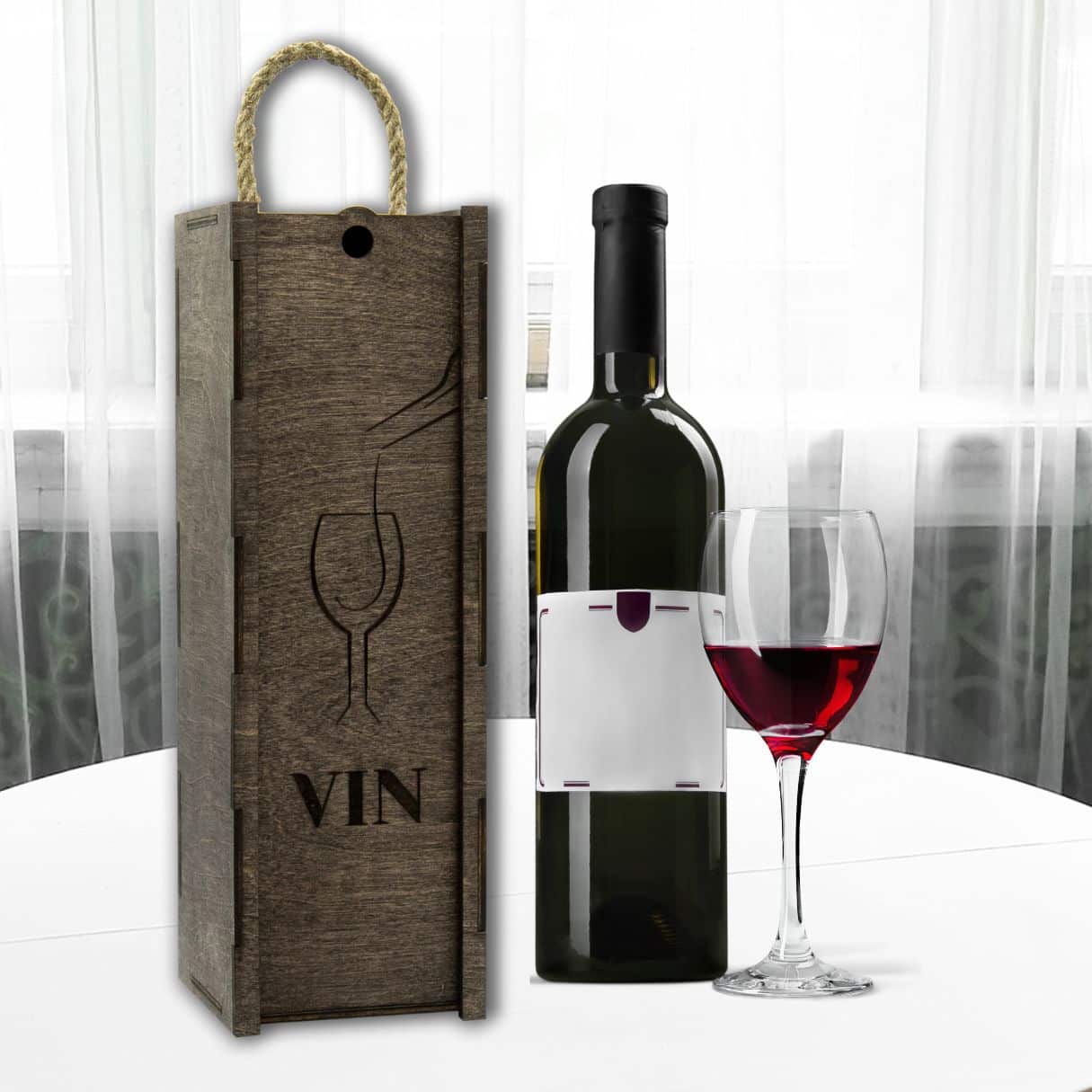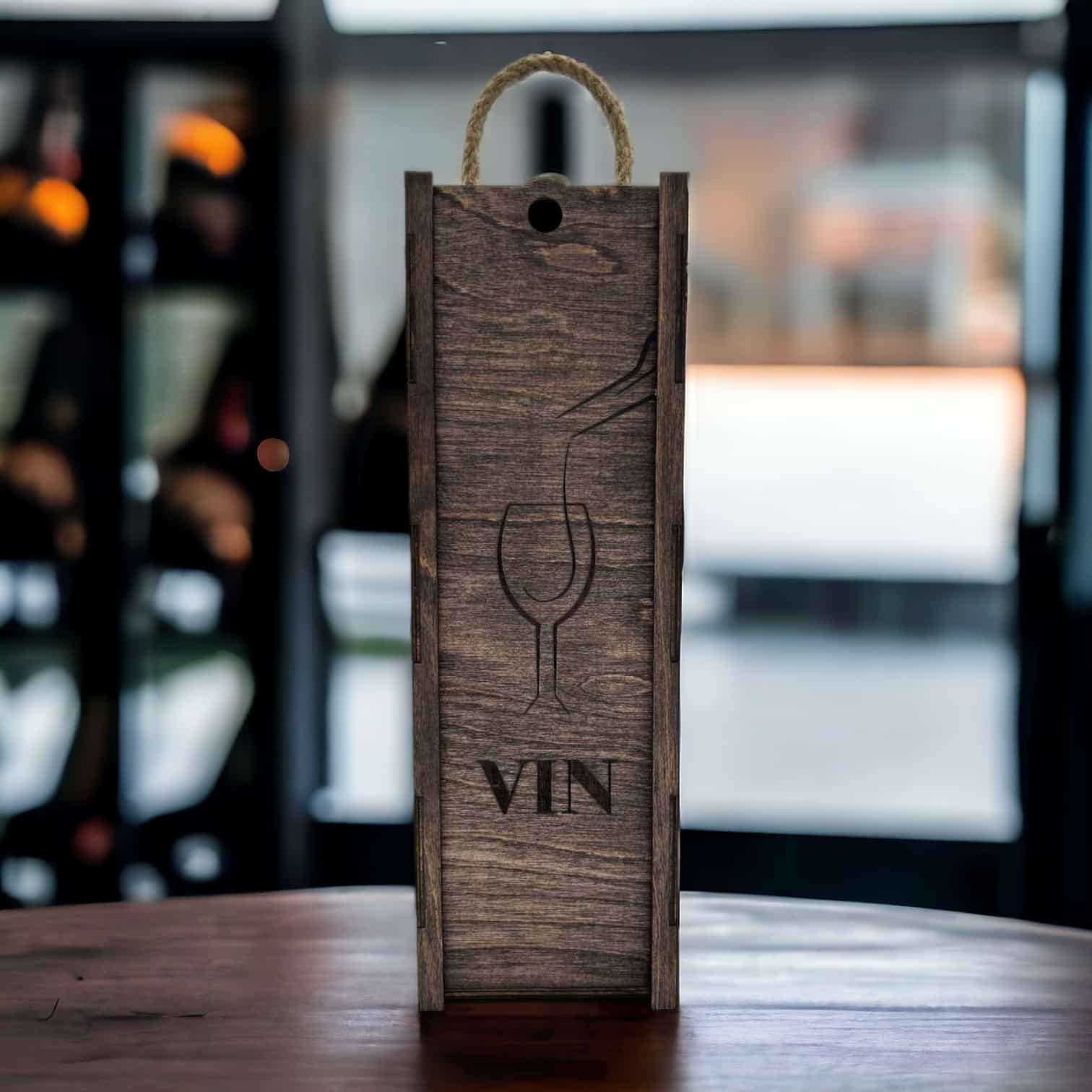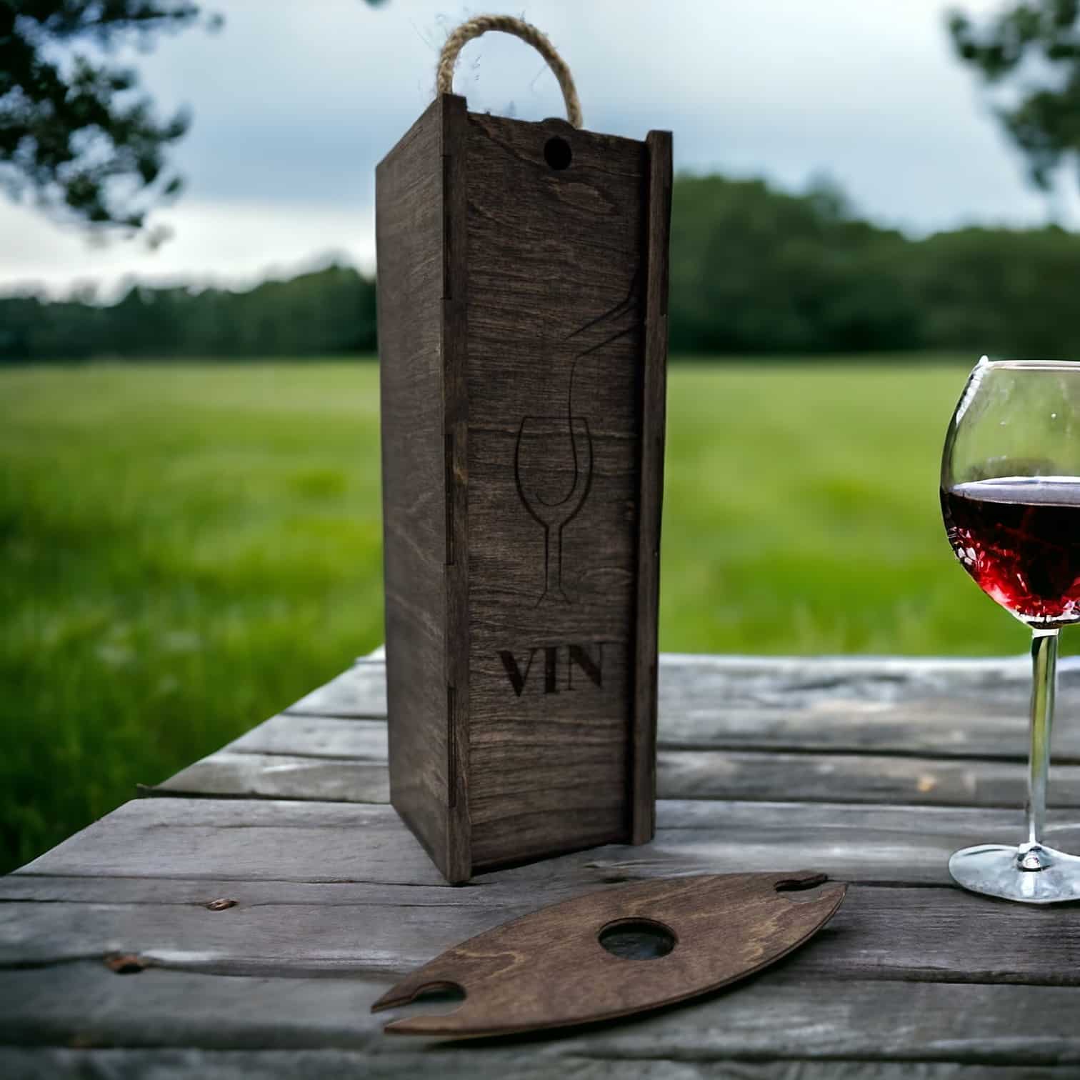 Offrez vos bouteilles de vin avec style et sophistication grâce à notre boîte à vin « Verre » en bois. Commandez dès maintenant et ajoutez une touche de raffinement à vos cadeaux et à votre décoration.