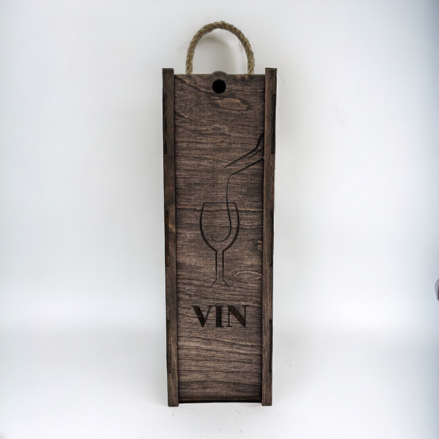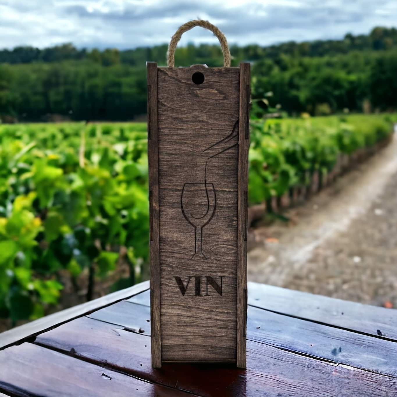 Offrez une présentation rustique et élégante à vos bouteilles de vin avec notre boîte à vin « Verre » en bois agrémentée d’une corde. Fabriquée à partir de bois de qualité supérieure, cette boîte allie charme et fonctionnalité pour mettre en valeur vos précieuses bouteilles.