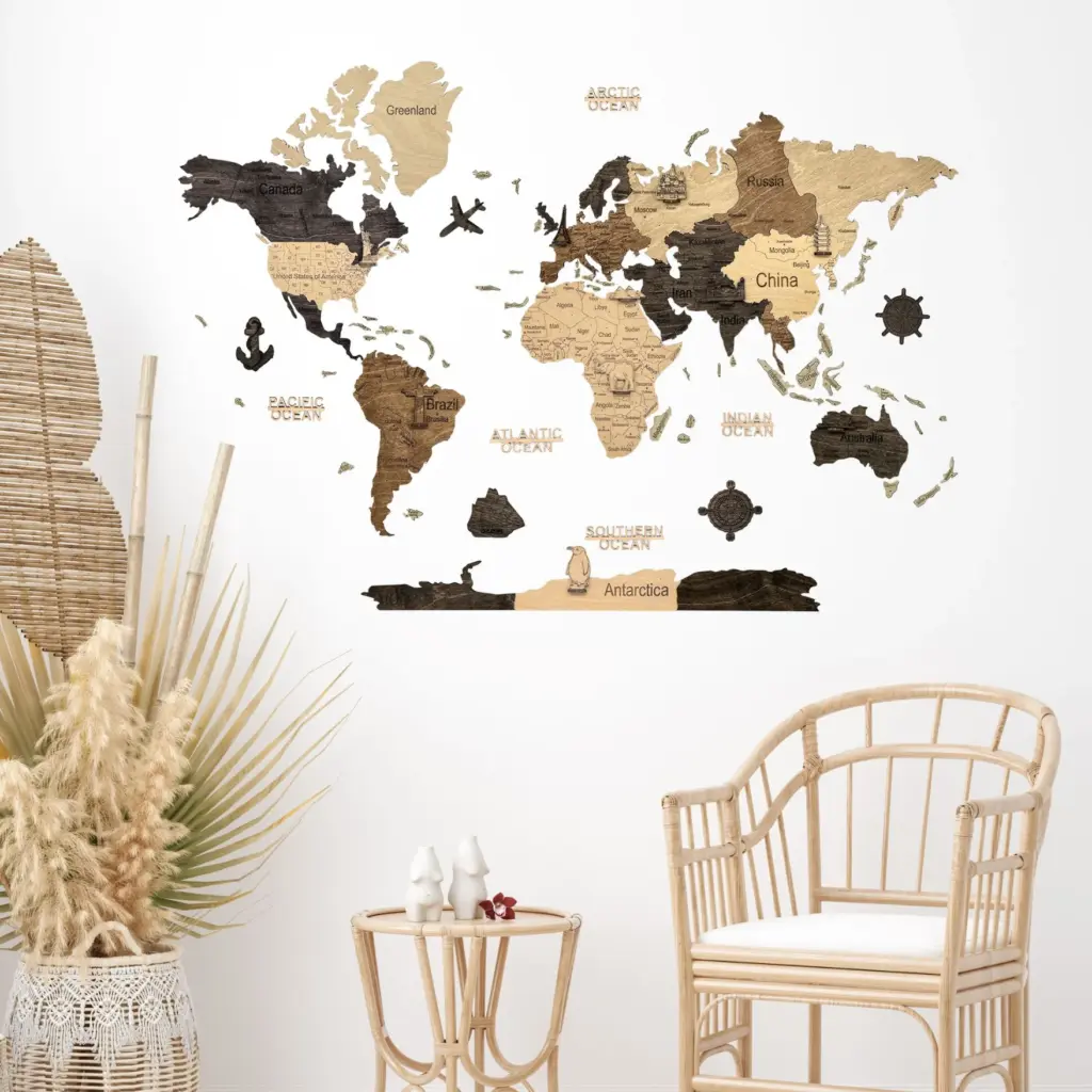 Pour installer cette Carte du monde en bois 2D, vous n’aurez besoin que d’un peu d’enthousiasme et de quelques heures pour vous amuser! Tout le reste est prévu !