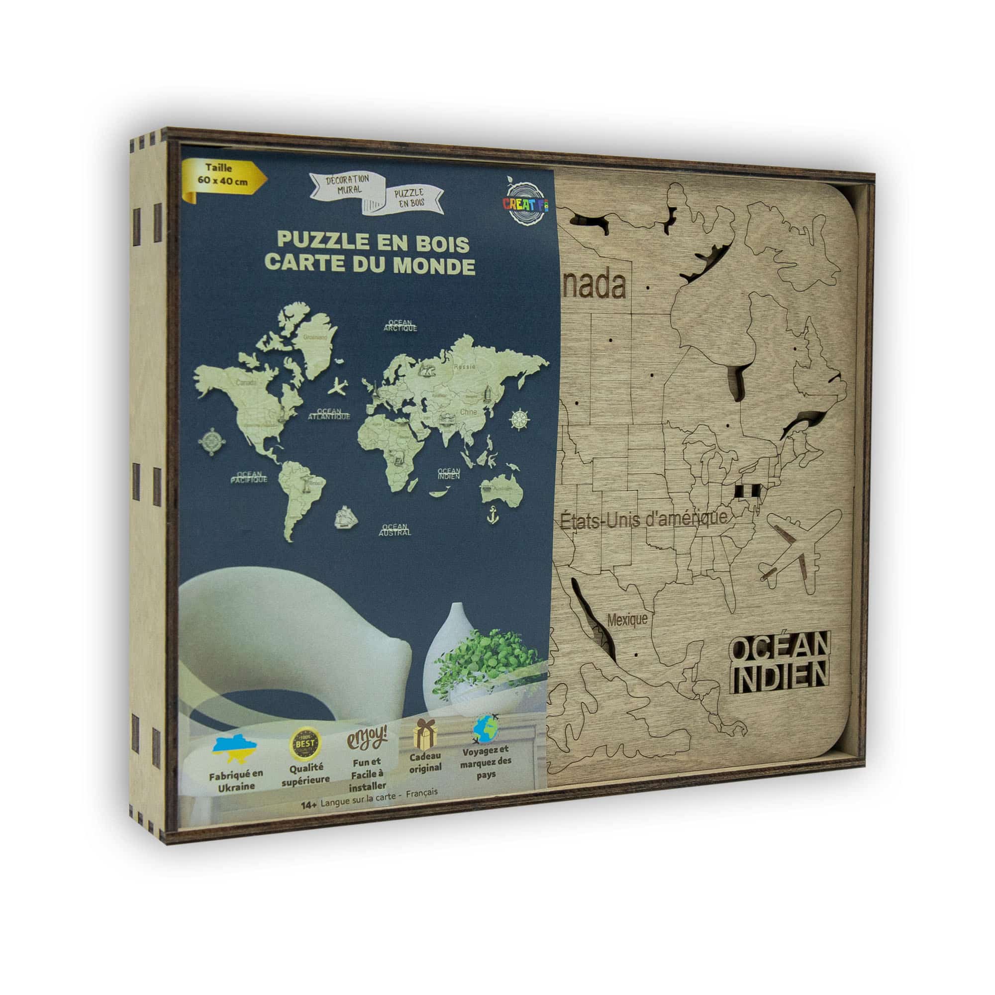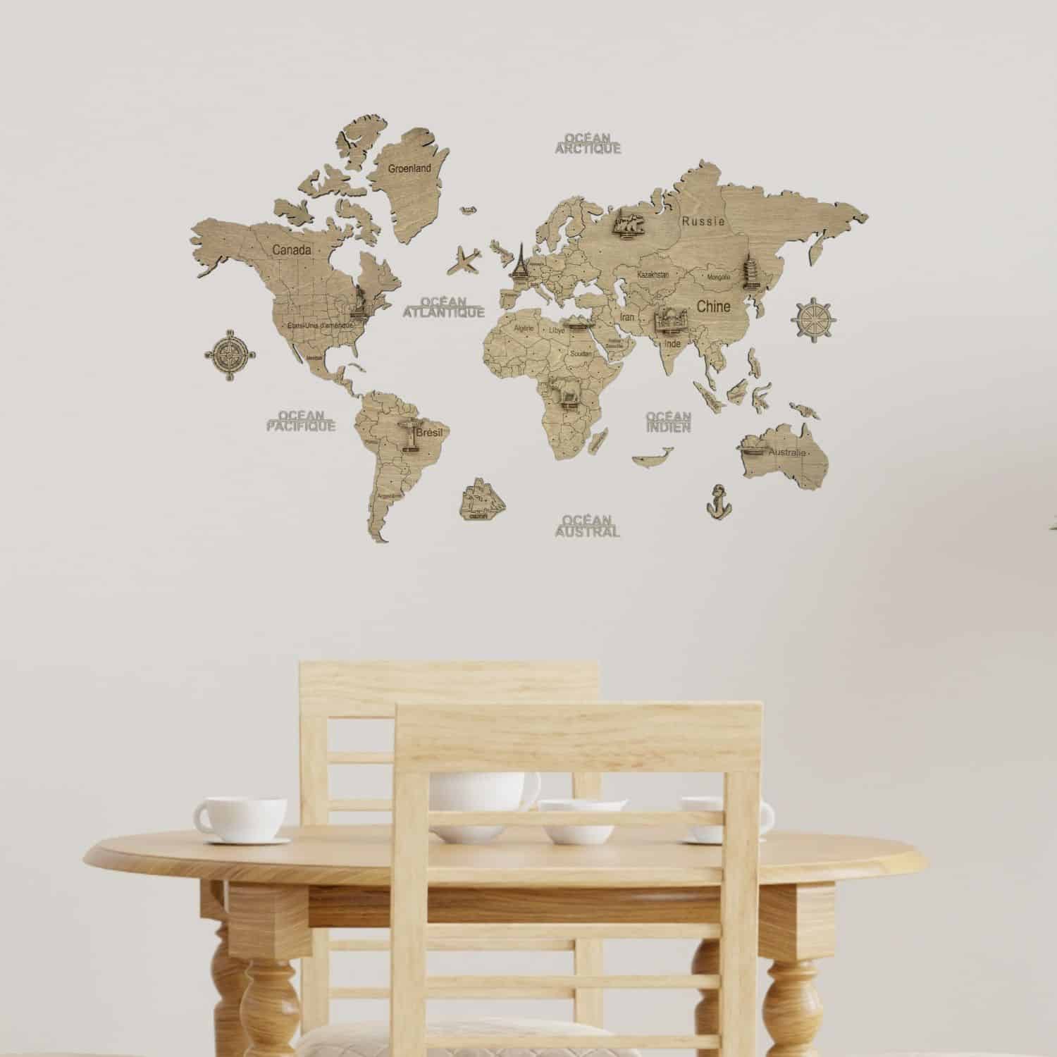 Ajoutez une touche de globe-trotteur à votre intérieur avec la Carte du Monde en Bois 2D de Creatifwood. Une décoration élégante et éducative qui inspire les rêves de voyage et la découverte du monde.