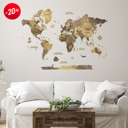 Explorez les recoins du monde sans quitter le confort de votre foyer grâce à la Carte du Monde en Bois 3D de CREATIFWOOD.✈️ Voyagez et marquez des pays que vous avez visités avec les punaises !