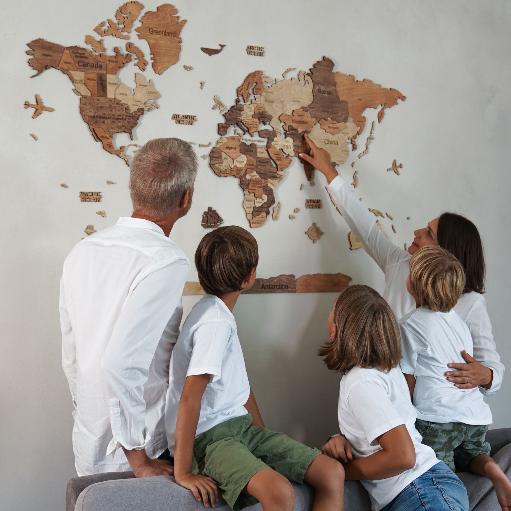 Voyagez à travers le monde sans quitter votre maison grâce à la Carte du Monde en Bois 3D de CREATIFWOOD.✈️ Voyagez et marquez des pays que vous avez visités avec les punaises !