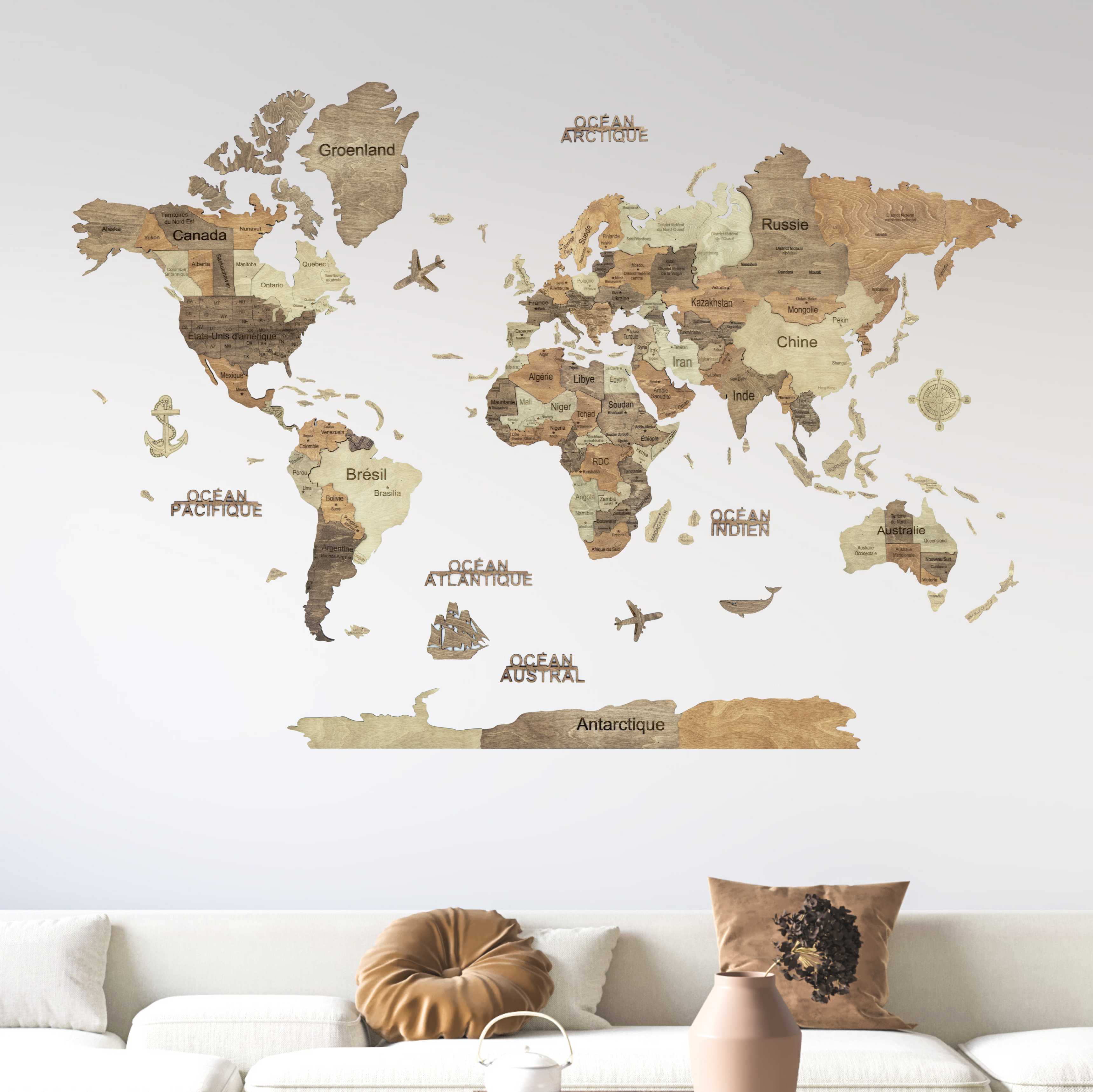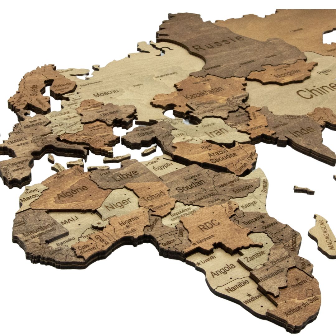 - Matériau Naturel et Durable : Fabriquée en contreplaqué de bouleau de haute qualité avec des gravures impeccables, notre carte du monde capture l’essence même de la nature. Chaque détail est sculpté avec précision, créant une texture riche et une apparence authentique. Avec une épaisseur de 4 à 9 mm, elle est solide et résistante.