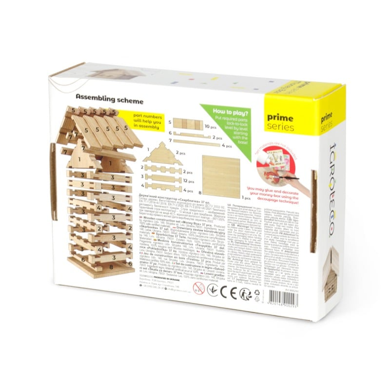 Ce jouet écologique de construction « Maison Tirelire » est destiné aux enfants dès 4 ans et permettra à votre enfant de construire lui-même une tirelire pour ses économies de poche !