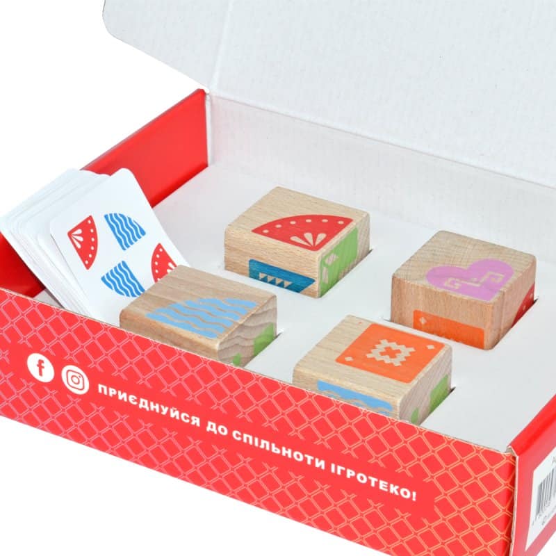 Comment jouer ? Les enfants choisissent une carte et tournent les cubes de manière à ce que le dessin sur les faces supérieures corresponde à celui de la carte.