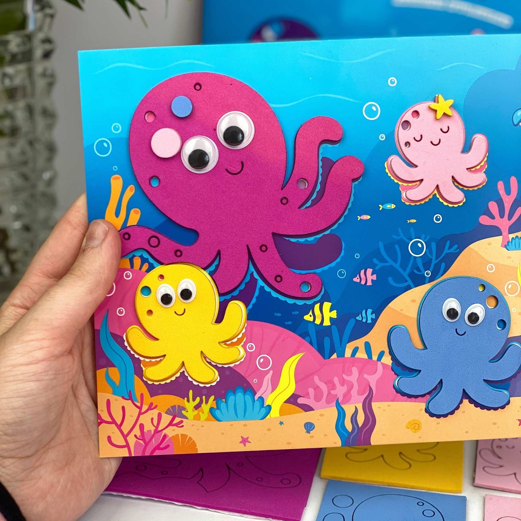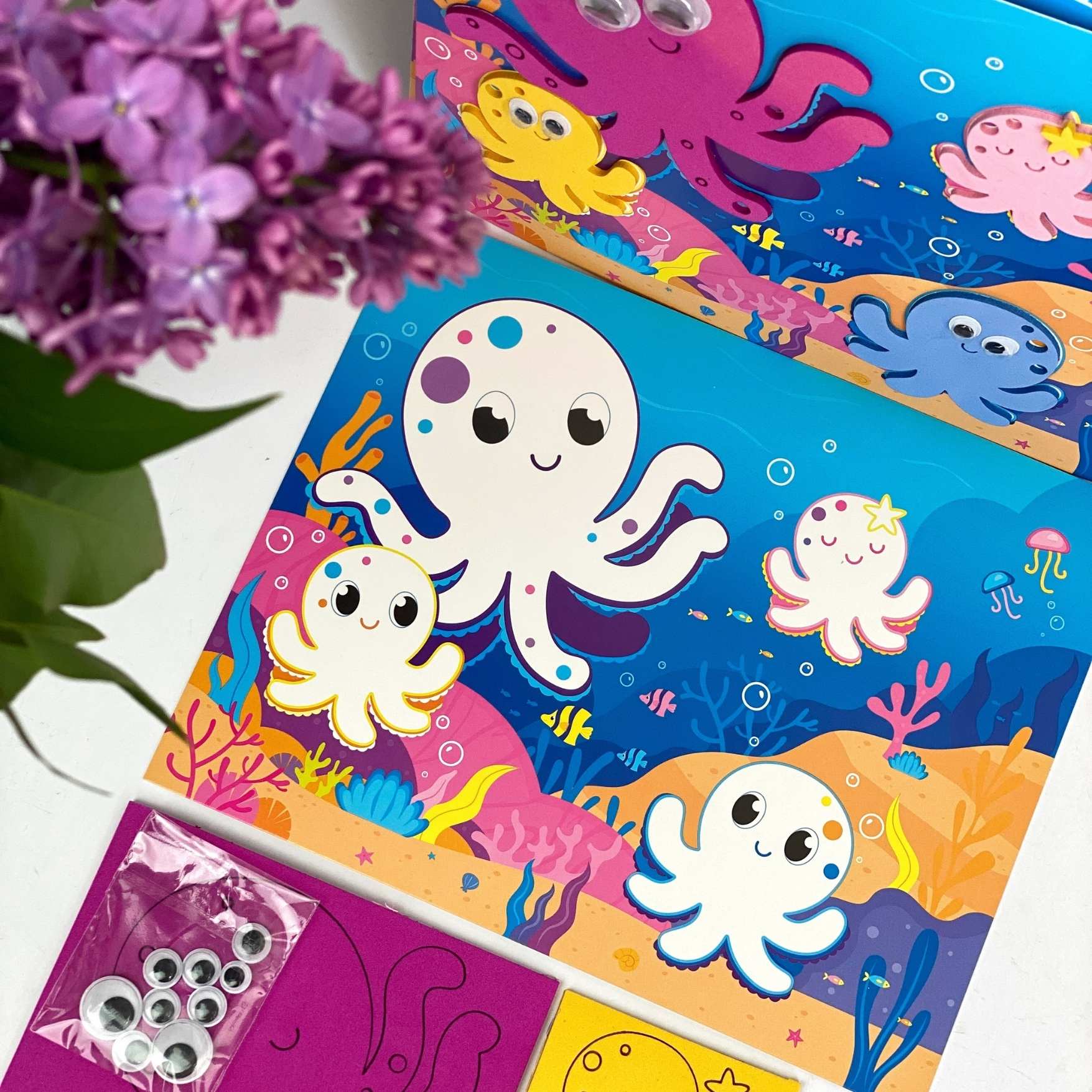 - Design : Contient toutes les pièces nécessaires pour assembler une famille de poulpes colorés et joyeux.