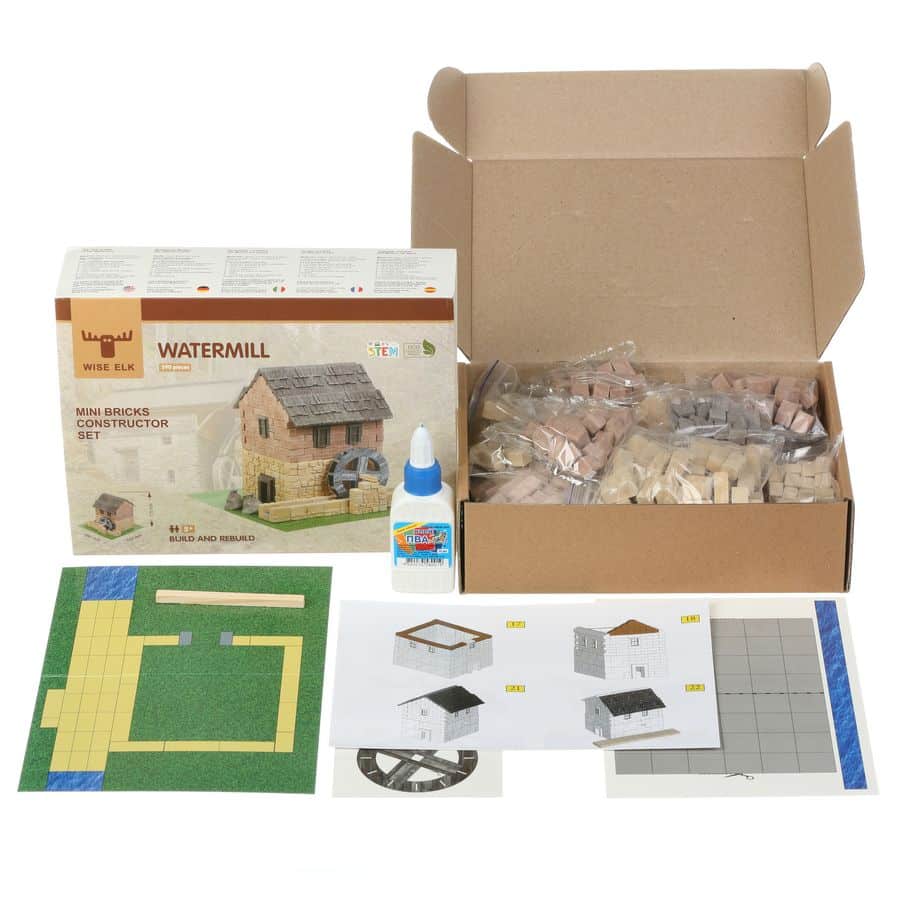 - Mini-briques authentiques pour construire le moulin à eau