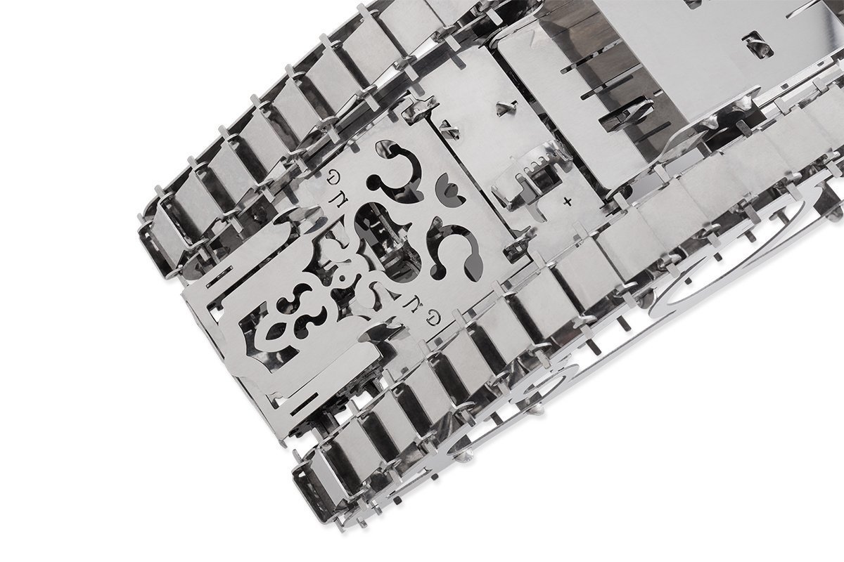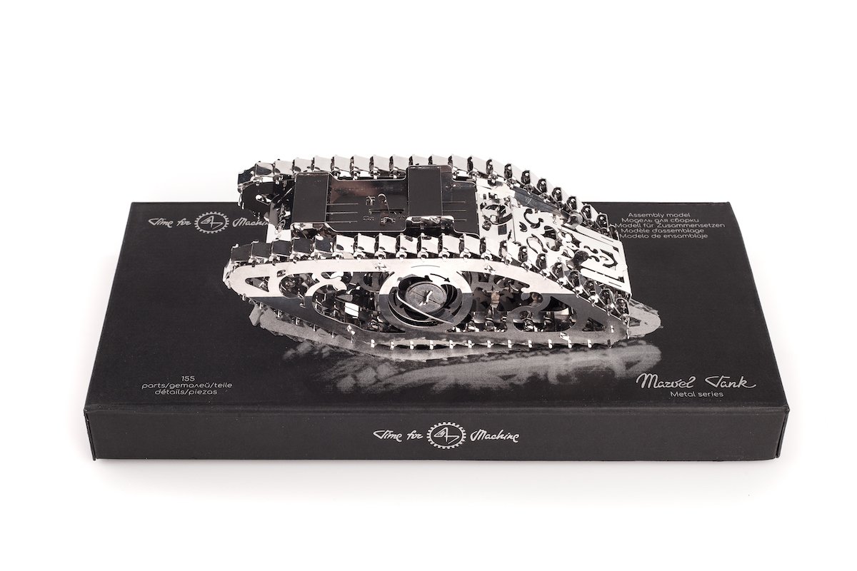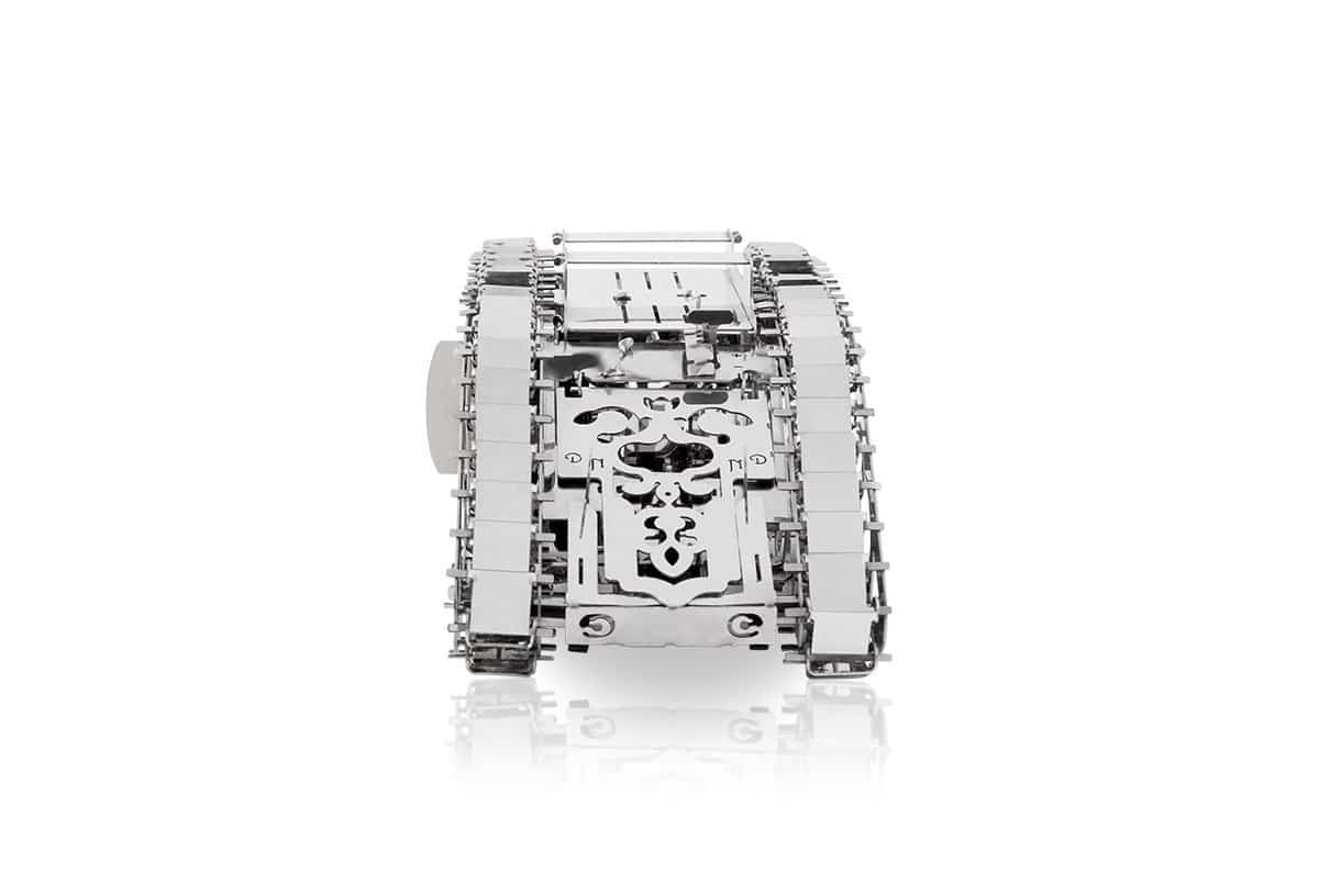 La majeure partie du Tank Marvel est inspirée d’un véritable char britannique. Le modèle est actionné par des leviers miniatures. Les chenilles mécaniques peuvent être mises en mouvement à l’aide d’un mécanisme de remontage. Il faut pour cela l’activer en utilisant la poignée située sur le côté du char.