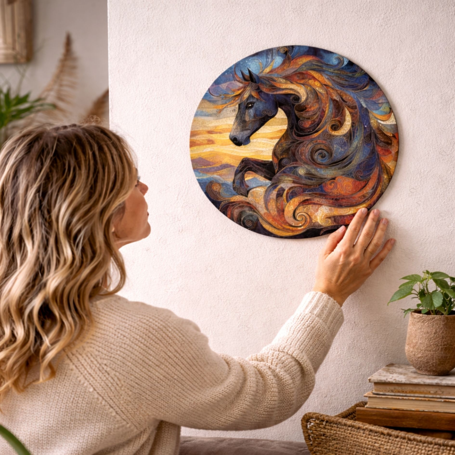 Le Cheval tempête dégage une puissance sauvage et une énergie indomptable. Sa crinière semble flotter au vent comme des vagues déchaînées, symbolisant la liberté et la fougue.