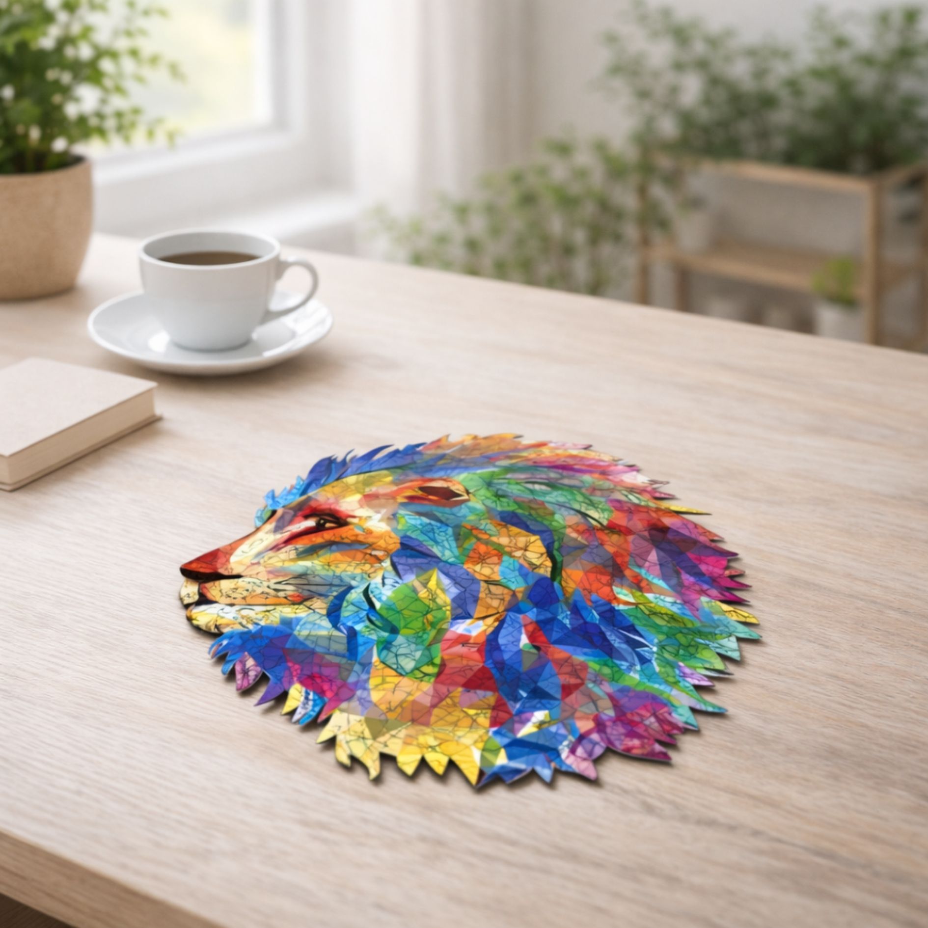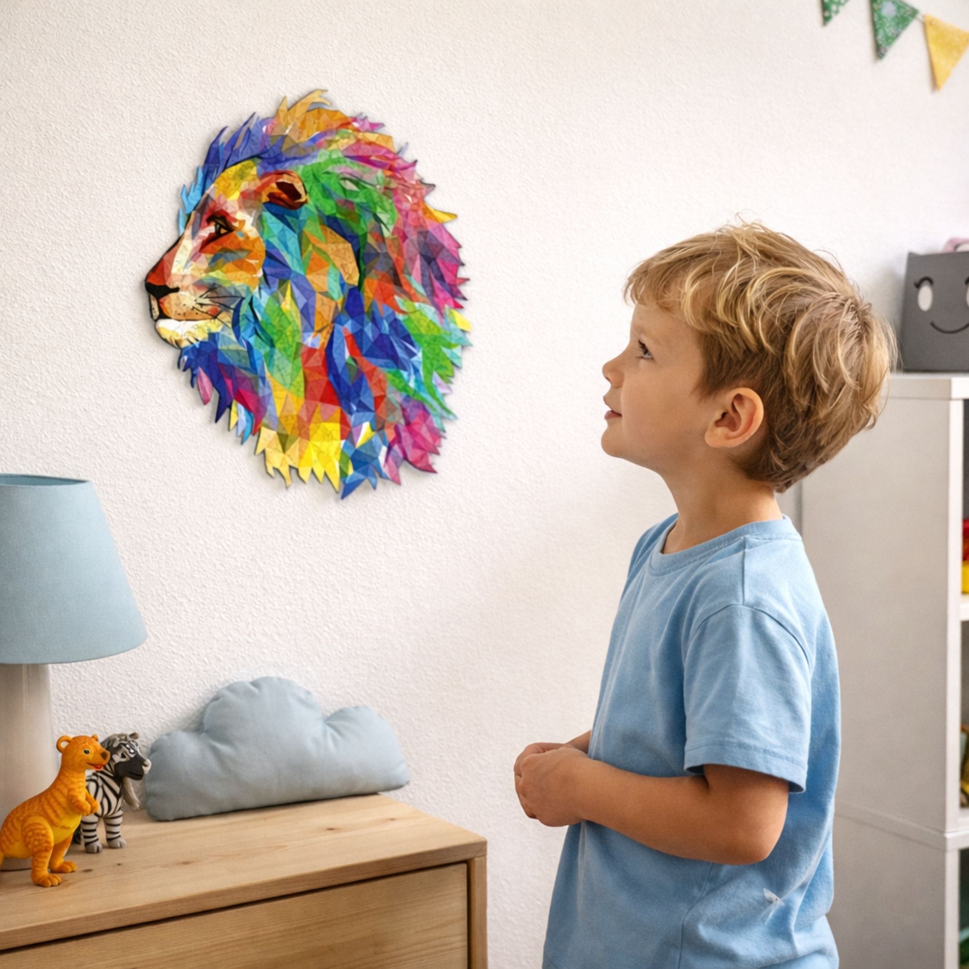 Le Lion Mozaïk est une explosion de couleurs et de puissance. Roi incontesté des animaux, il se dévoile ici à travers un design vibrant, où chaque pièce s’unit comme les fragments d’une mosaïque vivante.