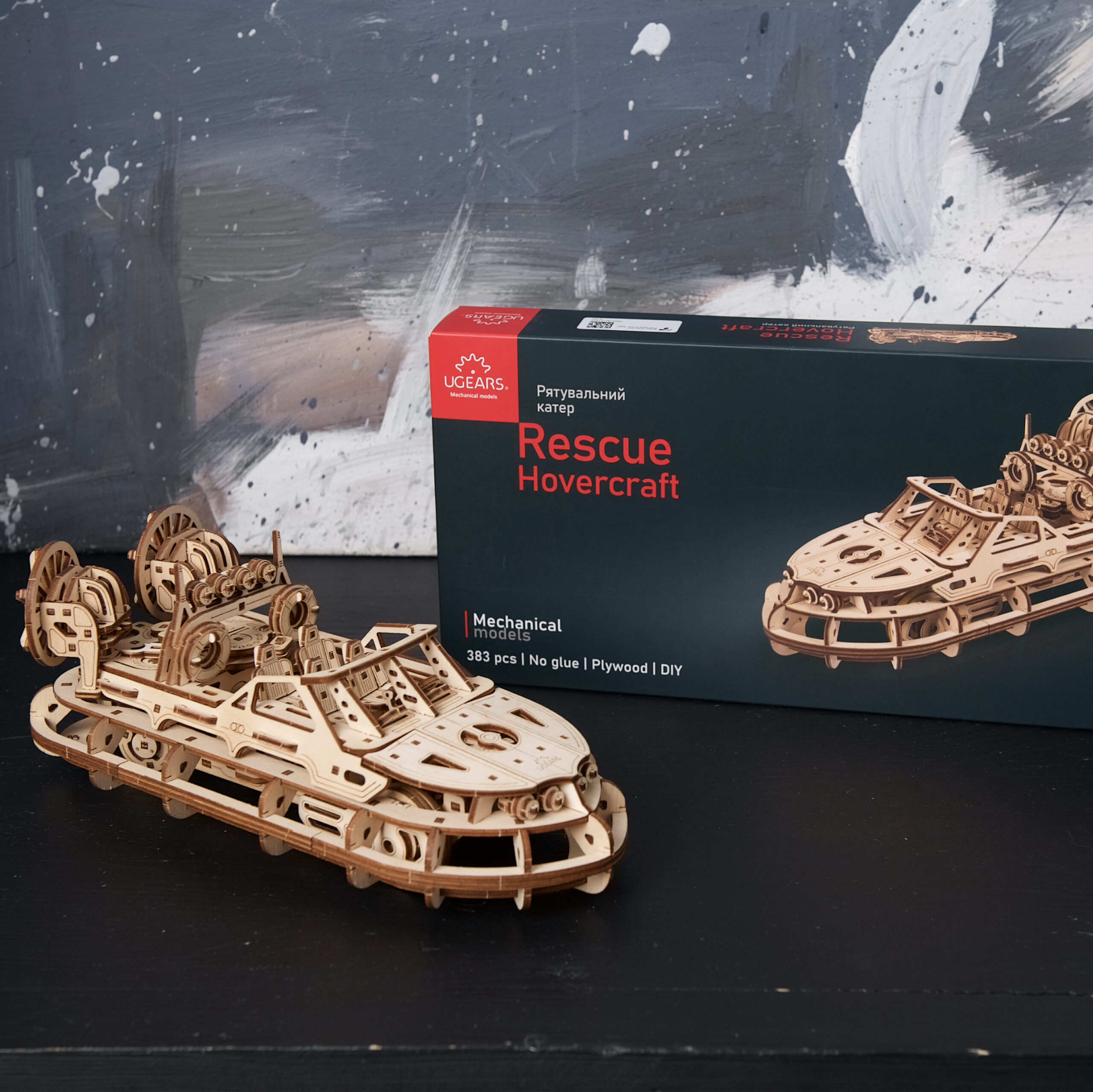 Ugears rend hommage aux équipes de secours du monde entier avec le modèle Aéroglisseur de sauvetage. Quel service de police ou de pompiers, ou quelle équipe de recherche et de sauvetage n’aimerait pas avoir cet aéroglisseur de sauvetage prêt à partir après une catastrophe ? Lorsqu’une grosse tempête frappe, il peut y avoir un mélange de zones inondables et de terres sèches, quartier par quartier, voire rue par rue, ce qui rend impossible pour les véhicules de sauvetage ordinaires, qu’il s’agisse de bateaux ou de camions, d’atteindre les survivants. C’est dans ce cas que l’aéroglisseur se distingue. Capable de glisser sur n’importe quelle surface – terre, eau, boue ou glace – sur un coussin d’air, l’aéroglisseur peut amener le personnel d’urgence là où il est le plus nécessaire, arrachant des personnes aux eaux de crue et aux toits ou acheminant des fournitures dans des zones autrement inaccessibles.