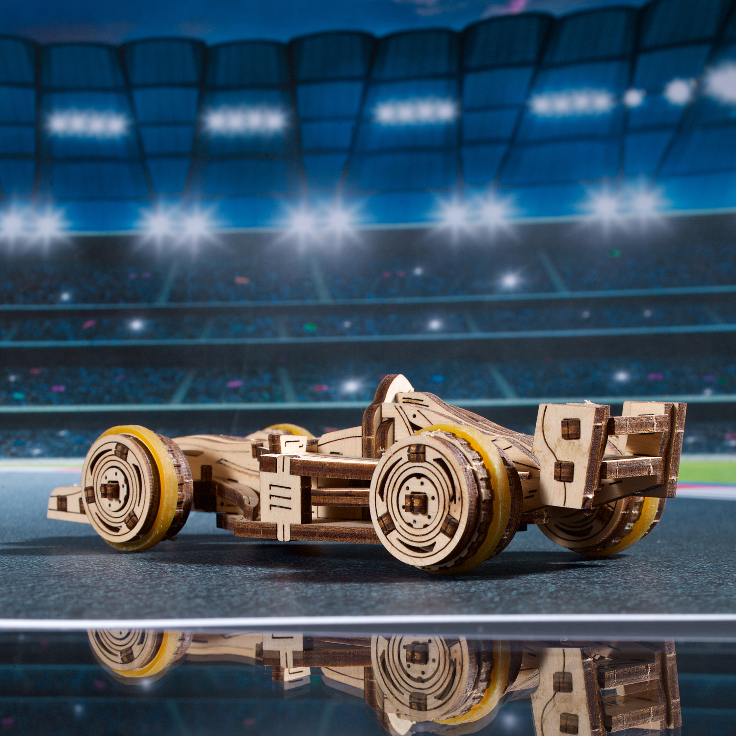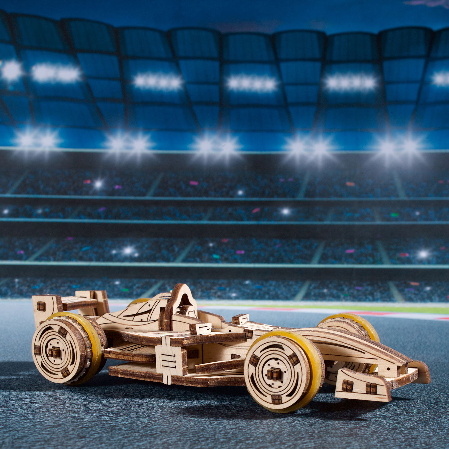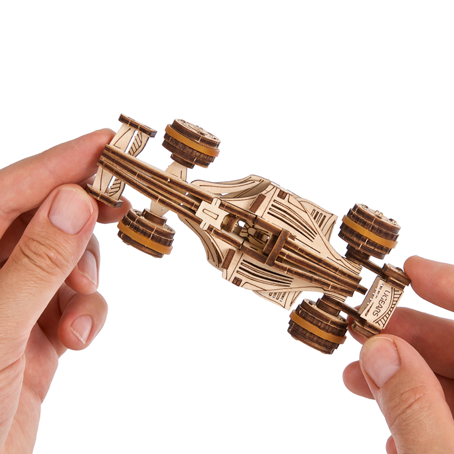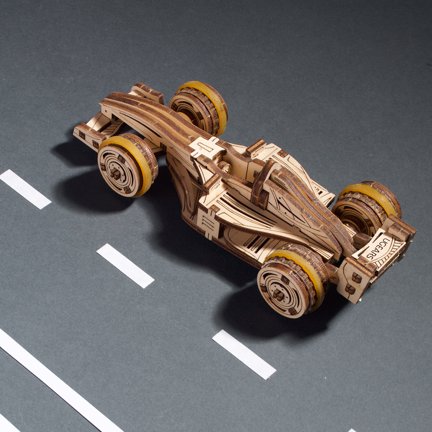 Faites battre le cœur et l’esprit des jeunes avec le Bolide compact Ugears, une maquette de voiture de course à monter soi-même de niveau « Facile », qui s’inspire des voitures de course les plus performantes du circuit international. Même les plus jeunes passionnés de course automobile prendront plaisir à construire et à jouer avec cette simple voiture de course en bois. Avec le Bolide compact Ugears, votre enfant peut transformer n’importe quelle table en circuit de course en installant des blocs de construction ou d’autres jouets en guise d’obstacles, ou en utilisant un morceau de ficelle pour créer un parcours de course tortueux. Les animaux en peluche, les poupées ou les figurines de votre enfant peuvent servir de spectateurs et encourager le Mini bolide pendant qu’il parcourt le circuit !