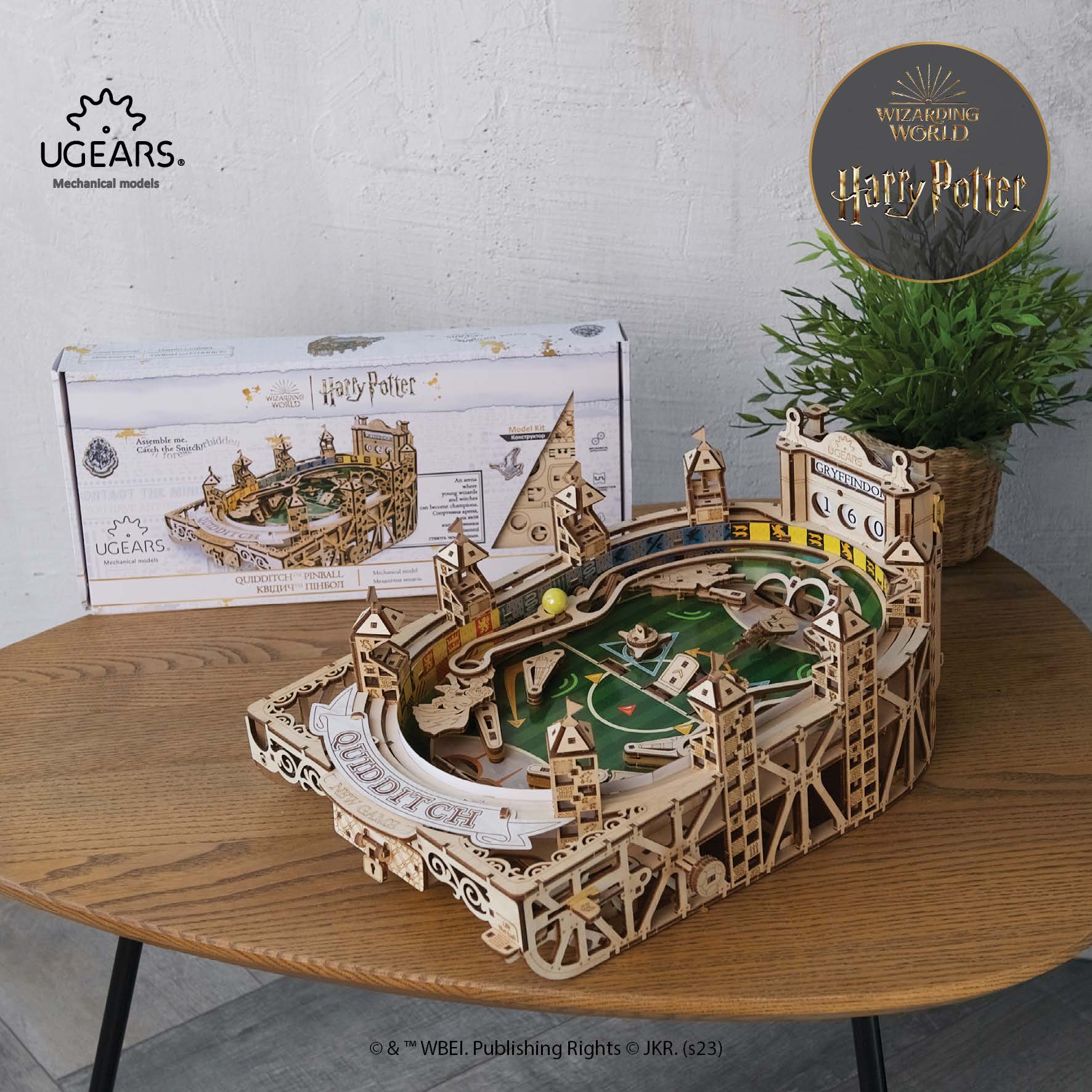 Sautez sur votre balai et préparez-vous à jouer à un passionnant jeu de Flipper Quidditch™, la nouvelle maquette de la collection Harry Potter™ de chez Ugears.