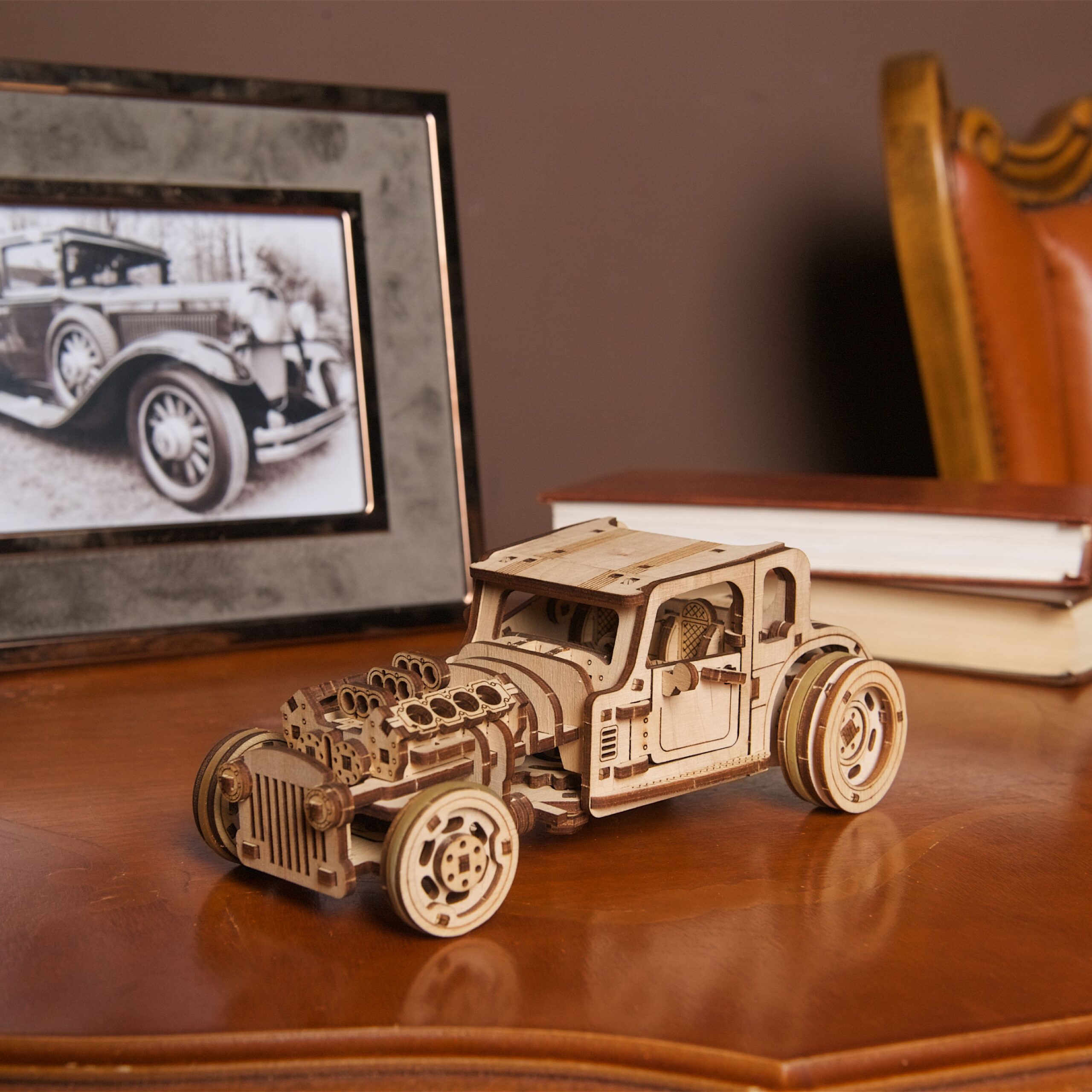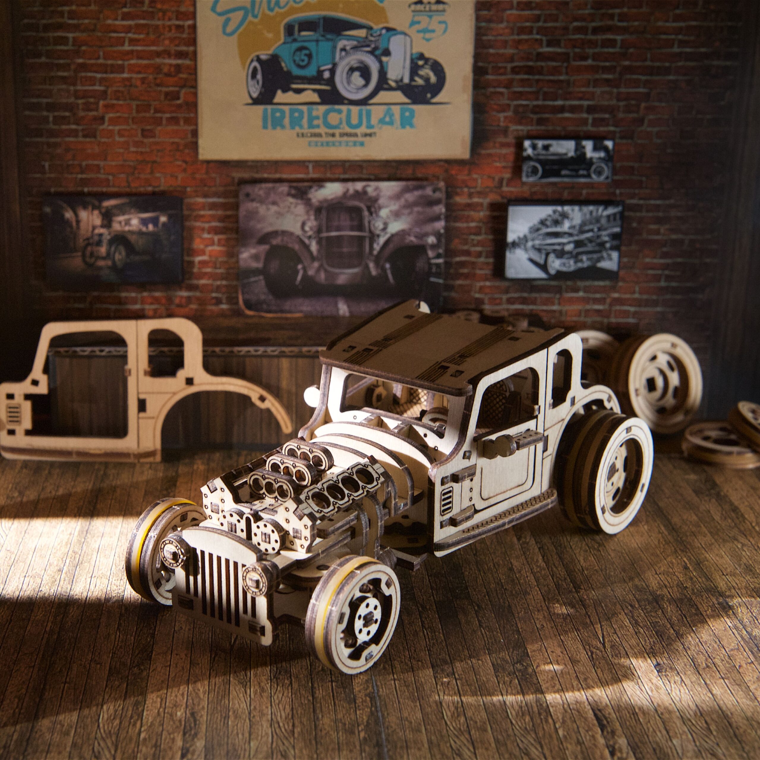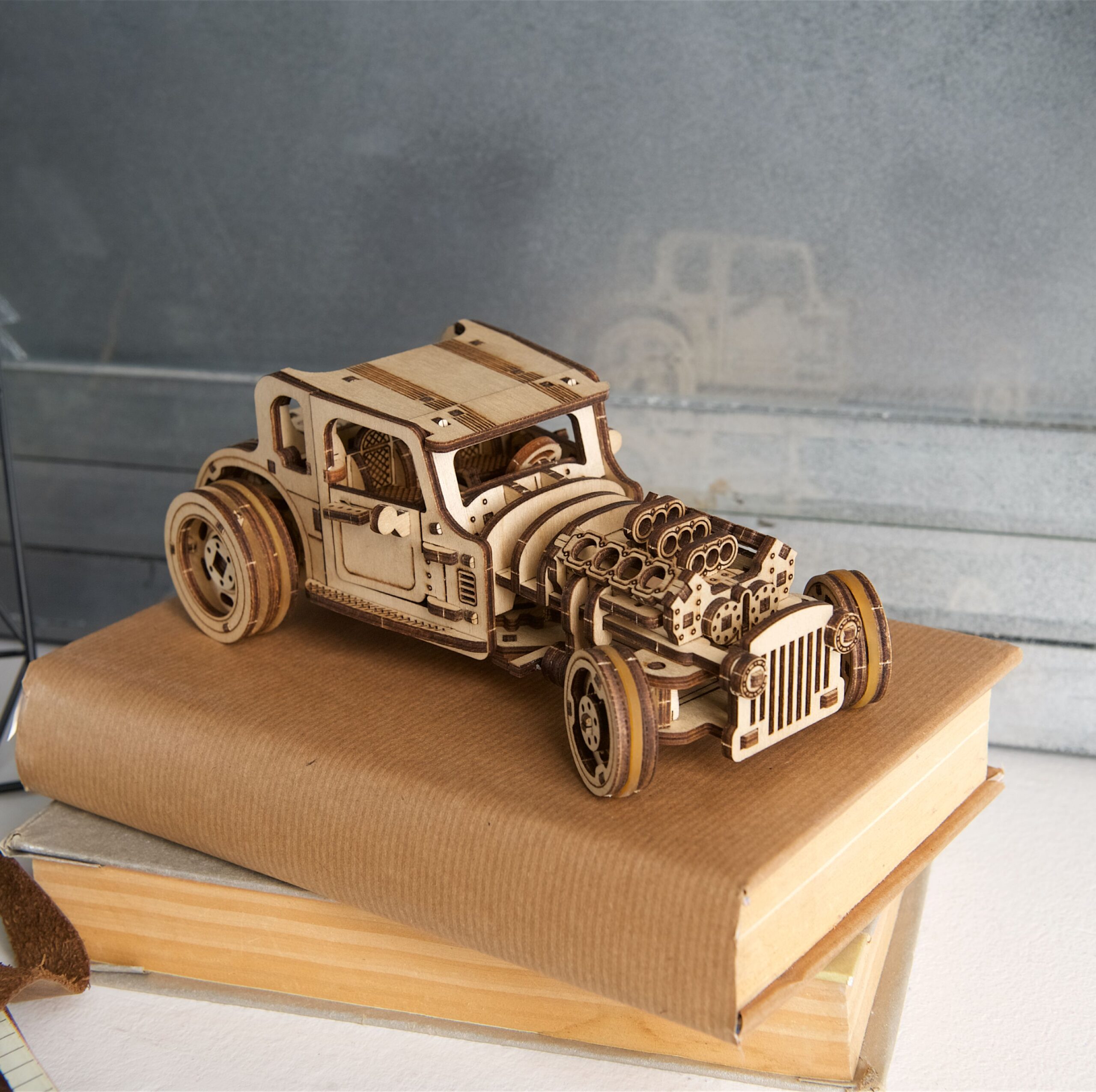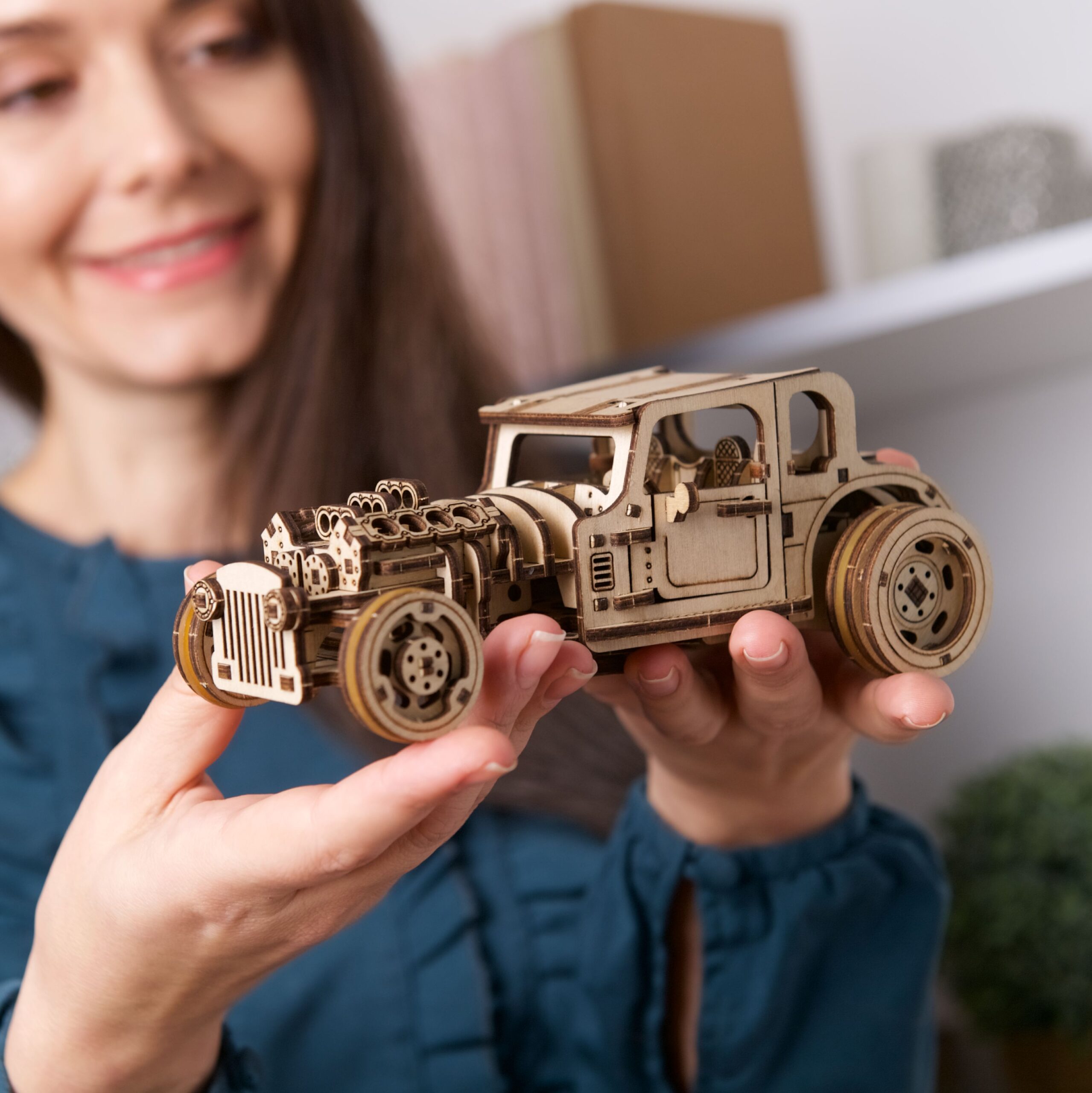 Hot Rod – Moteur Furieux est un ajout intéressant à notre catalogue grandissant de voitures de course, de motos, de camions et d’autres modèles de bricolage automobile exceptionnels Ugears. C’est un cadeau idéal pour tout amateur de voitures ou de puzzles 3D. Il peut être laissé dans son attrayant état de bois naturel ou bien être coloré ou peint dans une palette de couleurs personnalisée de votre choix. Allez-y, super amateurs. Colorez, modifiez ou transformez le Hot Rod – Moteur Furieux à votre guise ! C’est dans l’esprit de la chose, non ?