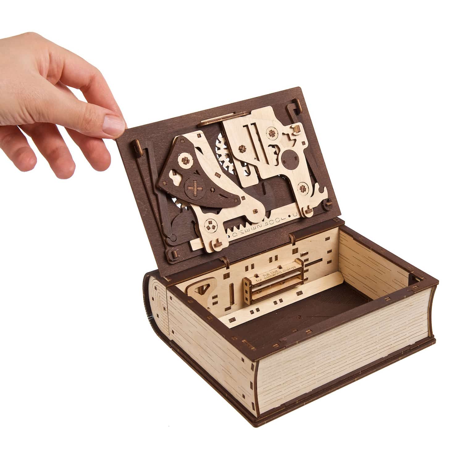 Книги використовувалися для приховування предметів у реальному житті та в художній літературі майже стільки часу, скільки існують книги. Власники будинків можуть сховати цінні речі від грабіжників, видовбавши книгу та поклавши її на полицю разом з іншими книгами. Секретну книгу легко знайти власнику, але майже неможливо знайти грабіжнику. У «Матриці» Нео ховає комп’ютерні диски та гроші в книзі, і хто може забути втечу з в’язниці у «Втікачах», здійснену за допомогою молотка, захованого в Біблії, сторінки якої вирізано з Виходу. Усі люблять головоломки та загадки, і ця секретна книга Ugears просто чудова загадка з низкою головоломок, які потрібно вирішити, щоб відкрити секретний відсік і побачити, що всередині!