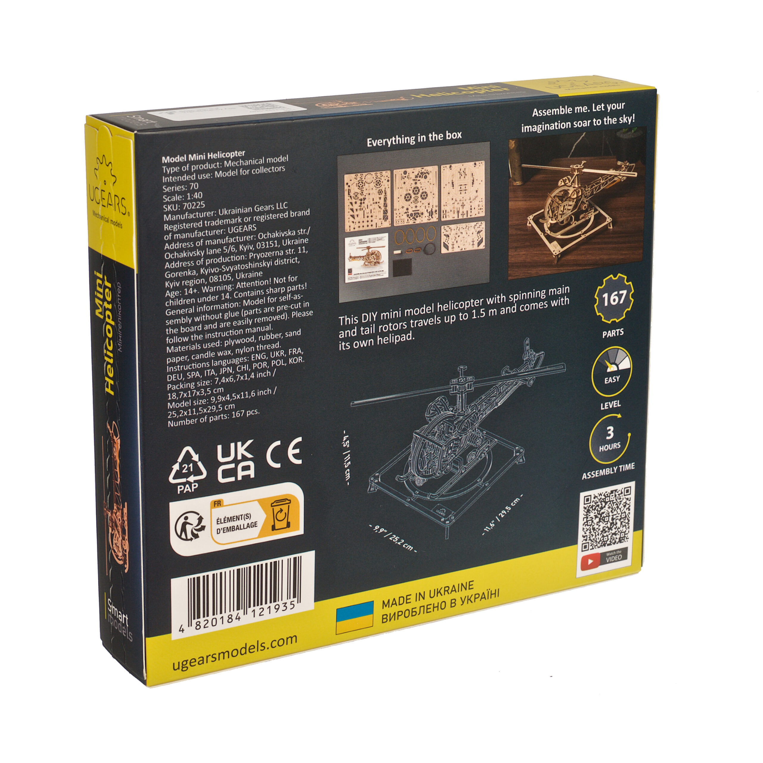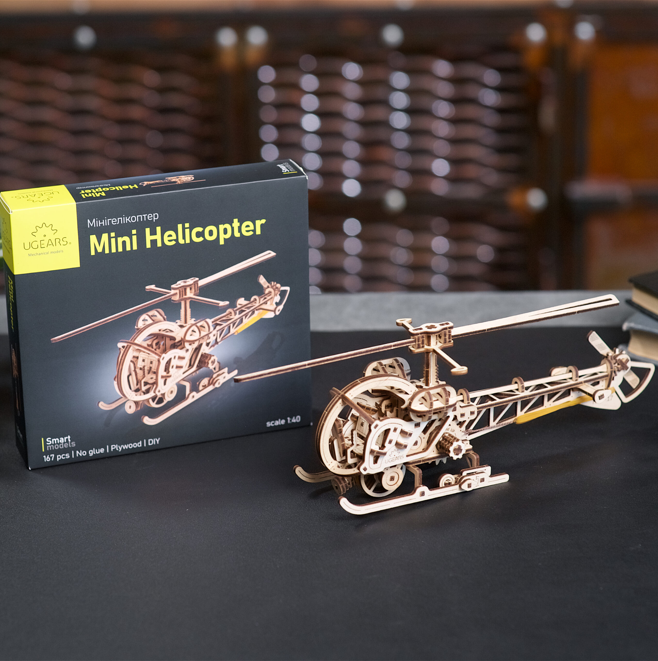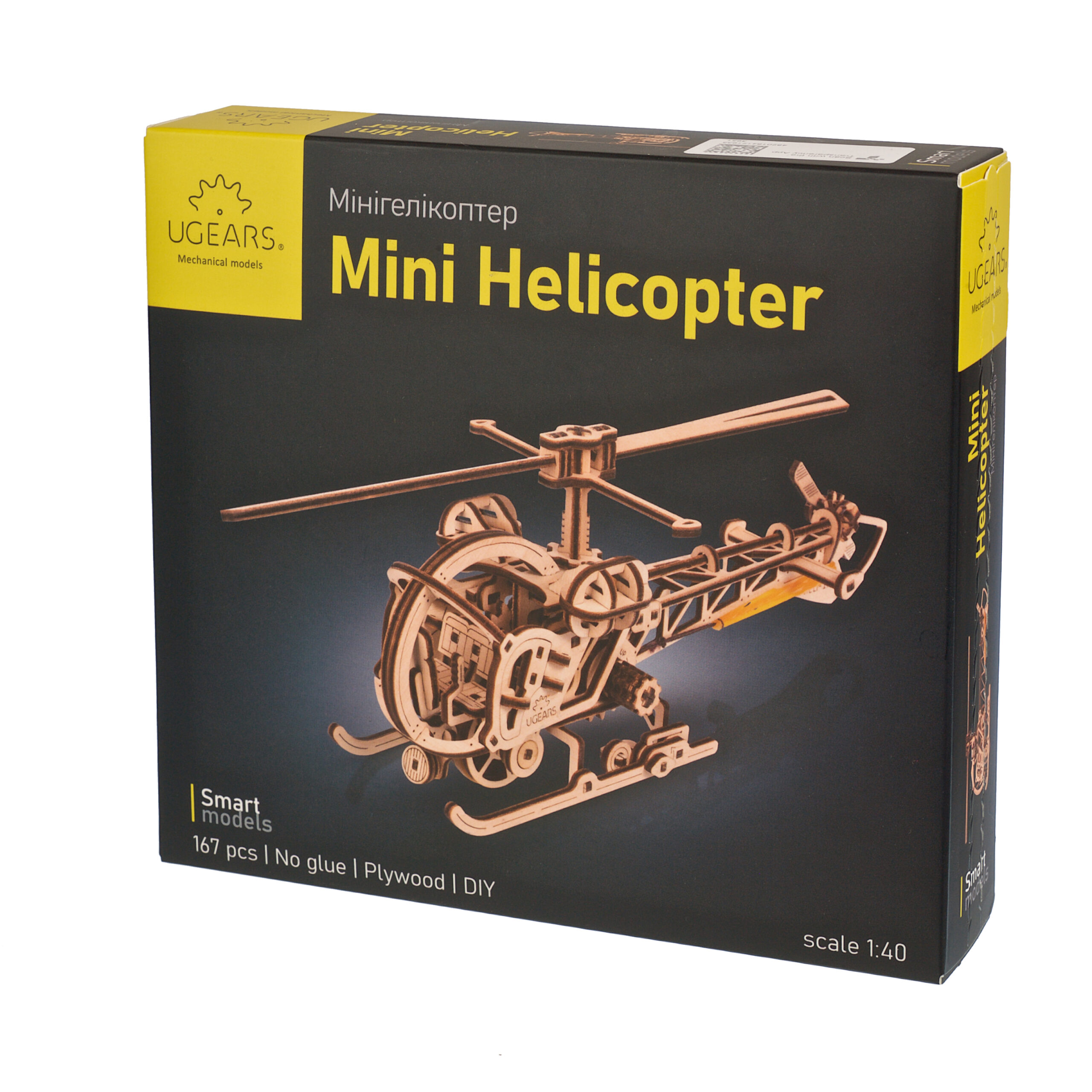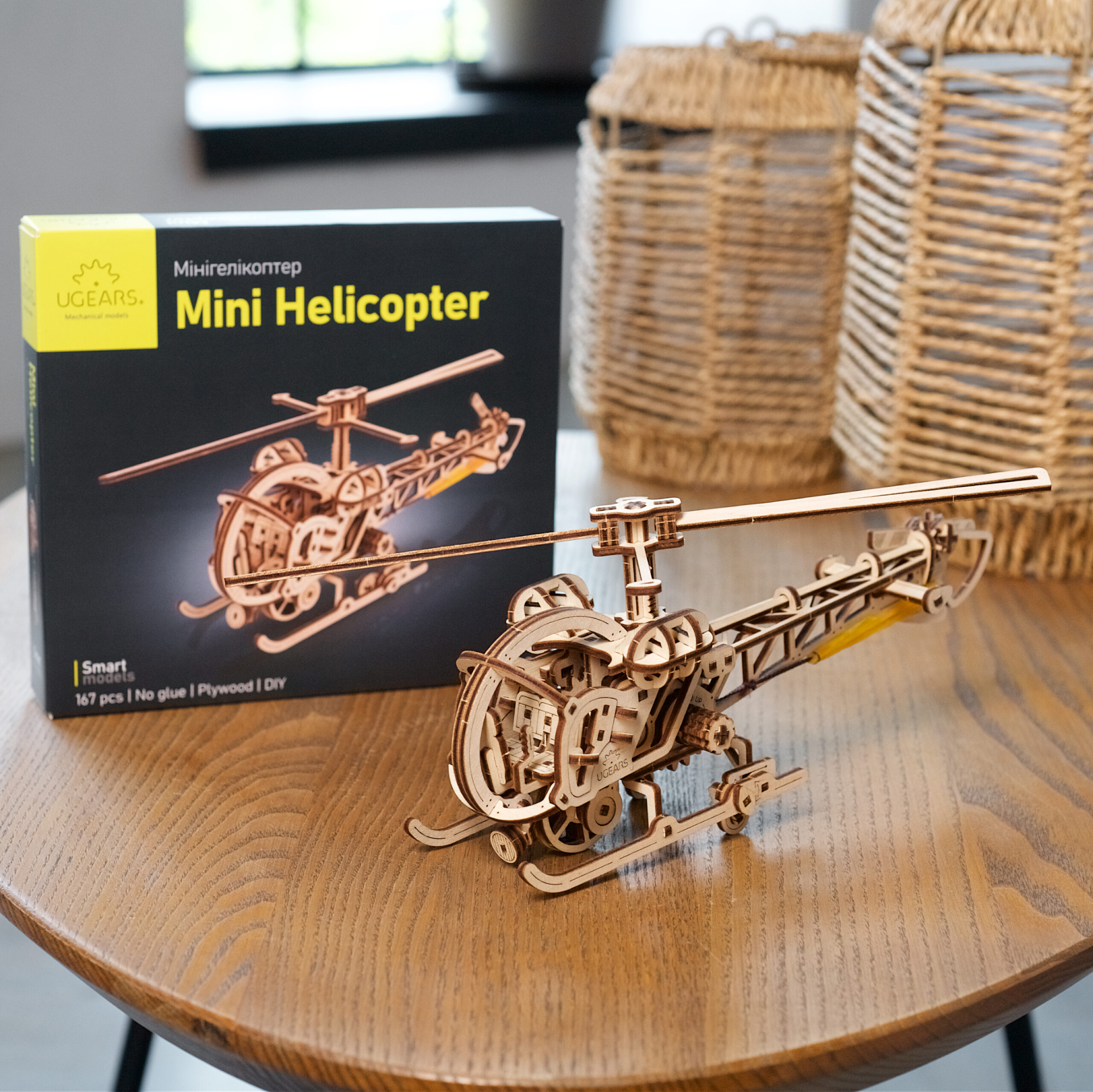 Le Mini hélicoptère Ugears est le premier modèle d’hélicoptère de notre collection Smart, rejoignant les modèles Mini biplan, Frelon fou, Dirigeable Steampunk et Aviateur (avec des composants d’avion et d’hélicoptère interchangeables) dans notre famille de fabuleux appareils volants Ugears. La conception ouverte permet de visualiser tous les aspects de cette maquette d’hélicoptère à monter soi-même. Ce tourbillon volant en 3D est truffé de détails réalistes, notamment un mât de rotor et un rotor principal qui tournent, un rotor de queue qui tourne, un cockpit biplace avec des commandes au manche cyclique, des portes qui s’ouvrent, un projecteur réglable à l’avant, des roues arrière rétractables, des patins d’atterrissage et un héliport sur lequel vous pouvez faire reposer votre maquette.
