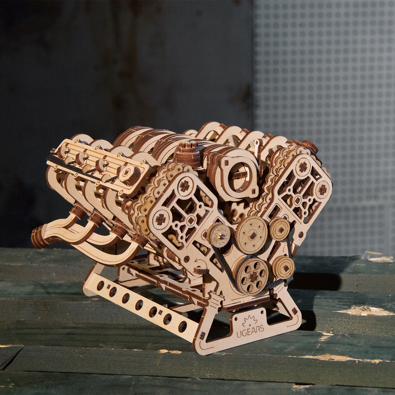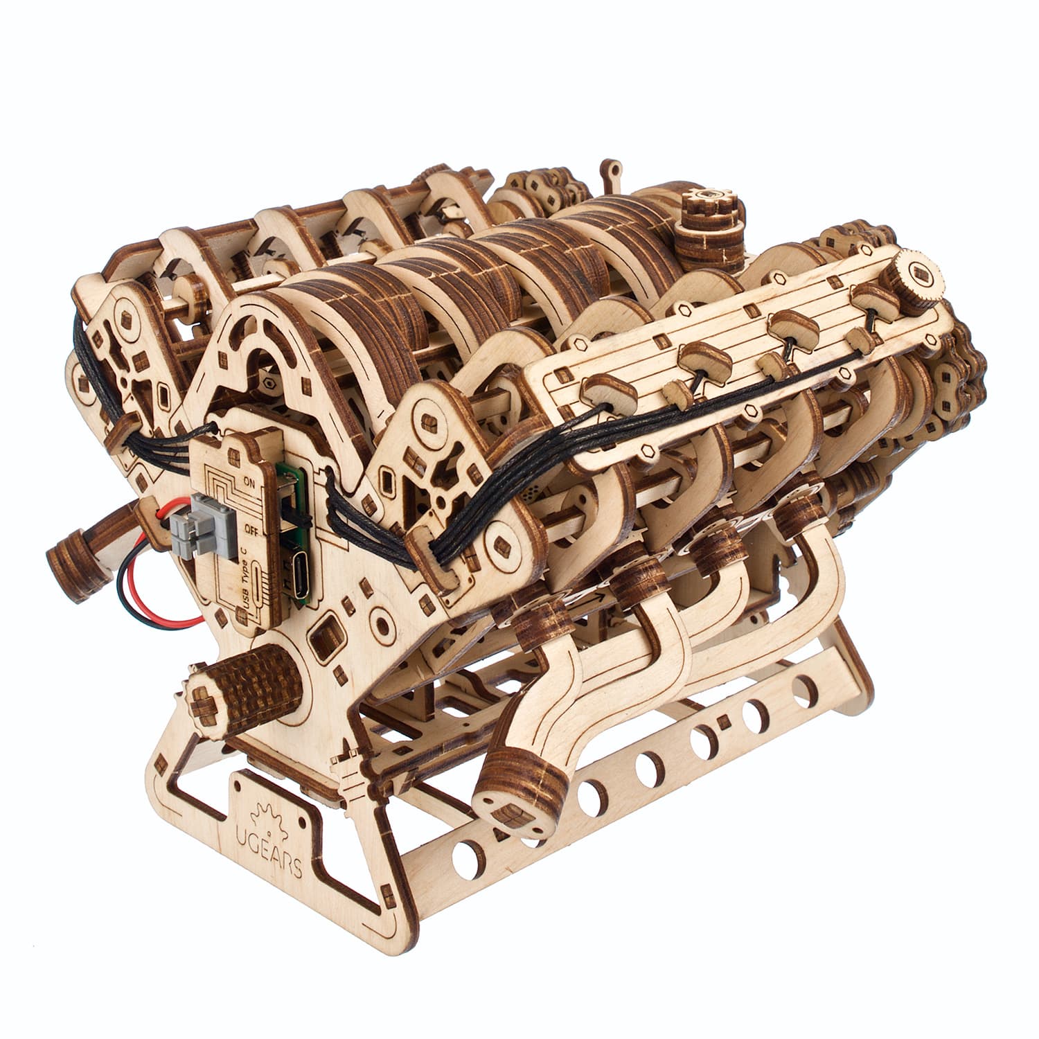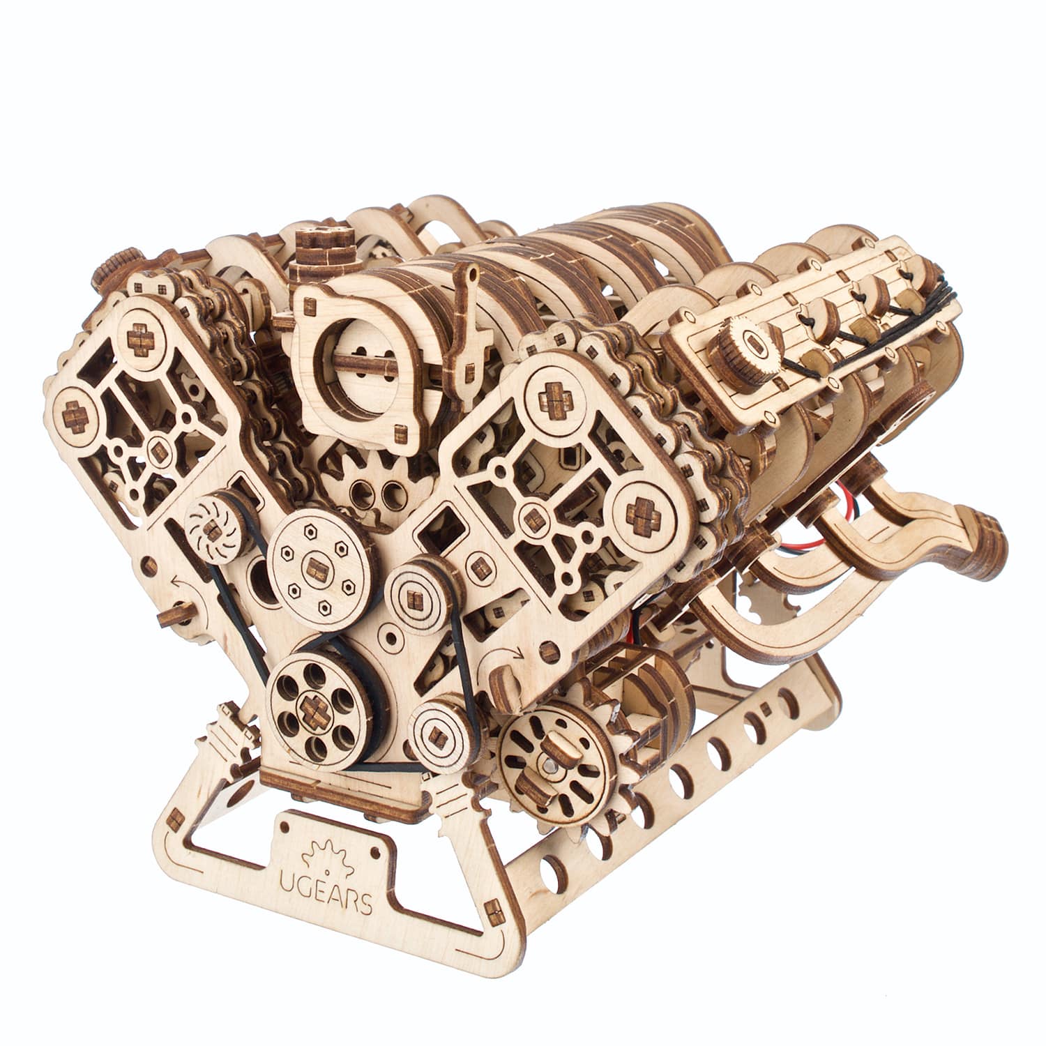 Les moteurs V8, avec leur grondement typique, sont synonymes de puissance automobile. Grâce à la disposition équilibrée de deux rangées de quatre cylindres dans une configuration en V, les moteurs V8 produisent moins de vibrations que les moteurs à six cylindres, ce qui permet d’obtenir un moteur plus gros et plus puissant. Breveté en 1902 par l’ingénieur français Léon Levavasseur, le V8 est surtout connu pour donner du muscle aux voitures musclées, mais saviez-vous que les moteurs V8 ont d’abord été largement utilisés dans les bateaux à moteur, et qu’ils ont même été utilisés dans les avions et les motos ? Les amateurs de moteurs et de modélisme nous demandent depuis des années un modèle de moteur complexe, et le voici : le moteur V8 Ugears !