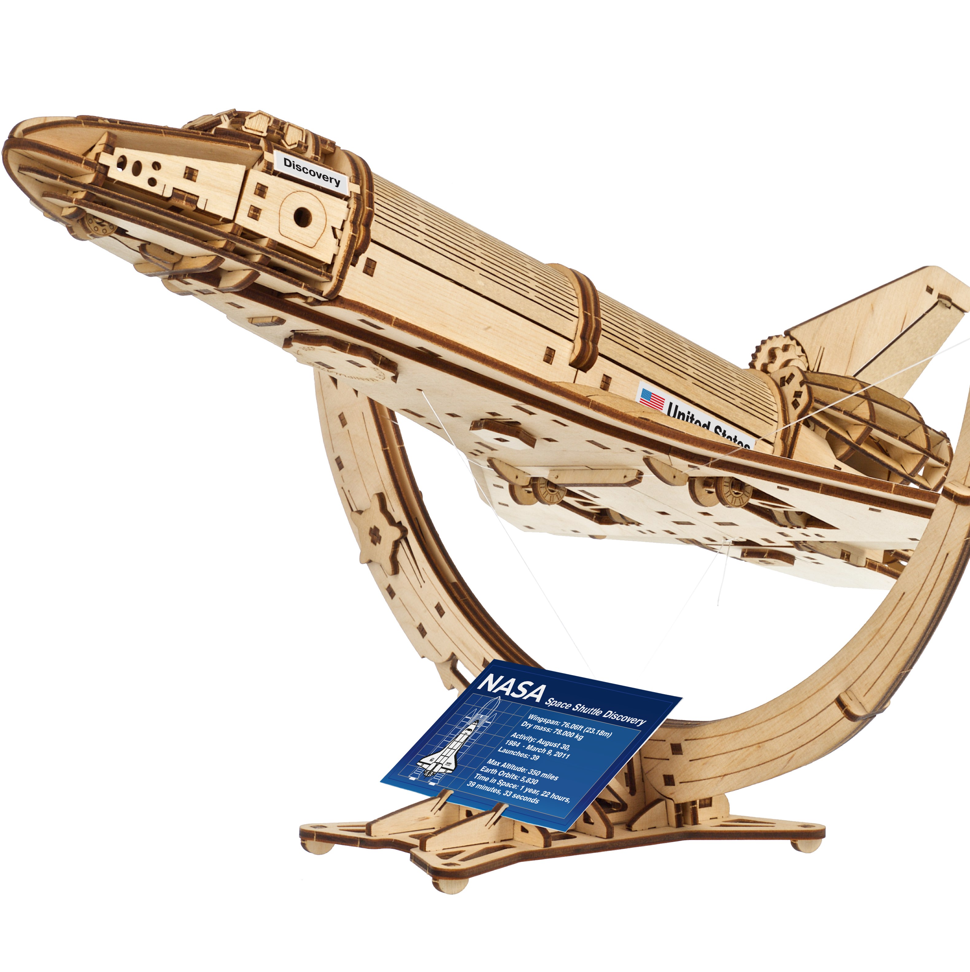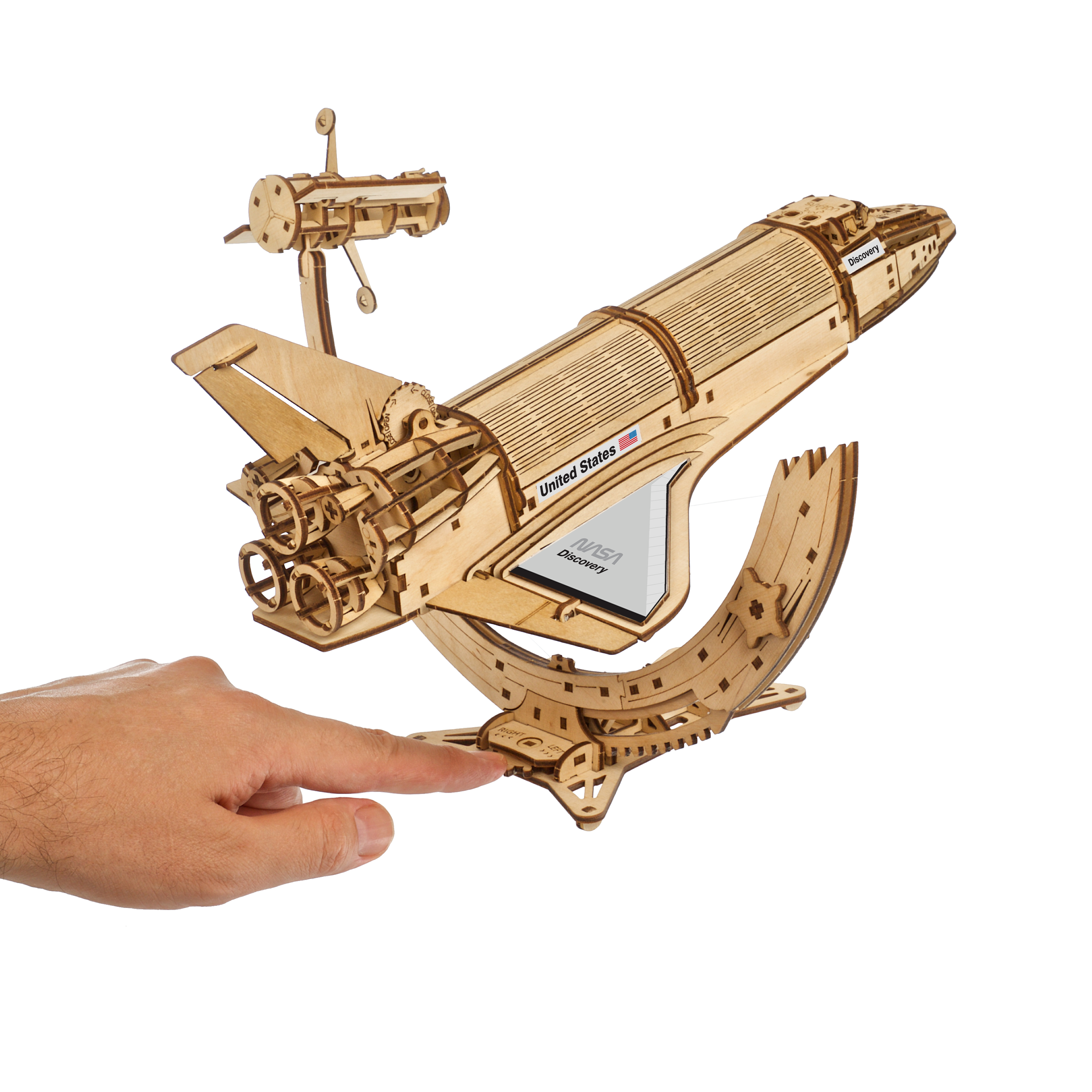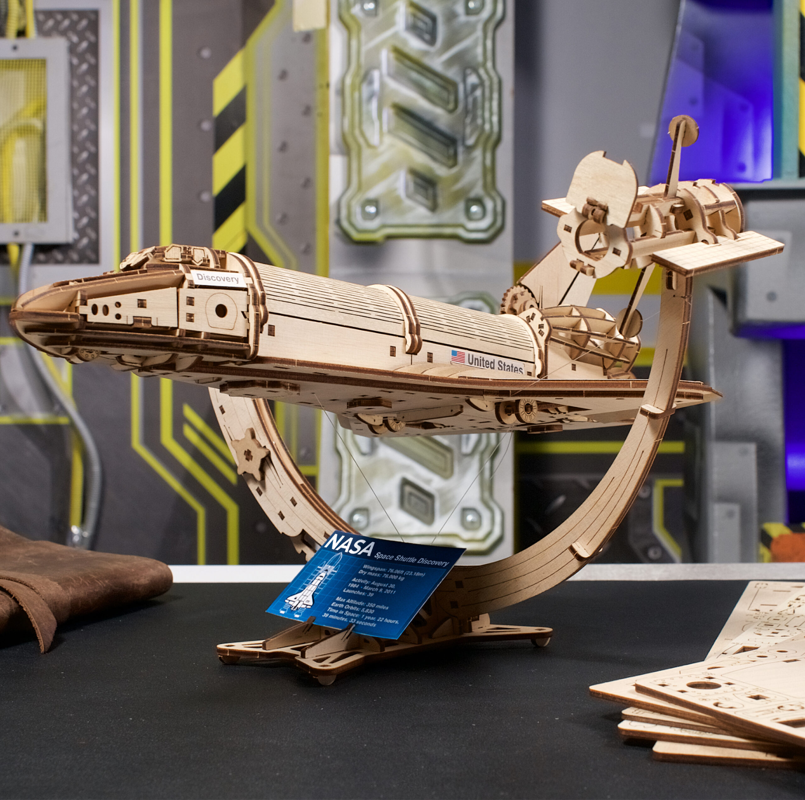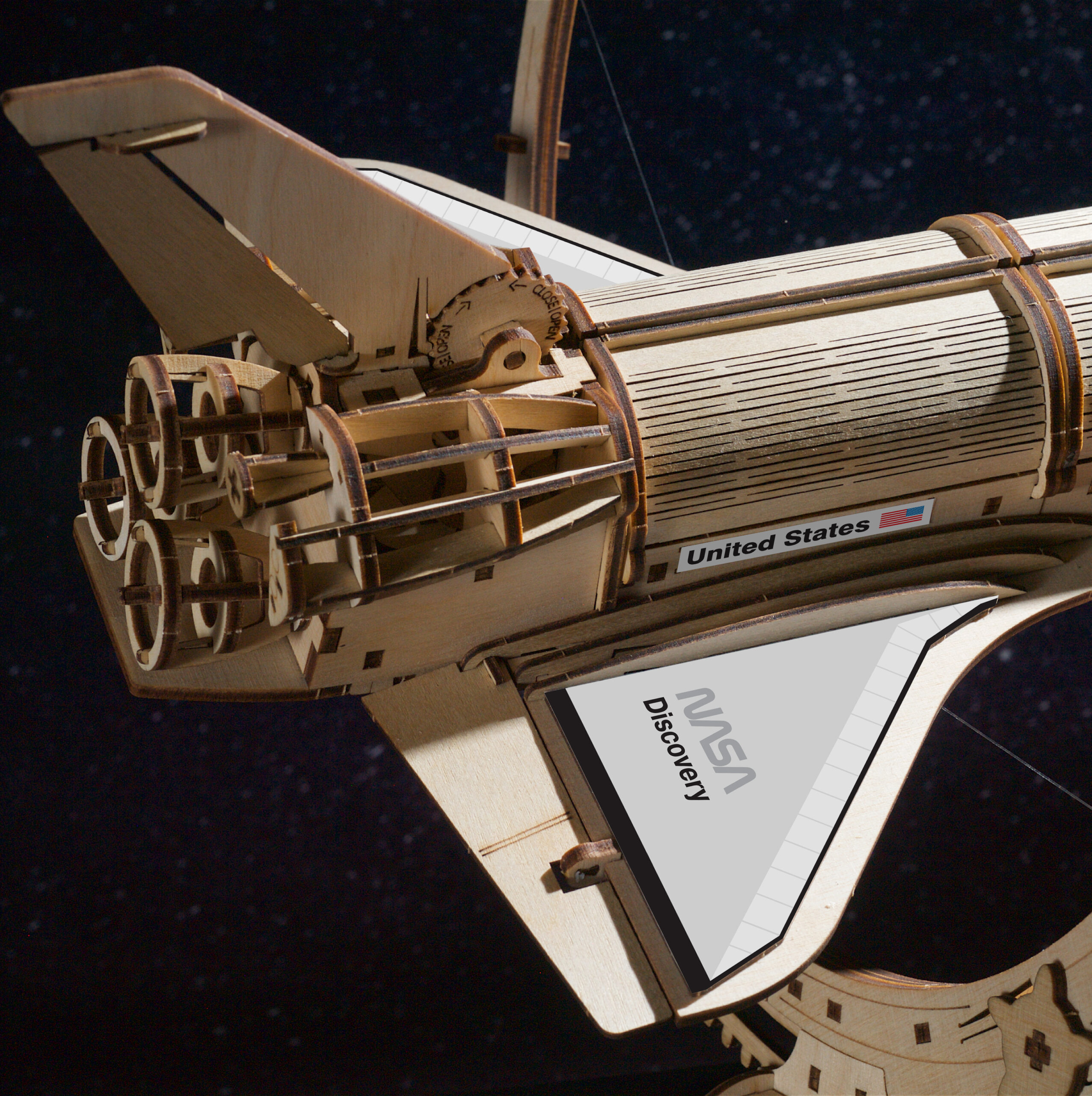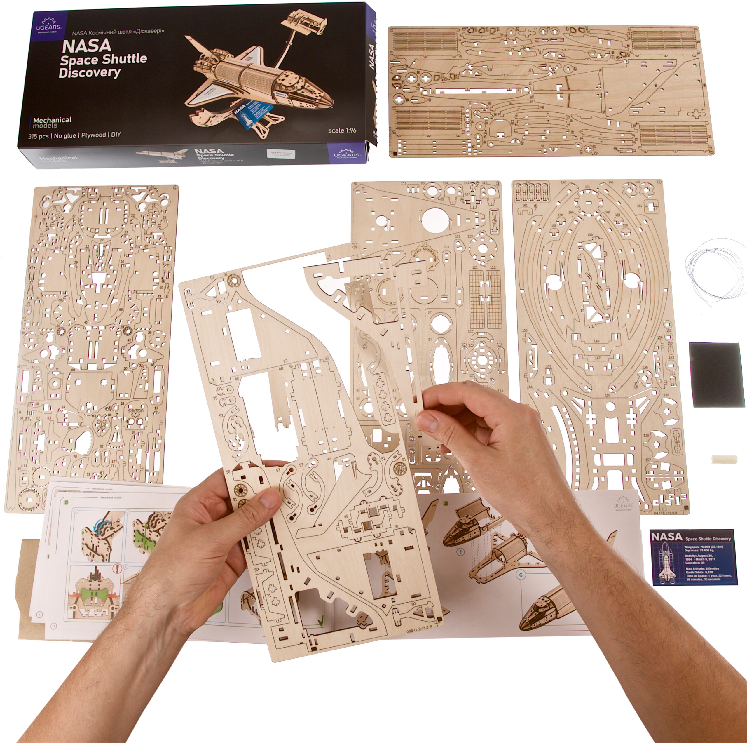 La maquette trois-en-un de la navette spatiale Discovery de la NASA est classée au niveau « Avancé », pour les constructeurs expérimentés, et ne manquera pas d’occuper une place de choix sur une étagère ou une table de votre salon, de votre chambre ou de votre bureau. Comme tous les modèles en bois et puzzles 3D Ugears, Discovery et tous ses composants s’assemblent sans colle et peuvent être construits sans outils spéciaux en suivant les instructions illustrées étape par étape en 11 langues (anglais, ukrainien, allemand, espagnol, français, italien, portugais, polonais, japonais, chinois et coréen). Ne vous inquiétez pas si vous cassez une pièce en construisant votre puzzle 3D. Il vous suffit d’en informer notre service clientèle, qui se fera un plaisir de vous fournir gratuitement des pièces de rechange.
