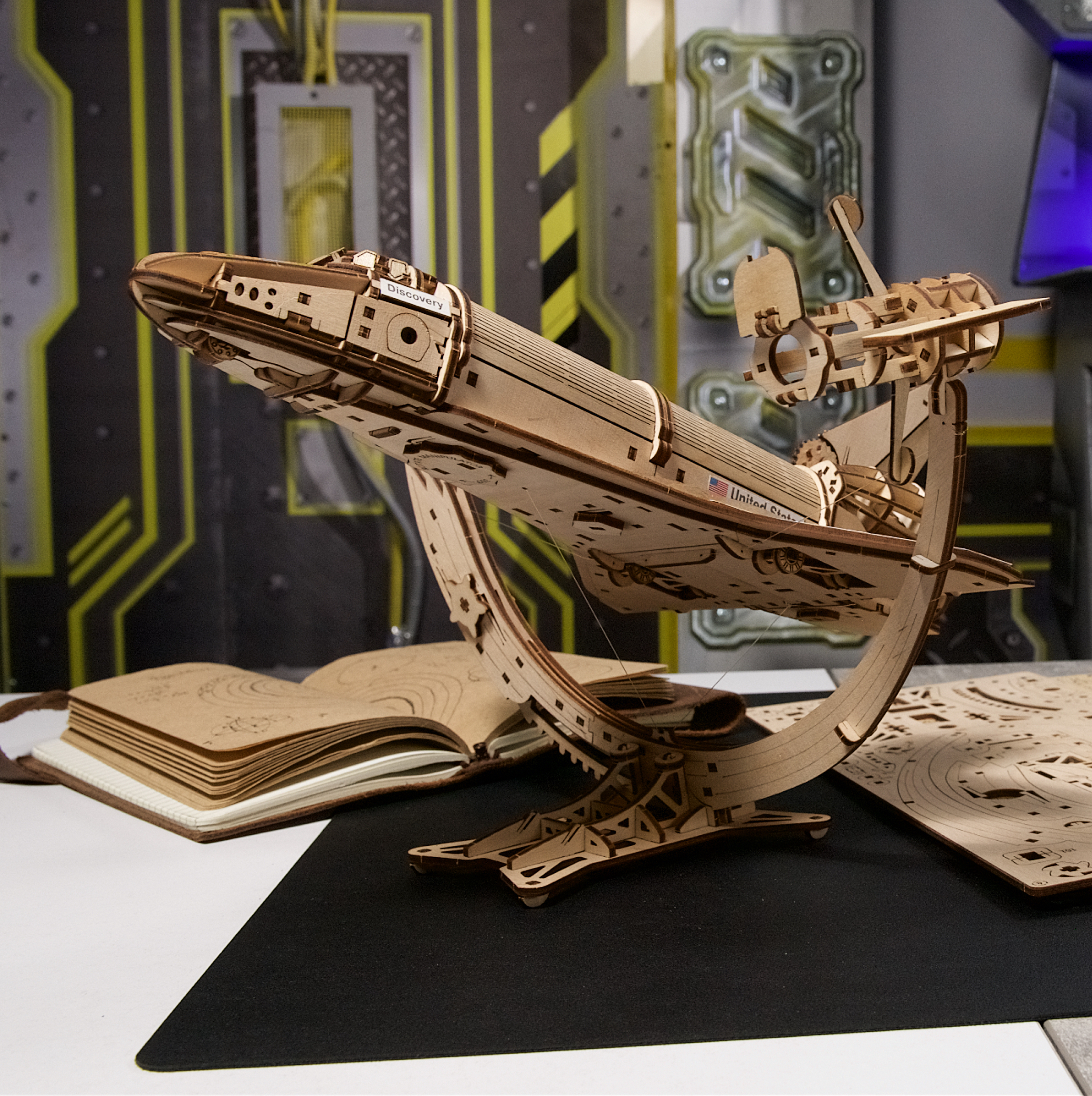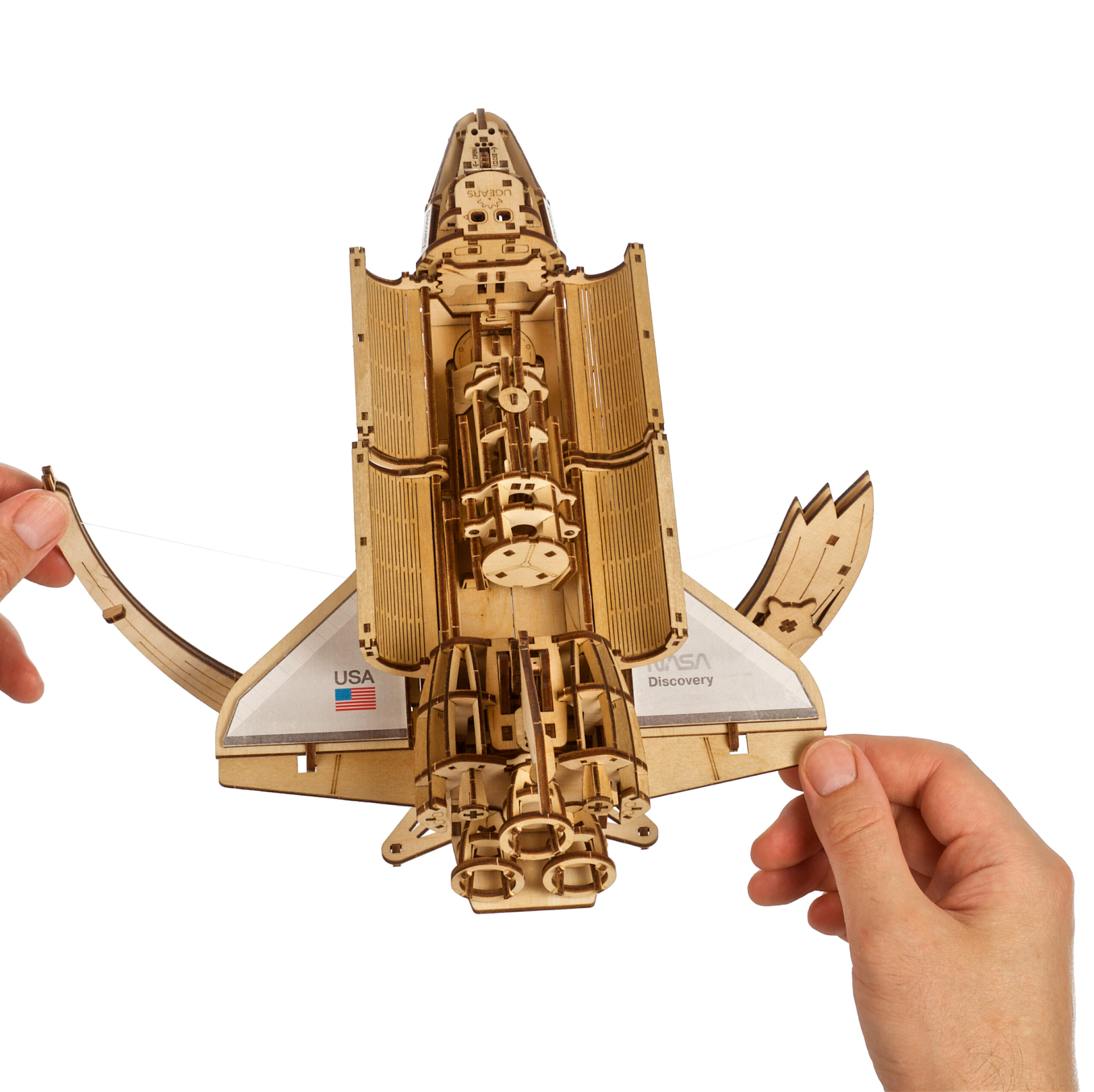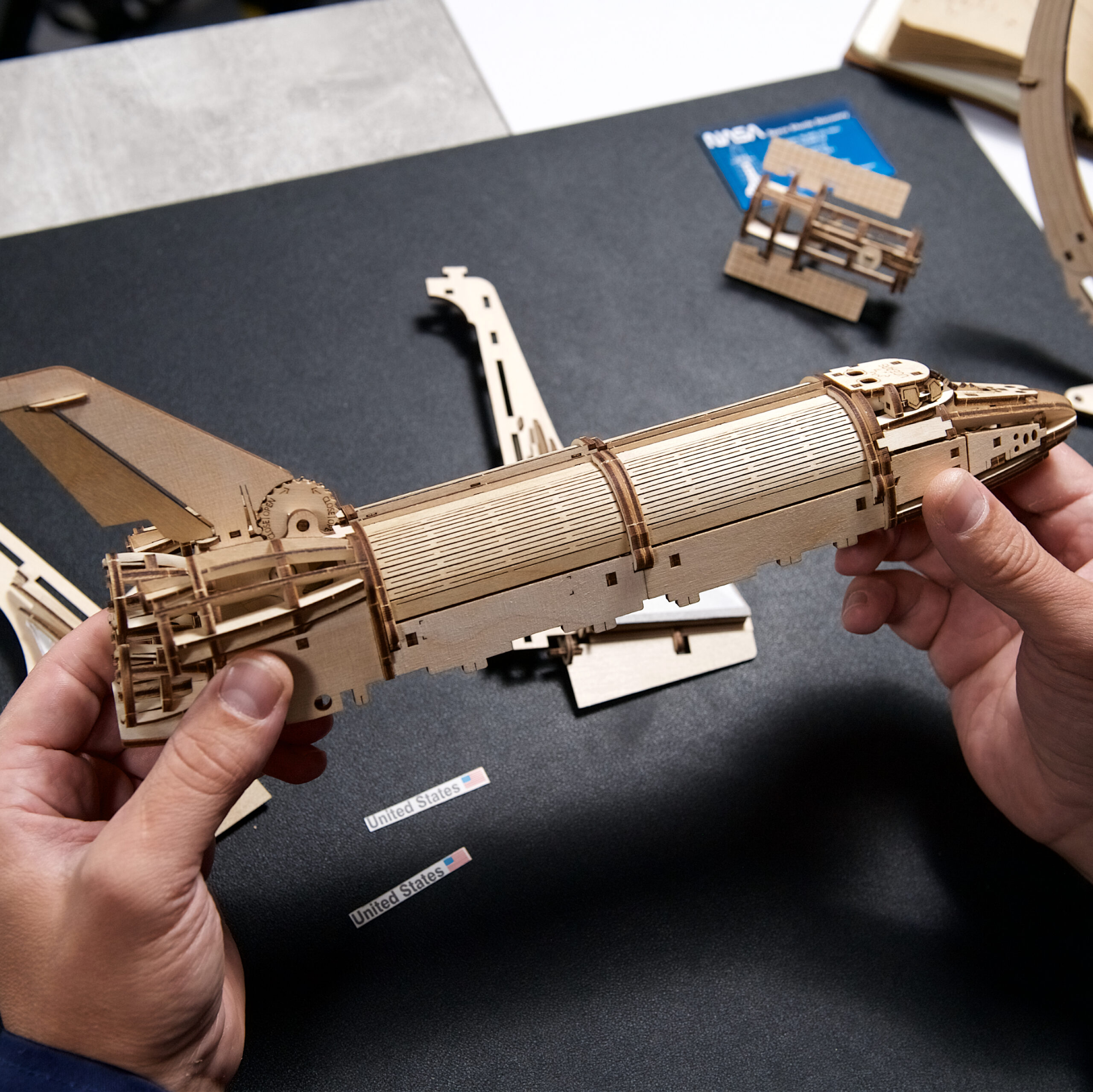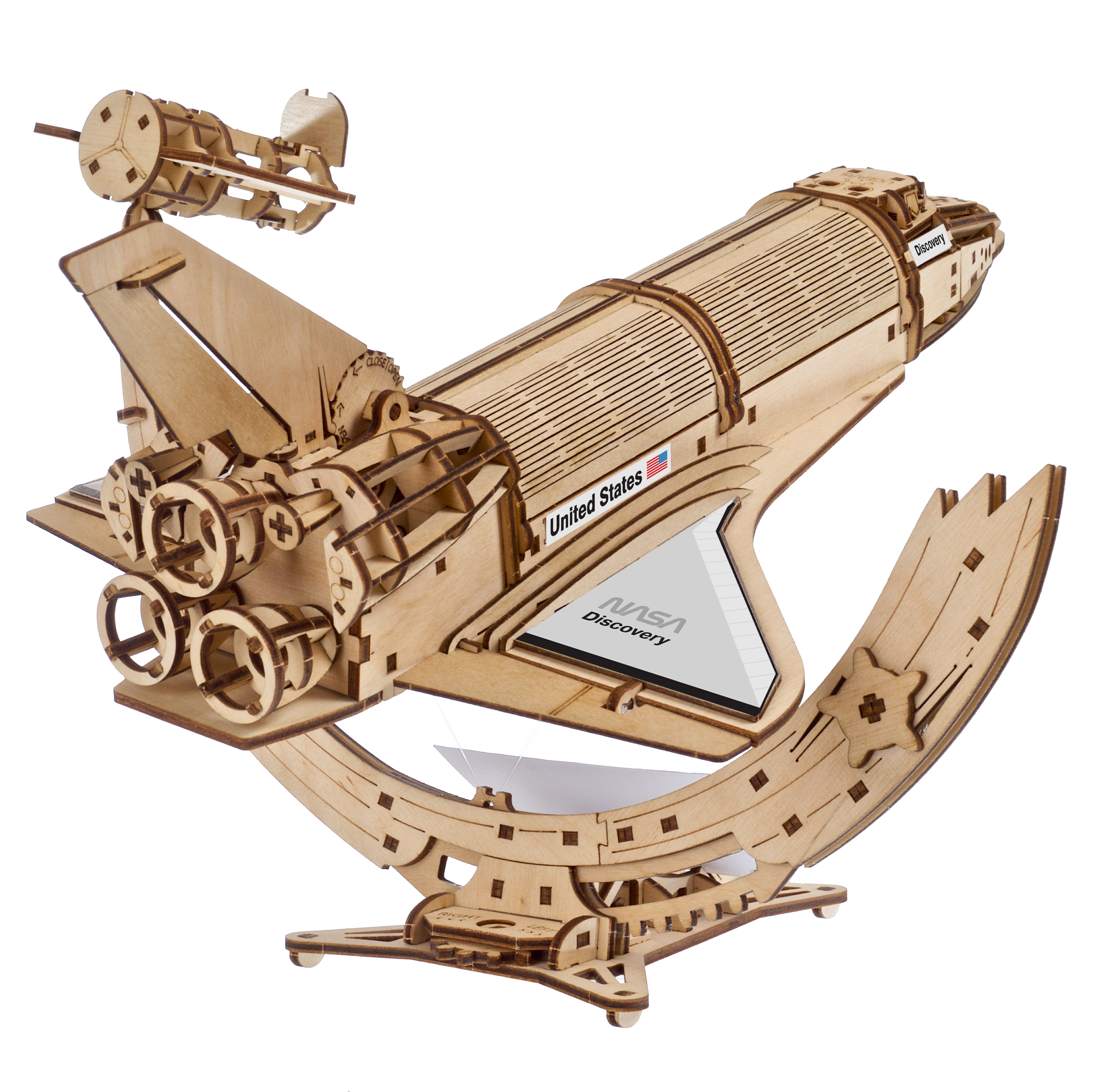 La maquette trois-en-un de la navette spatiale Discovery de la NASA est classée au niveau « Avancé », pour les constructeurs expérimentés, et ne manquera pas d’occuper une place de choix sur une étagère ou une table de votre salon, de votre chambre ou de votre bureau. Comme tous les modèles en bois et puzzles 3D Ugears, Discovery et tous ses composants s’assemblent sans colle et peuvent être construits sans outils spéciaux en suivant les instructions illustrées étape par étape en 11 langues (anglais, ukrainien, allemand, espagnol, français, italien, portugais, polonais, japonais, chinois et coréen). Ne vous inquiétez pas si vous cassez une pièce en construisant votre puzzle 3D. Il vous suffit d’en informer notre service clientèle, qui se fera un plaisir de vous fournir gratuitement des pièces de rechange.