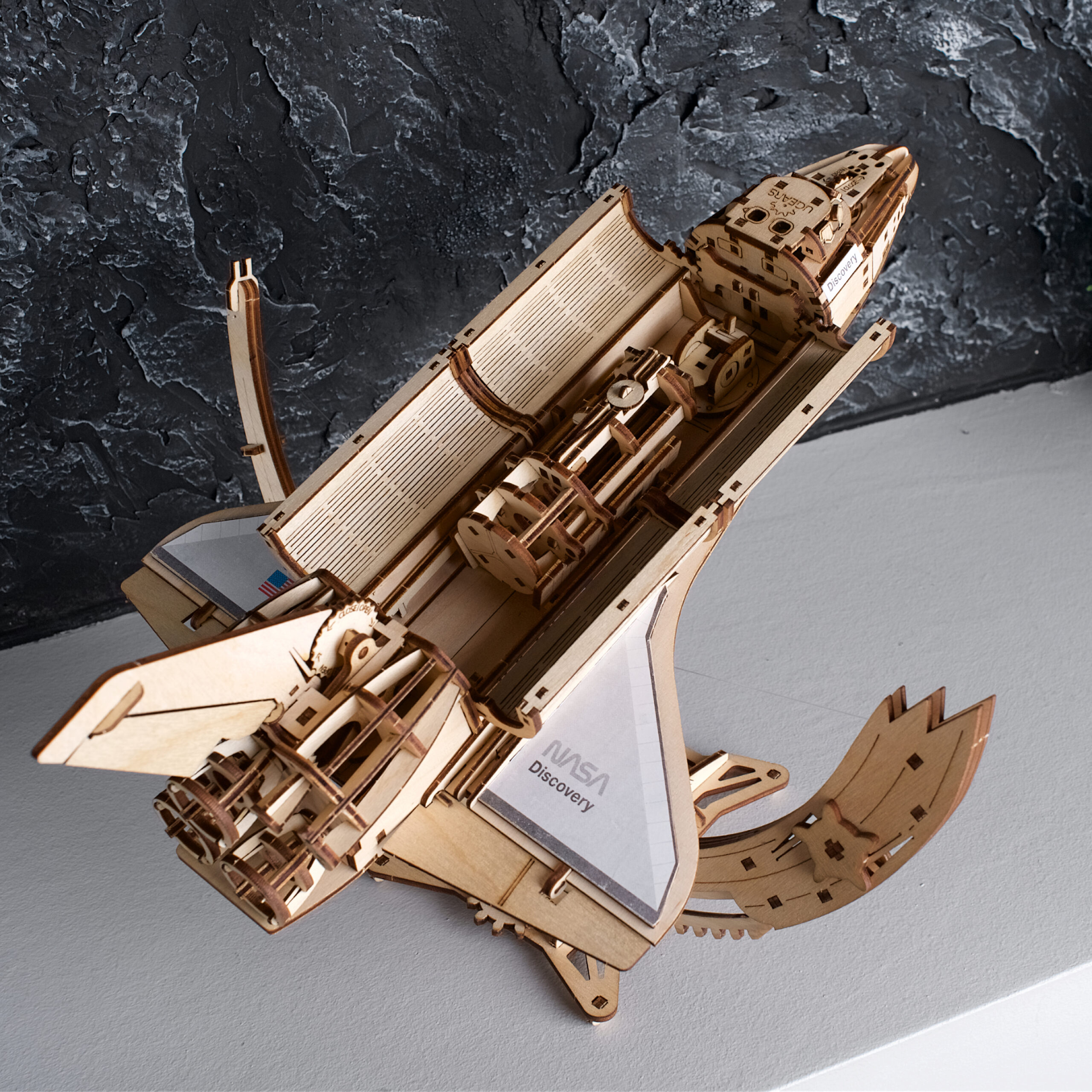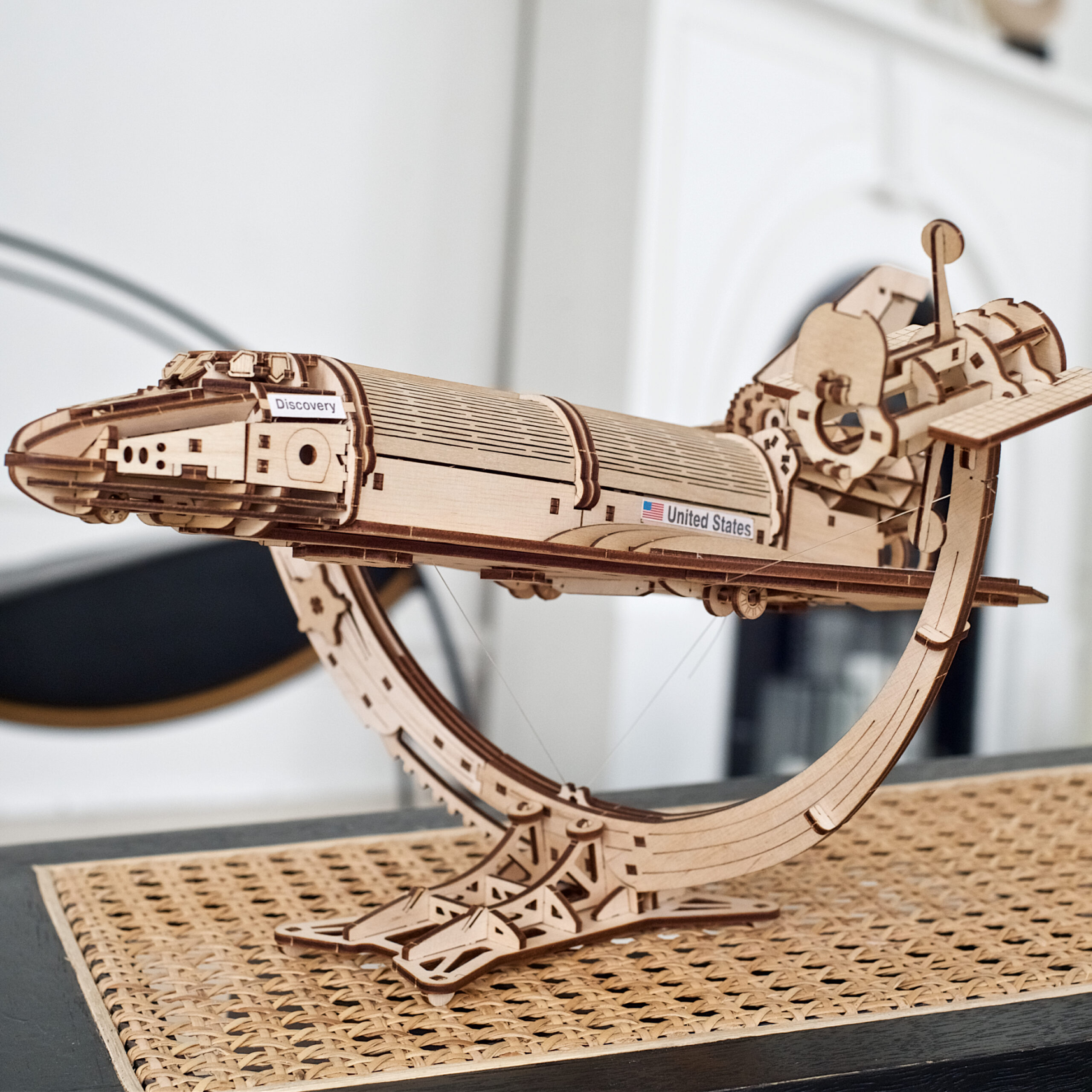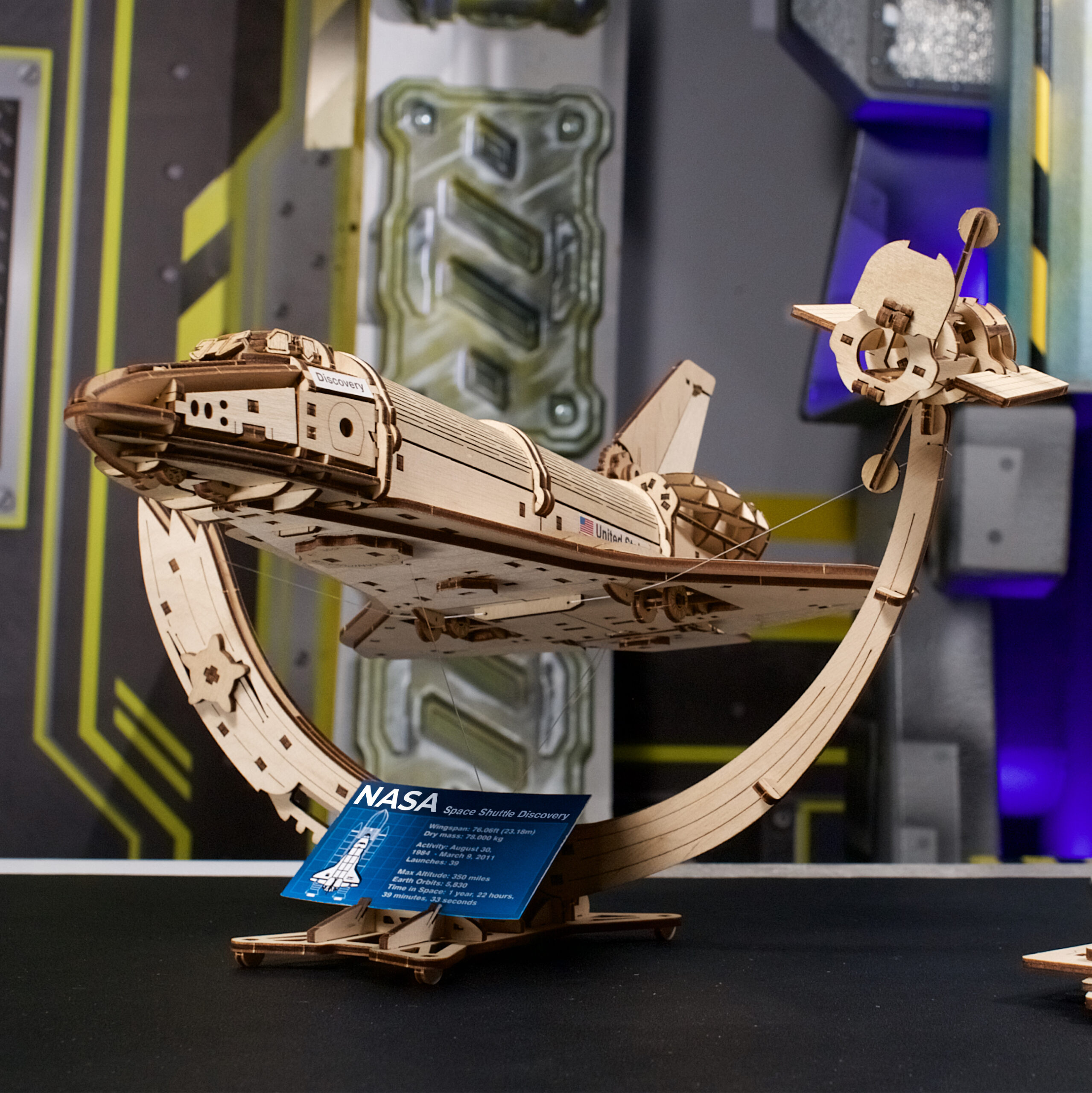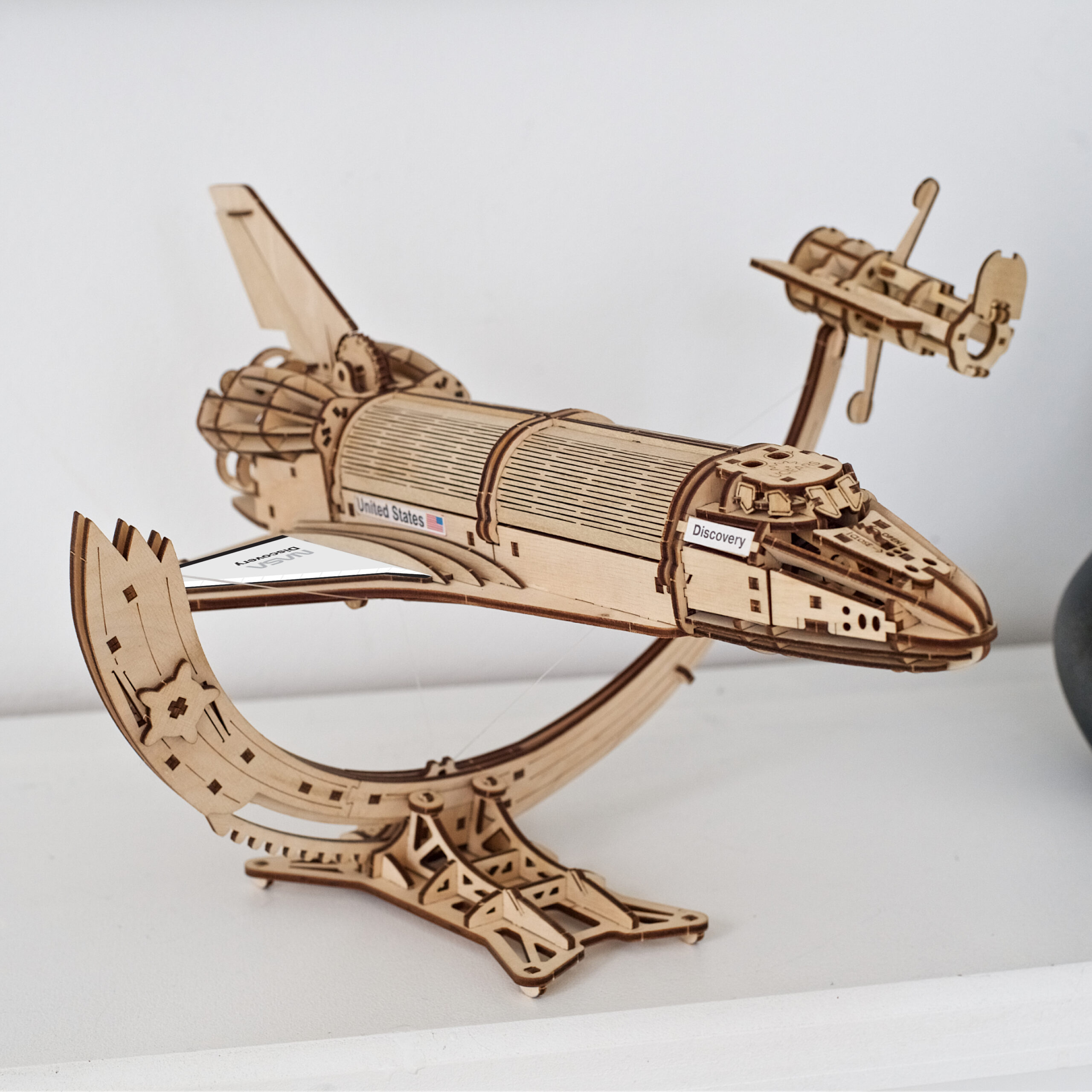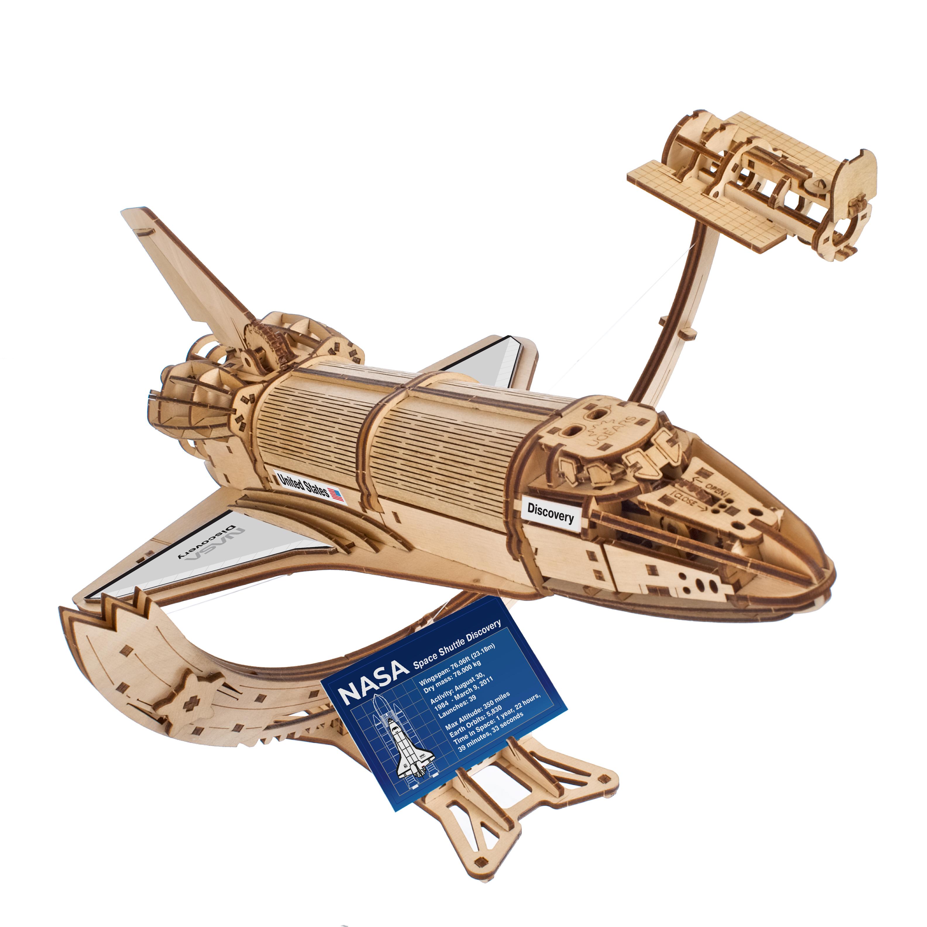 La maquette trois-en-un de la navette spatiale Discovery de la NASA est classée au niveau « Avancé », pour les constructeurs expérimentés, et ne manquera pas d’occuper une place de choix sur une étagère ou une table de votre salon, de votre chambre ou de votre bureau. Comme tous les modèles en bois et puzzles 3D Ugears, Discovery et tous ses composants s’assemblent sans colle et peuvent être construits sans outils spéciaux en suivant les instructions illustrées étape par étape en 11 langues (anglais, ukrainien, allemand, espagnol, français, italien, portugais, polonais, japonais, chinois et coréen). Ne vous inquiétez pas si vous cassez une pièce en construisant votre puzzle 3D. Il vous suffit d’en informer notre service clientèle, qui se fera un plaisir de vous fournir gratuitement des pièces de rechange.