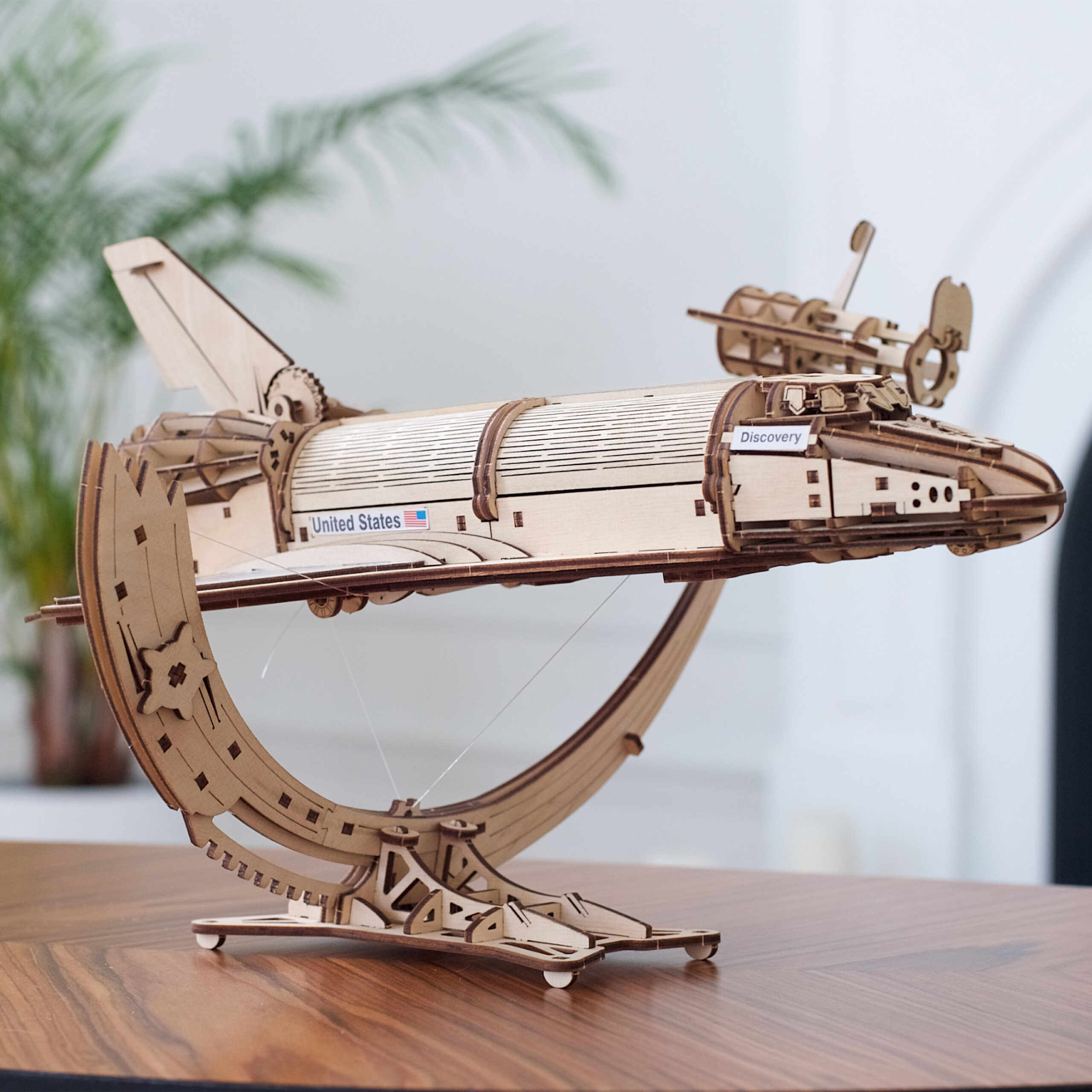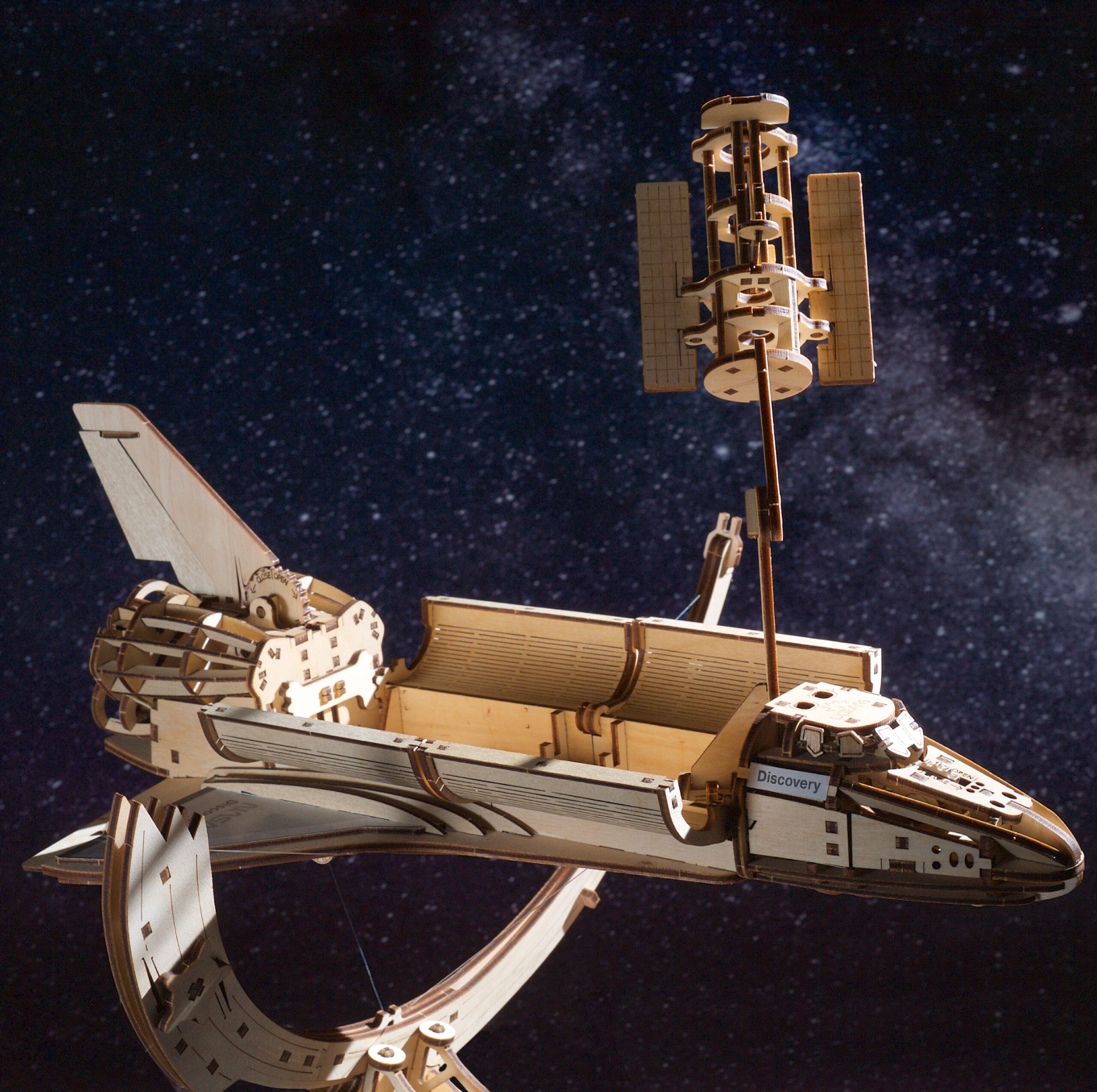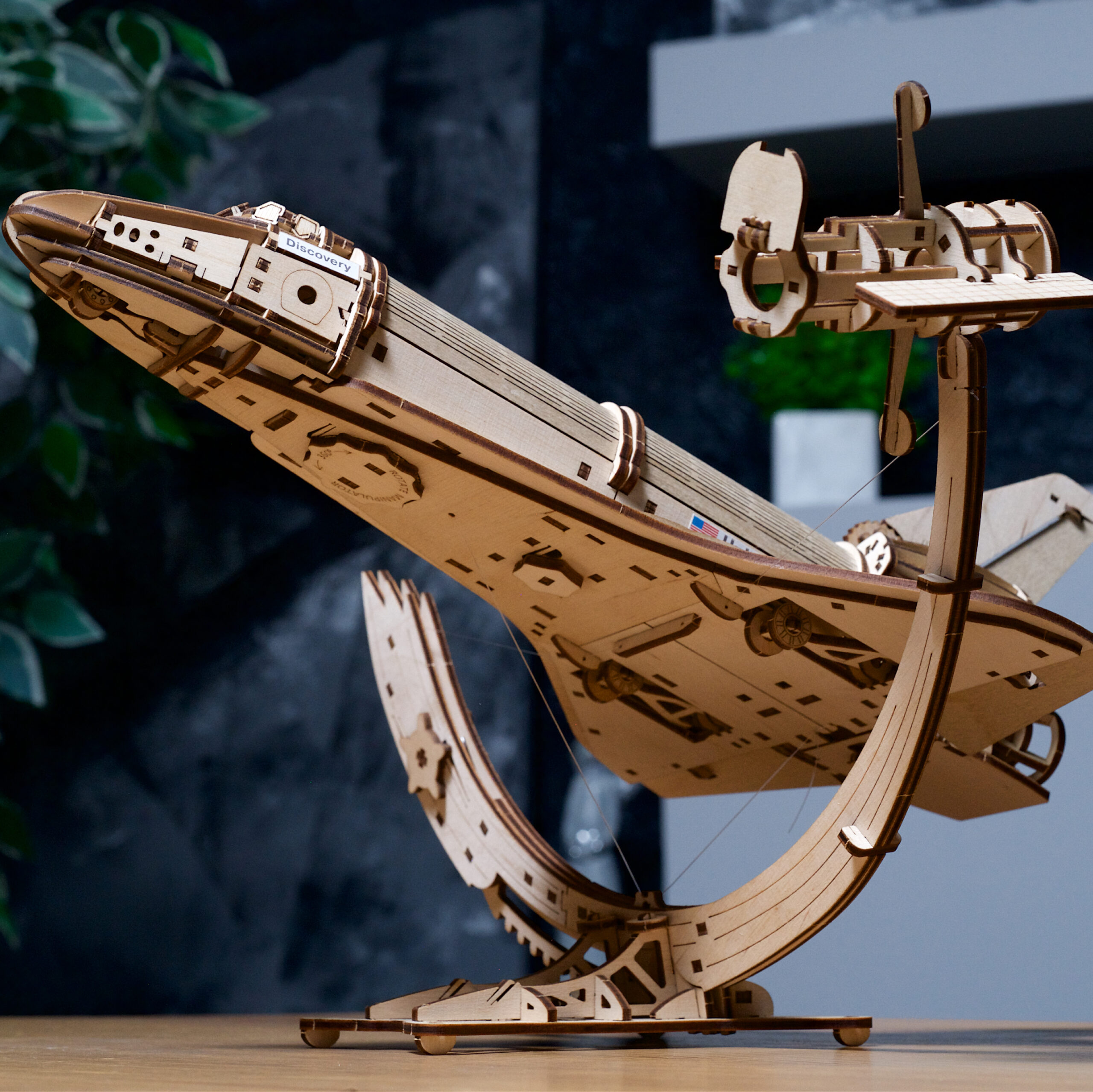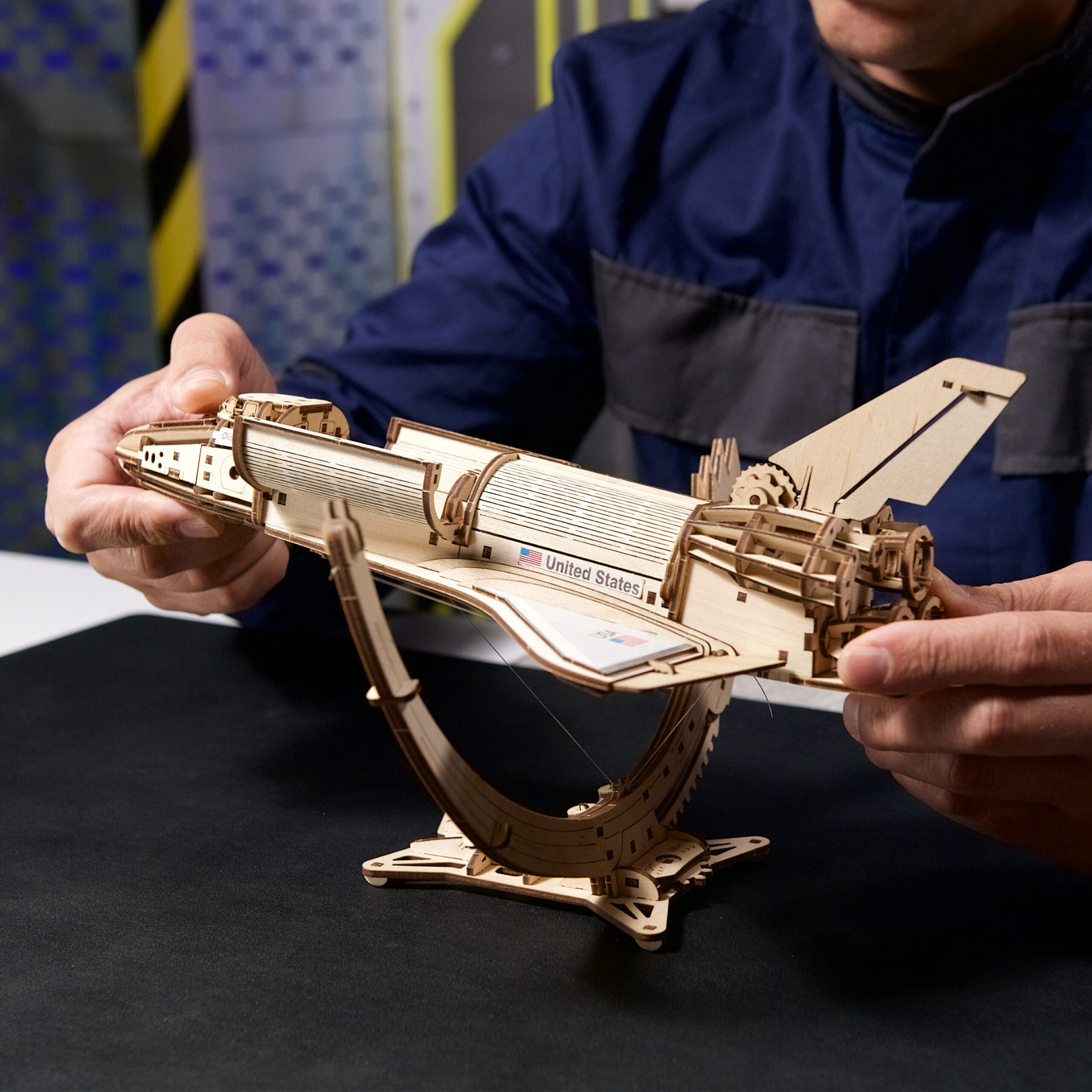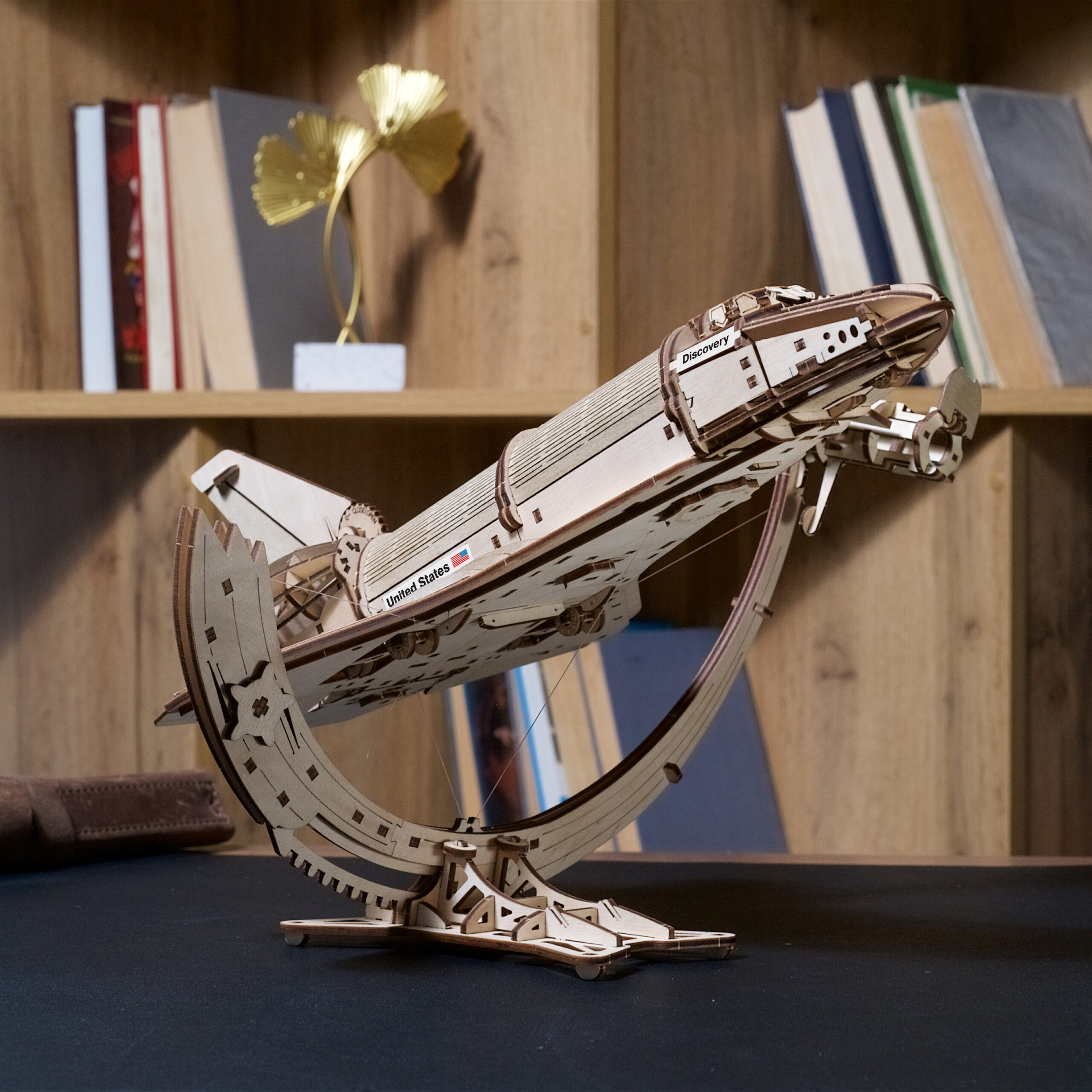 La maquette trois-en-un de la navette spatiale Discovery de la NASA est classée au niveau « Avancé », pour les constructeurs expérimentés, et ne manquera pas d’occuper une place de choix sur une étagère ou une table de votre salon, de votre chambre ou de votre bureau. Comme tous les modèles en bois et puzzles 3D Ugears, Discovery et tous ses composants s’assemblent sans colle et peuvent être construits sans outils spéciaux en suivant les instructions illustrées étape par étape en 11 langues (anglais, ukrainien, allemand, espagnol, français, italien, portugais, polonais, japonais, chinois et coréen). Ne vous inquiétez pas si vous cassez une pièce en construisant votre puzzle 3D. Il vous suffit d’en informer notre service clientèle, qui se fera un plaisir de vous fournir gratuitement des pièces de rechange.