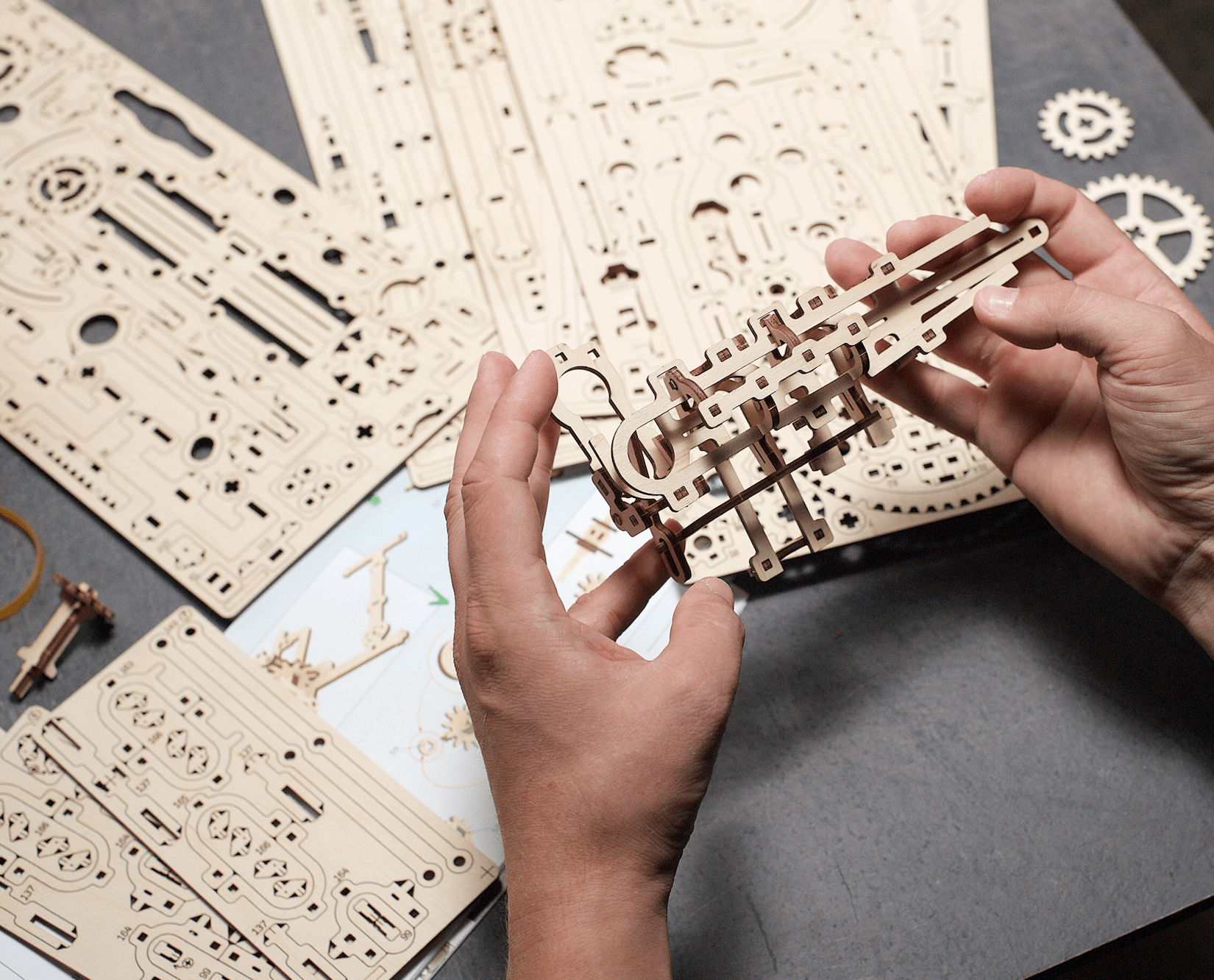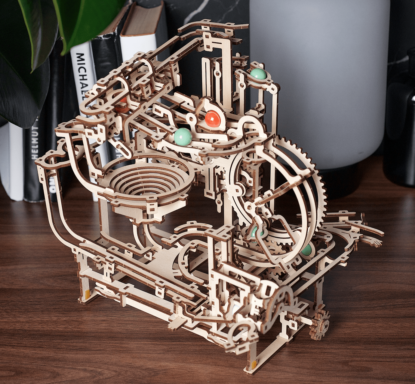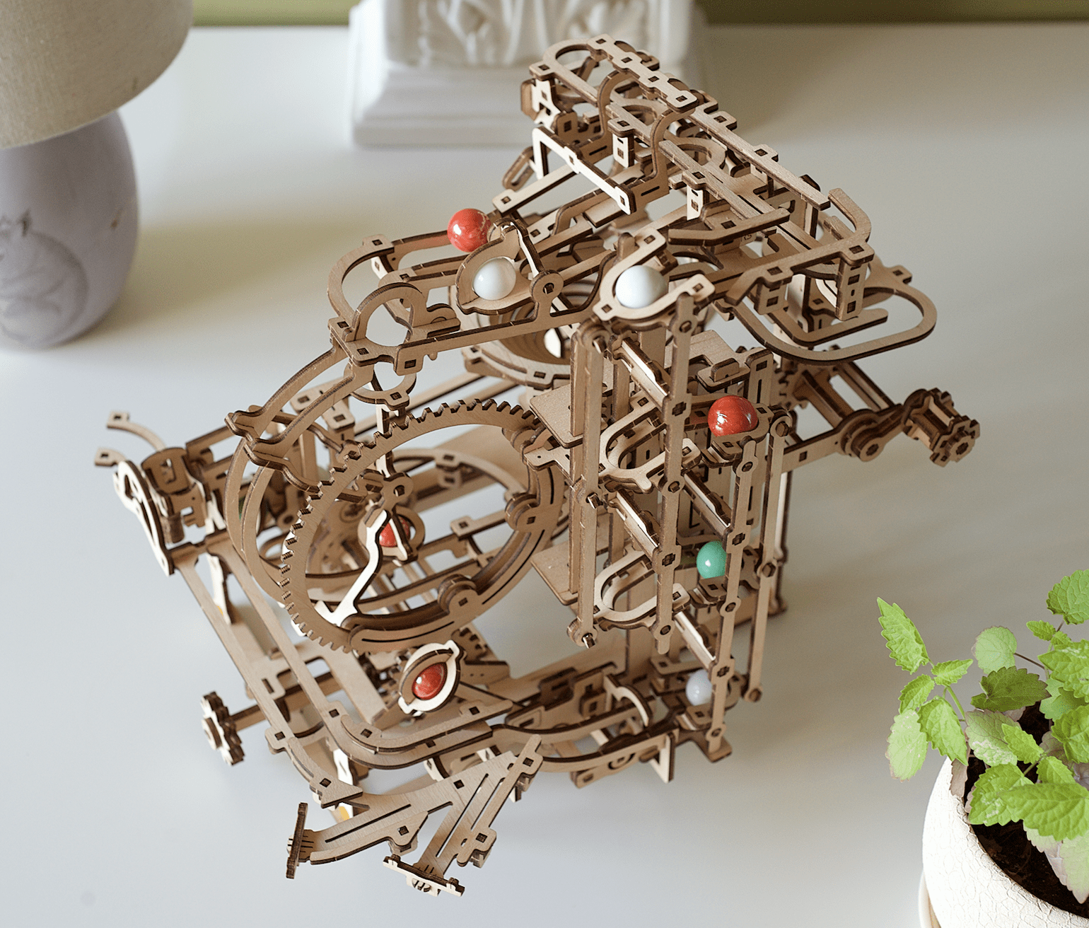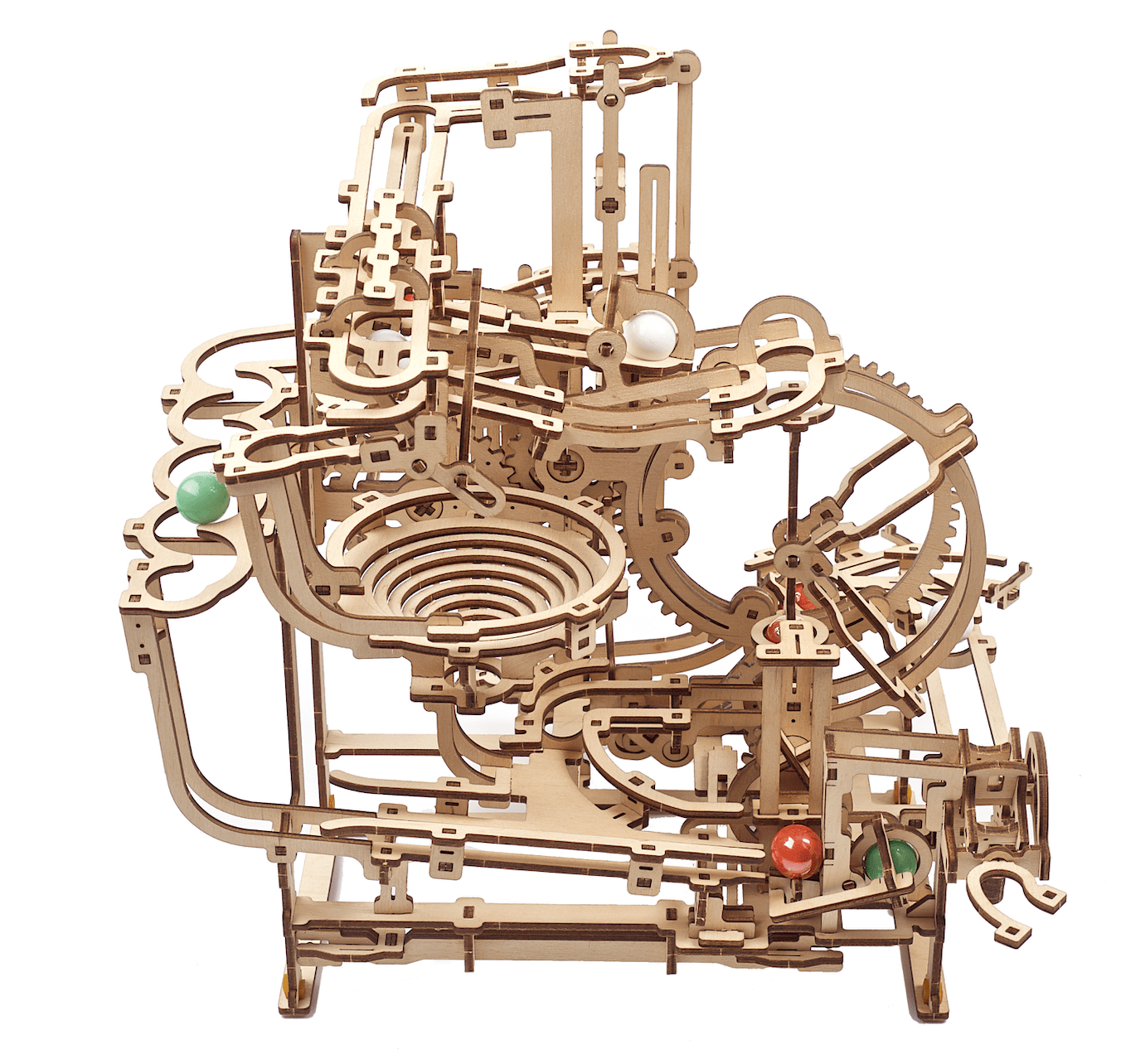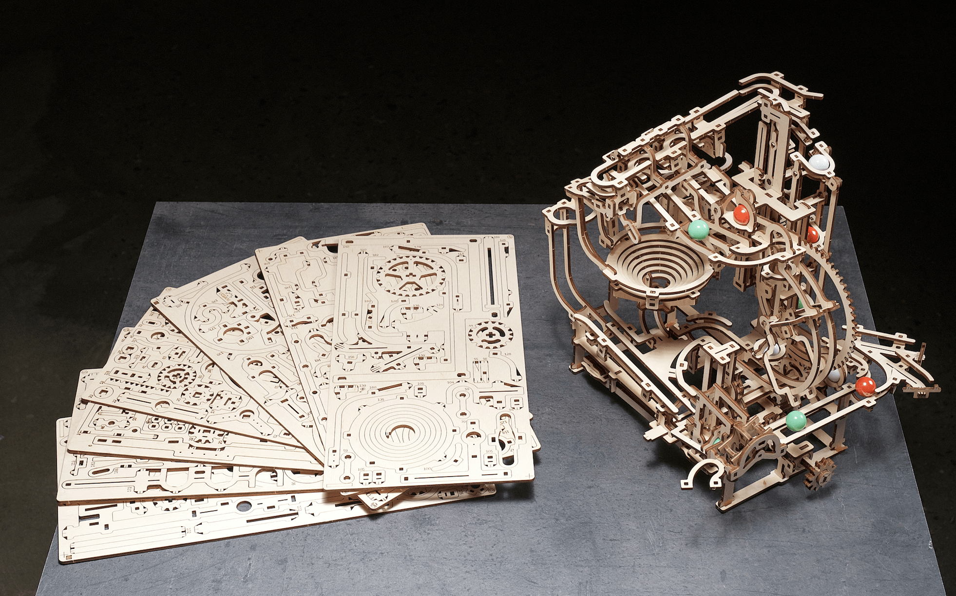 Le plaisir ne s’arrête pas à l’assemblage. Une fois que vous avez fini d’assembler votre modèle, le plaisir ne fait que commencer ! Regardez le puzzle en bois prendre vie pendant que vous actionnez l’élévateur afin de pousser les billes dans leurs aventures.