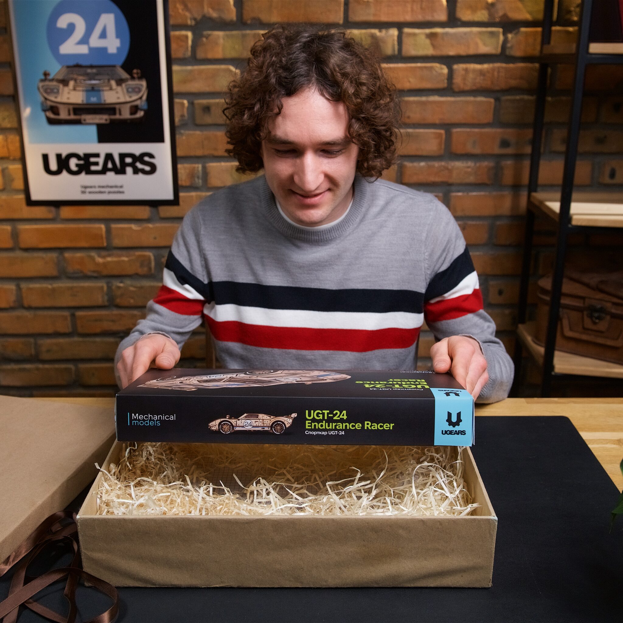 Inspiré par les légendaires voitures de course des années 60, le UGT-24 Voiture d’Endurance est le rêve des fous de sport automobile et des amateurs de maquettes. Ce coupé sportif 2 portes à l’échelle 1:12, similaire au Cabriolet Dream Ugears par ses dimensions, sa fonctionnalité et son souci du détail, fera battre votre cœur avec ses capots avant et arrière ouvrants, sa suspension complète, ses pneus en caoutchouc silicone pour une meilleure adhérence à la route, sa bande de course et ses fenêtres en couleur (deux premières pour Ugears !) et son moteur V8 à pistons mobiles. Revivez les jours de gloire des courses d’endurance des années 60 avec ce coupé, le meilleur de sa catégorie !